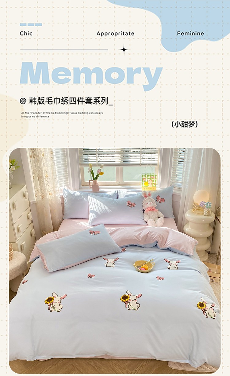 欧冠 2023新款秋冬保暖专版水洗棉麻毛巾绣四件套 兔宝贝-兰