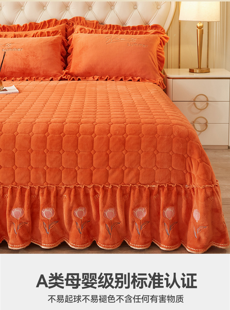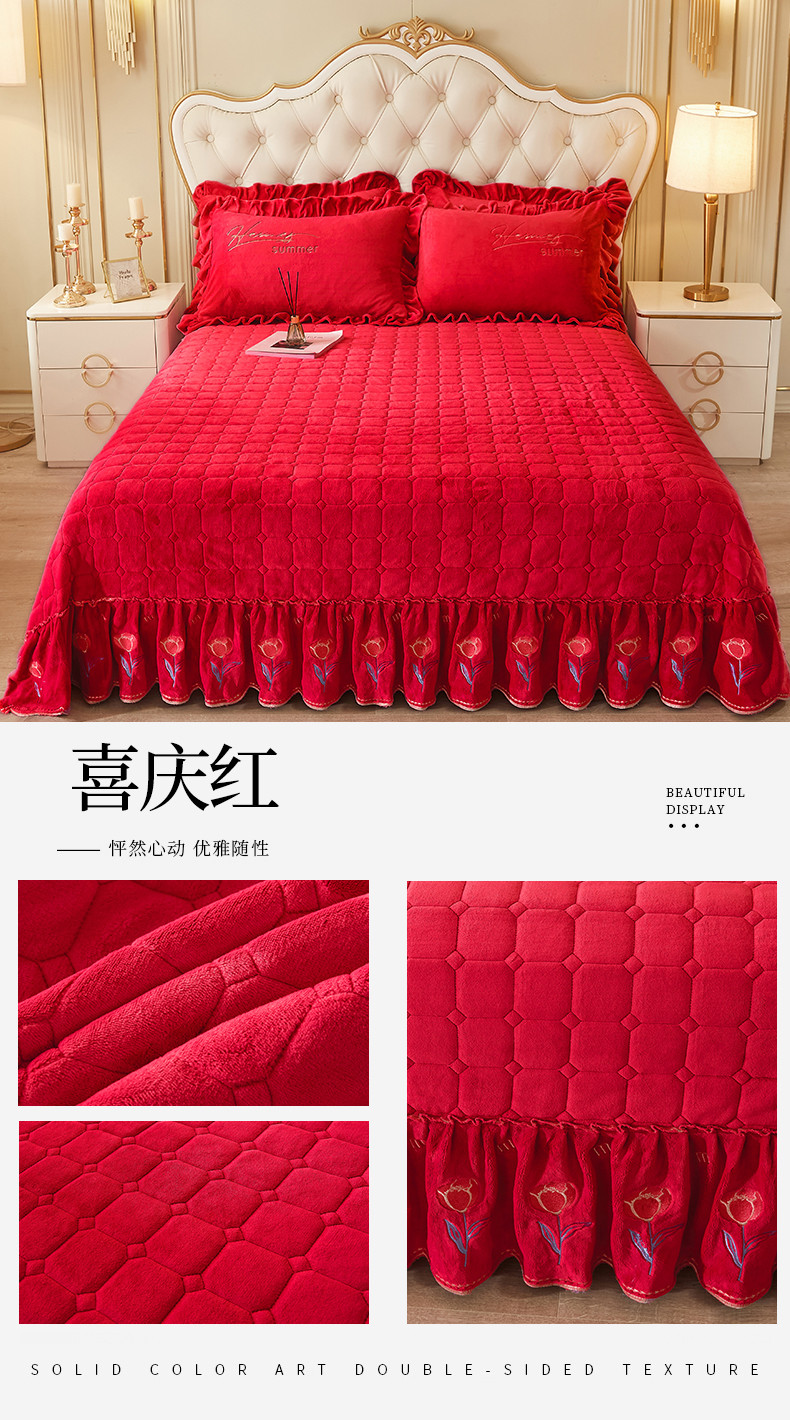 (总)恒爱 2022秋冬水晶绒翩翩花舞夹棉床裙四件套,大红色,豆沙红,橄榄绿,公主粉,桔色,咖啡色,孔雀绿,拉菲红,罗兰紫,玫红色,美人玉,米白色,米驼色,抹茶绿,浅灰色,紫色