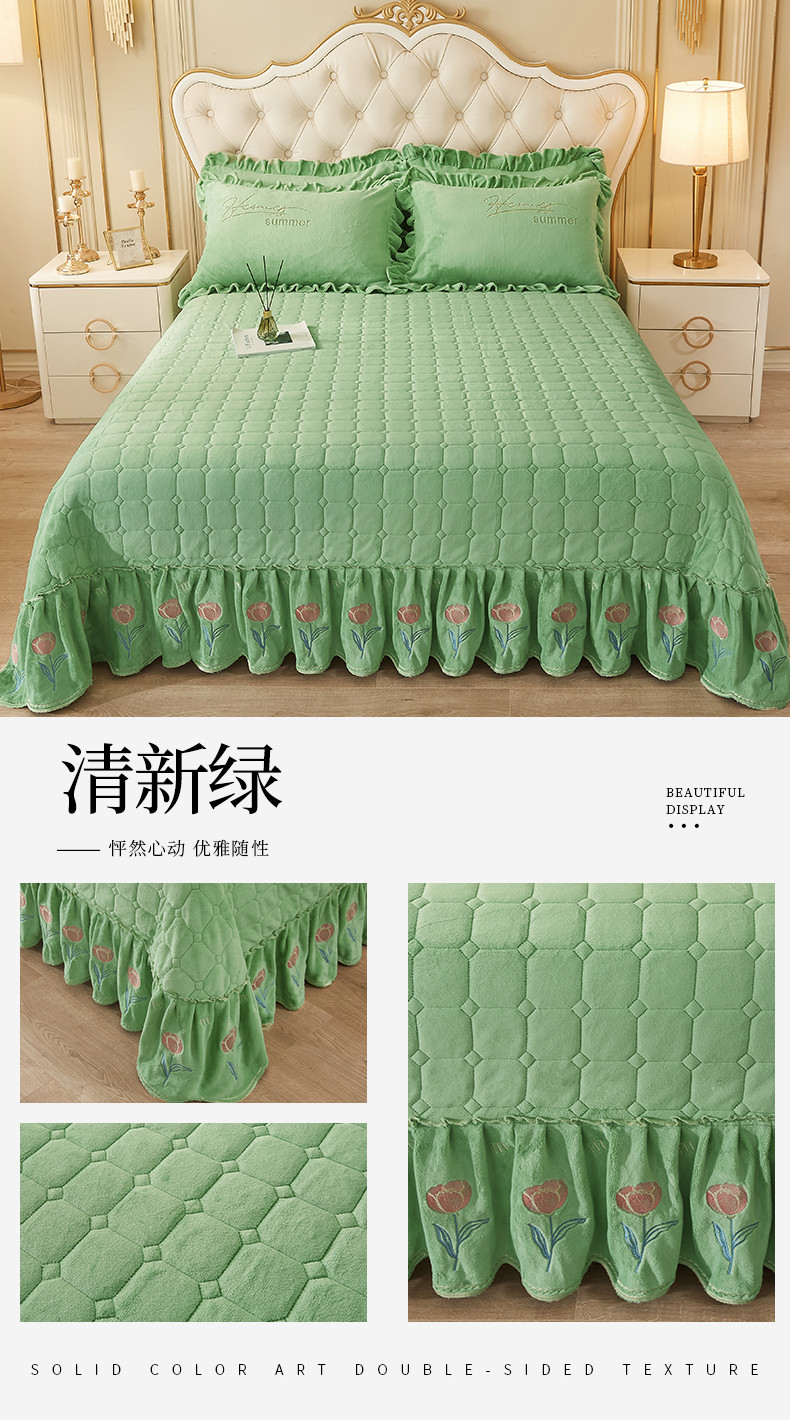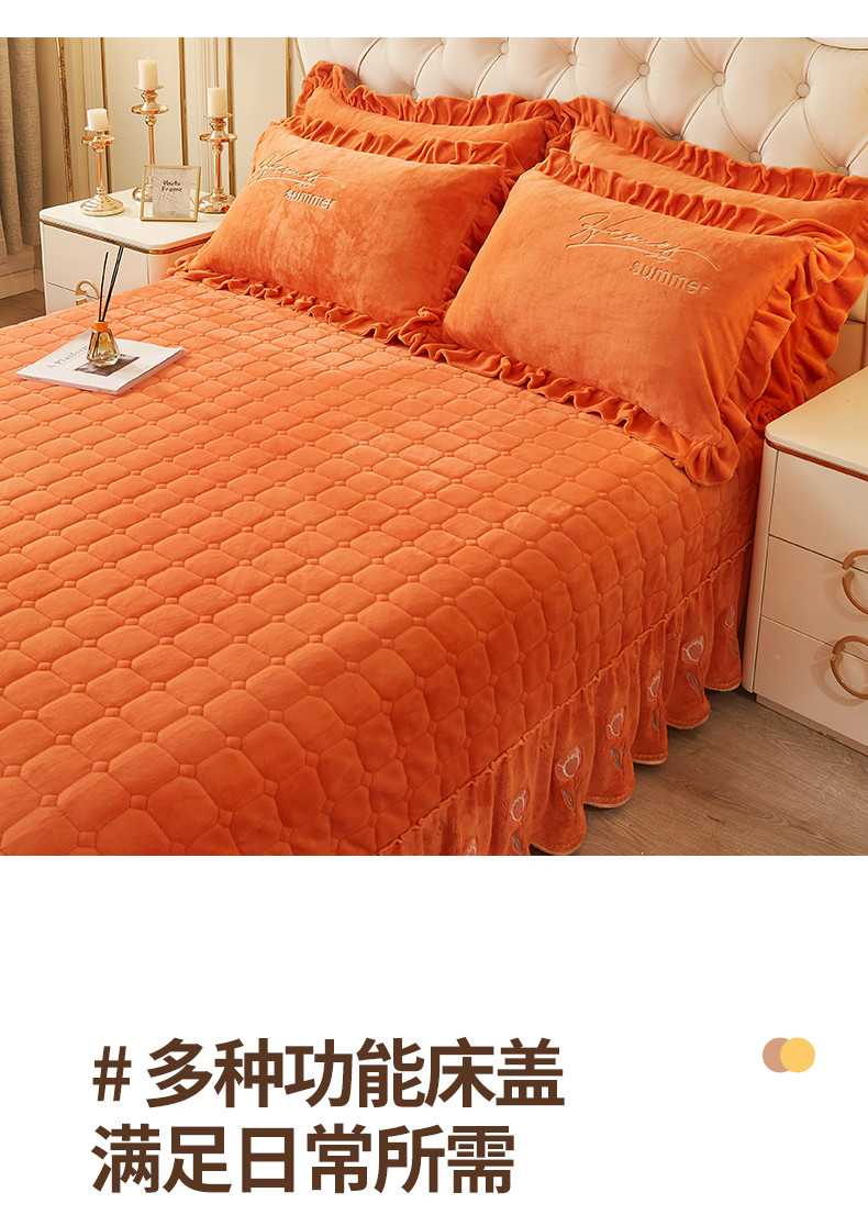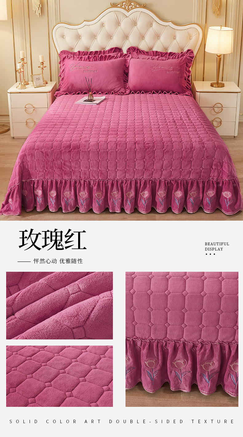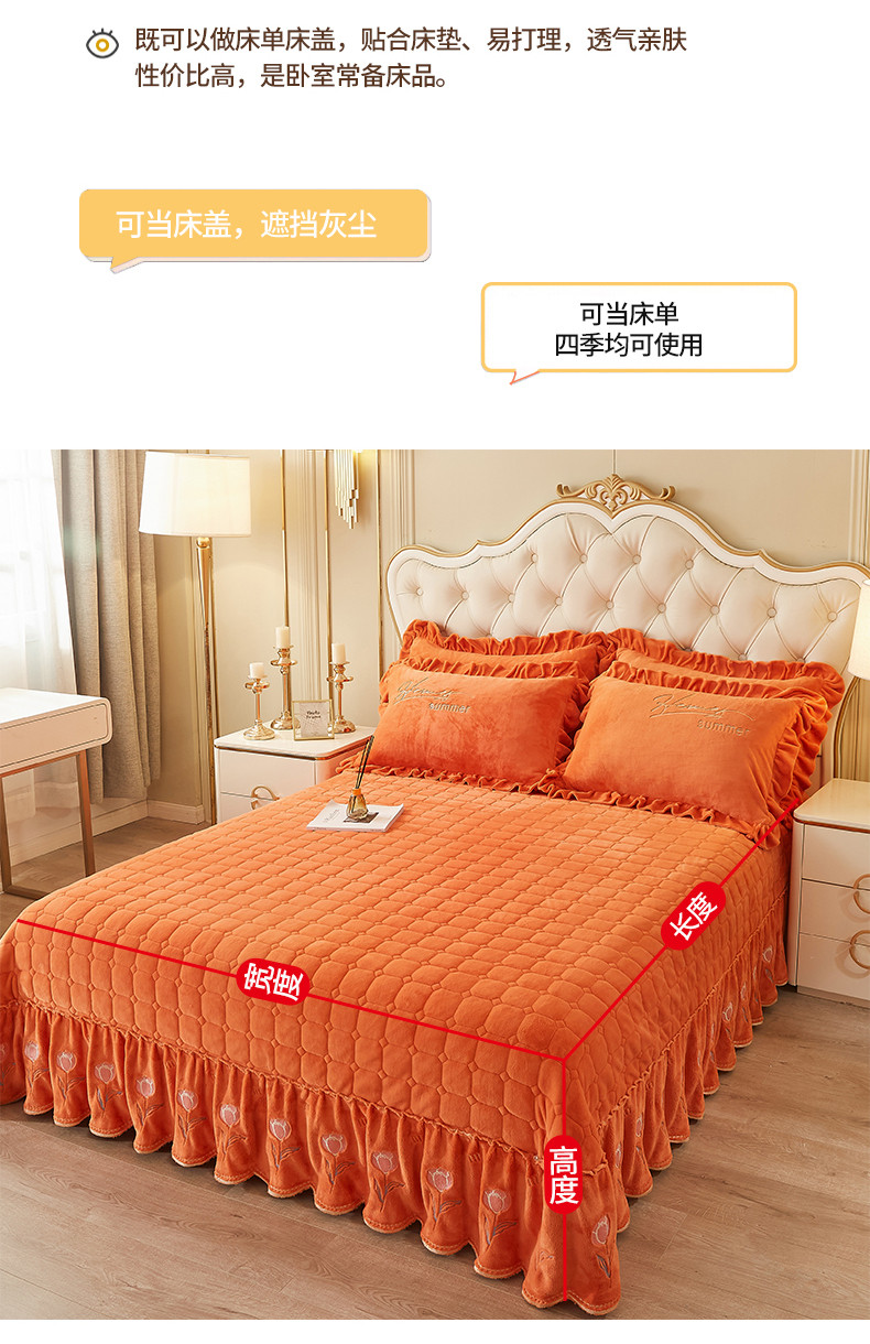 (总)恒爱 2022秋冬水晶绒翩翩花舞夹棉单床裙,大红色,豆沙红,橄榄绿,公主粉,桔色,咖啡色,孔雀绿,拉菲红,罗兰紫,玫红色,美人玉,米白色,米驼色,抹茶绿,浅灰色,紫色