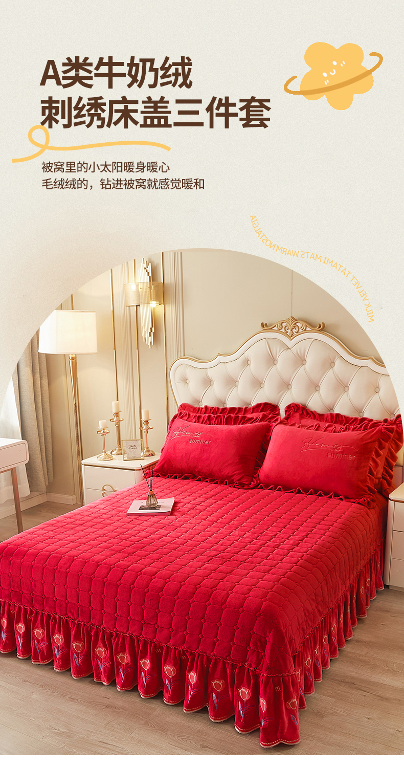 当前位置: 91家纺网 > 商品网购 > 床品套件 > 四件套 > 牛奶绒四件套 > 恒爱 2023新款A类牛奶绒羽毛床盖三件套 羽毛-喜庆红