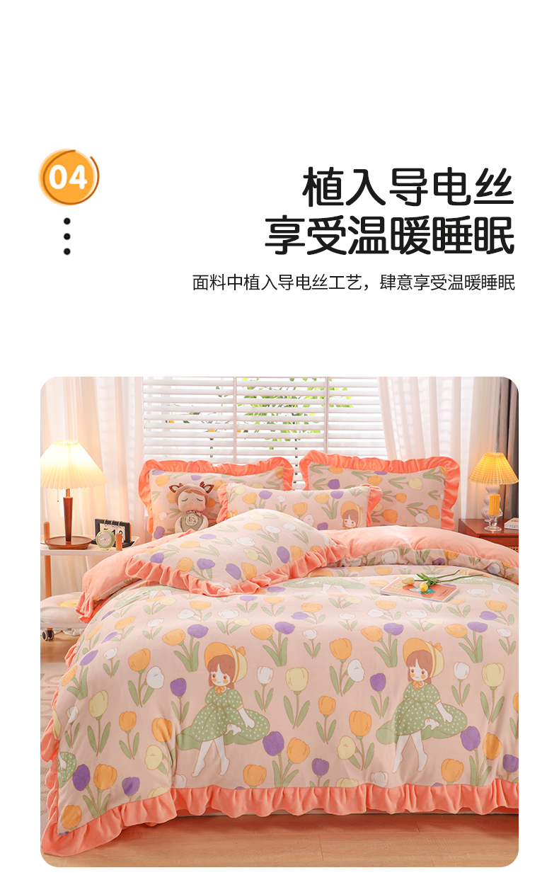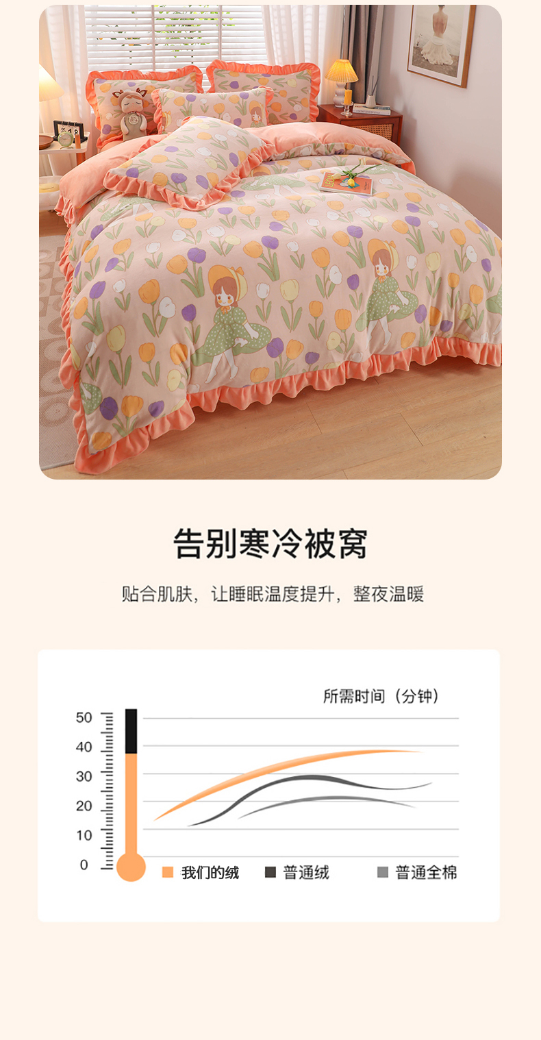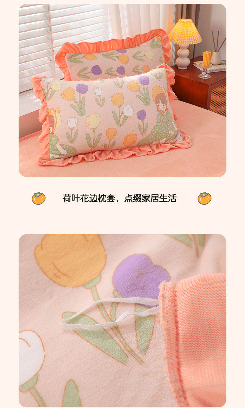 商品名称:家之硕 2023新款韩版荷叶边印花牛奶绒四件套 花园女孩