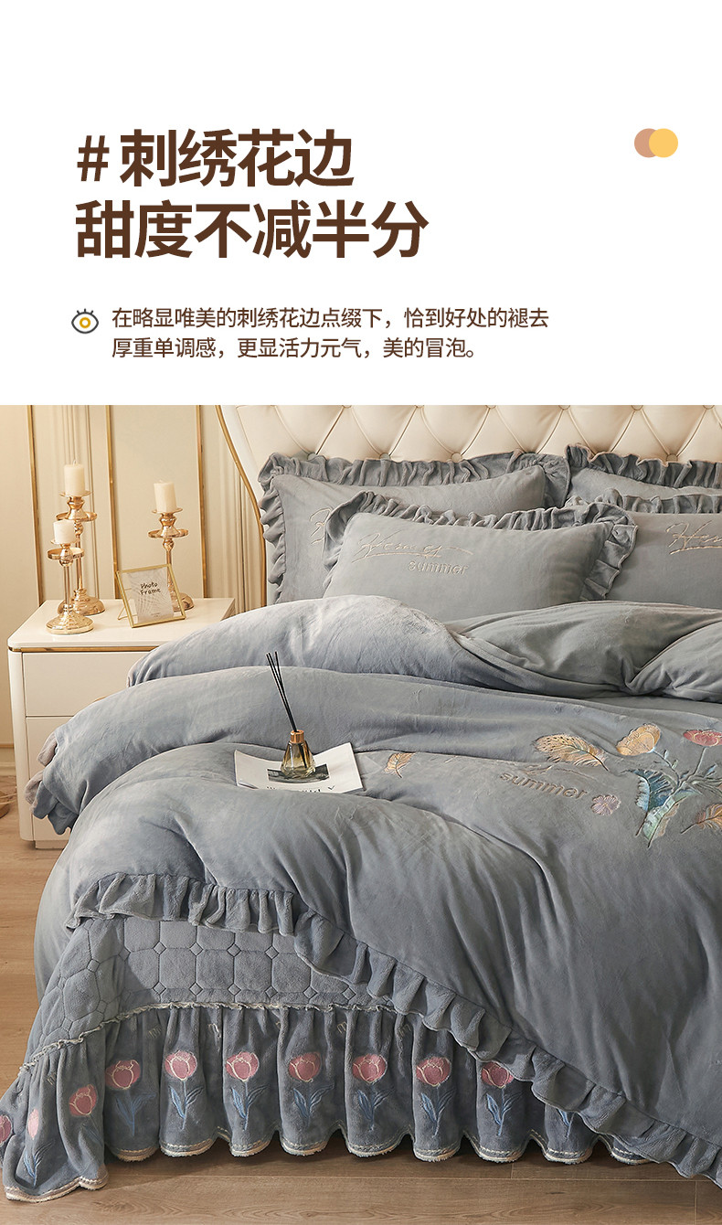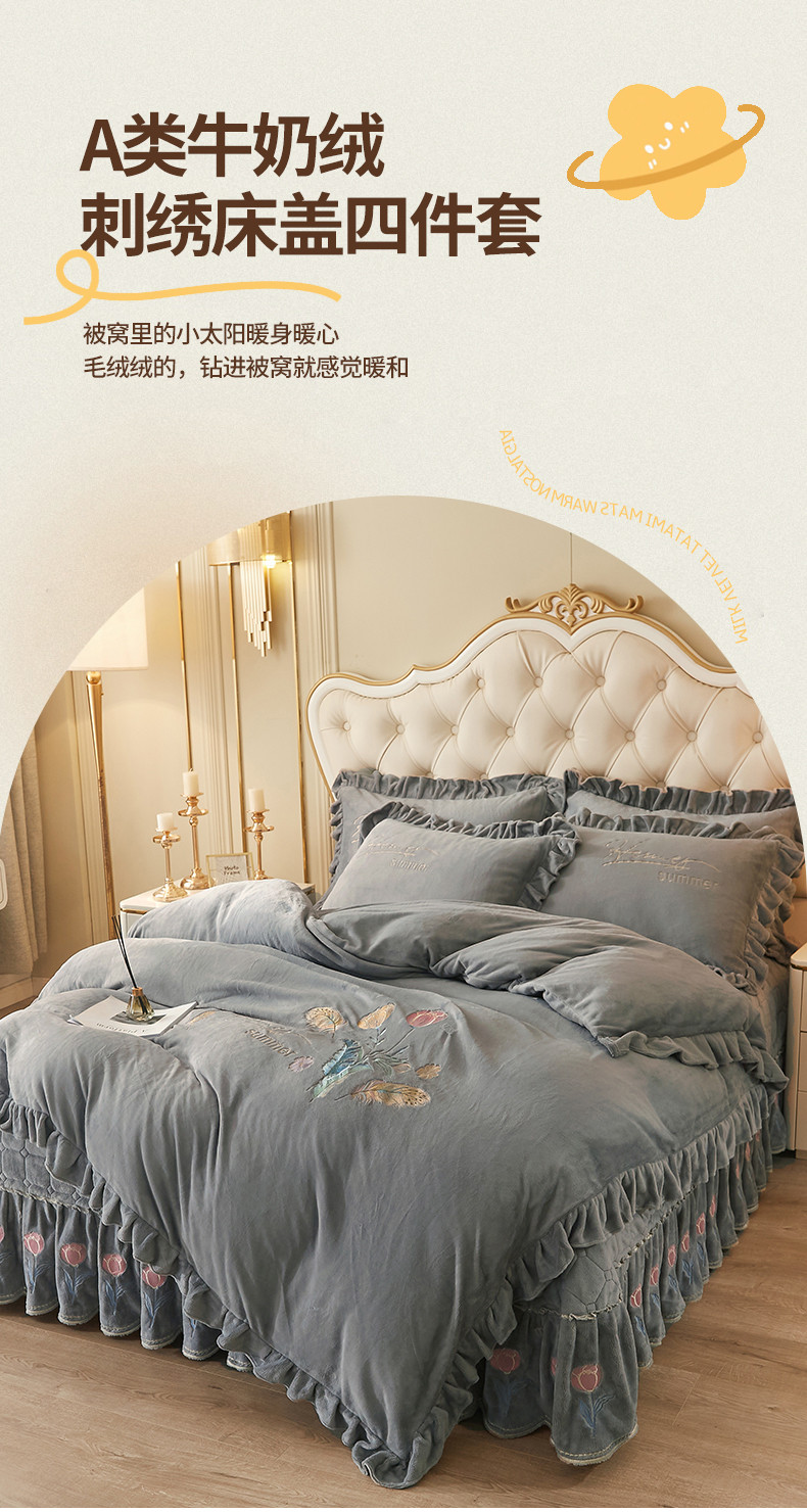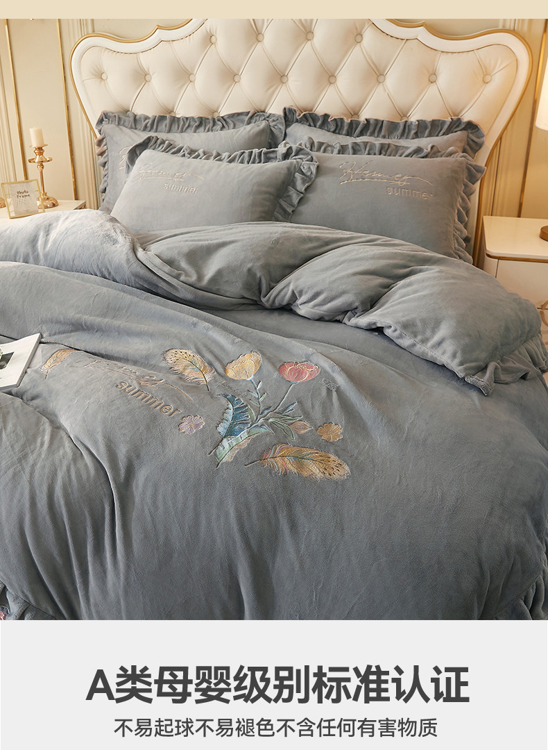 当前位置: 91家纺网 > 商品网购 > 床品套件 > 四件套 > 牛奶绒四件套 > 恒爱 2023新款A类牛奶绒羽毛床盖四件套 羽毛-绅士灰