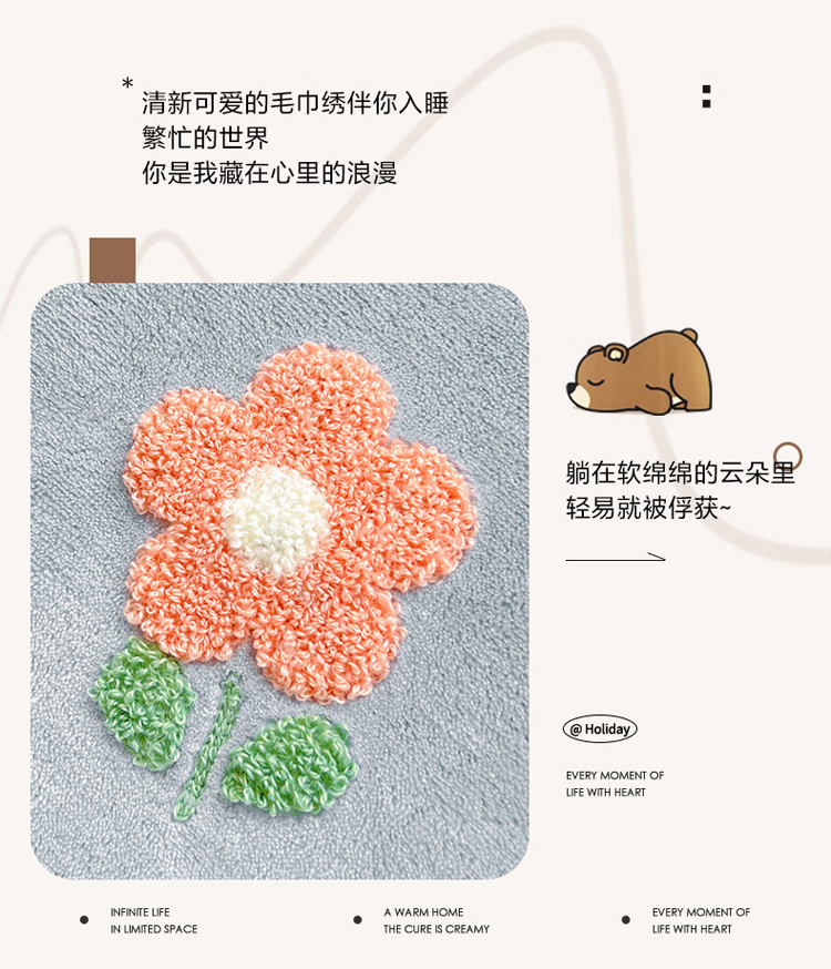 寐居家纺 2023新款高克重牛奶绒毛巾绣四件套 朵朵花开-蓝粉