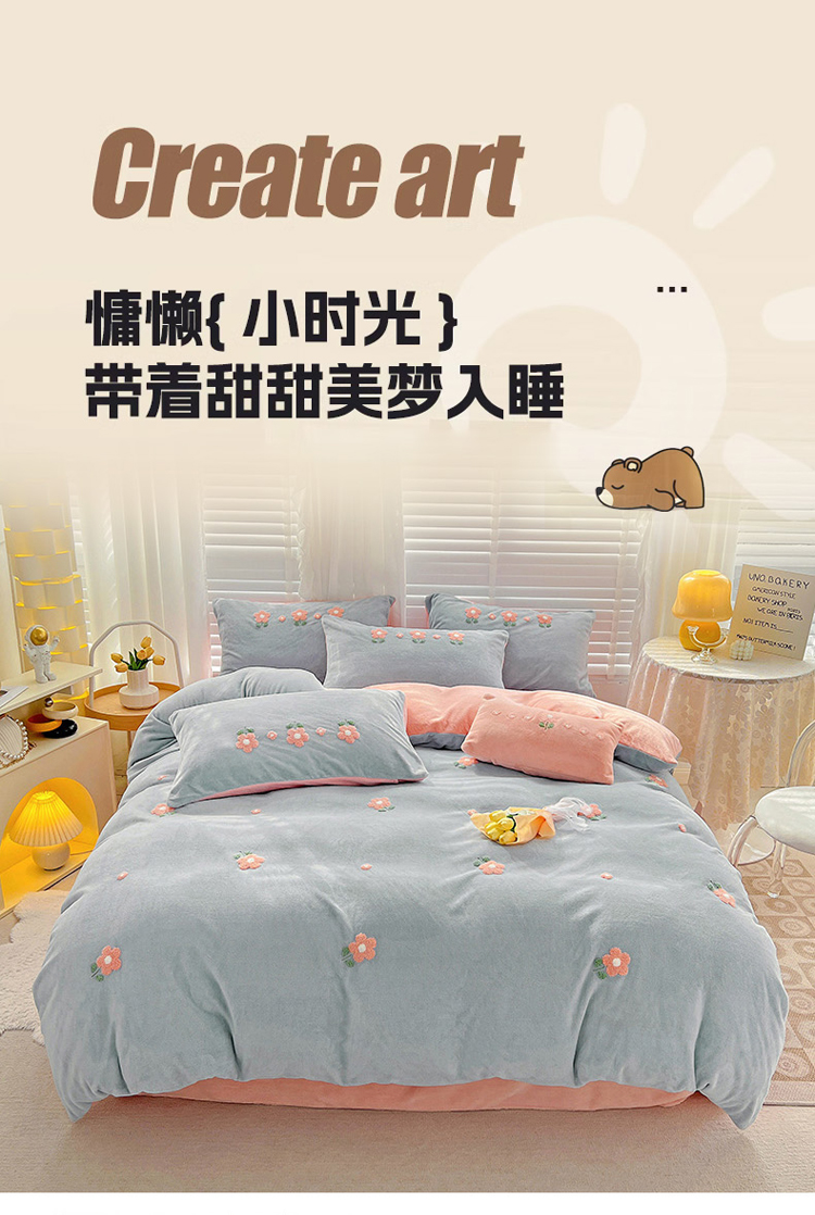 (总)寐居家纺 2025新款贴布绣高克重牛奶绒四件套,安吉拉喵,查理狗,粉糯kitty,皮皮布布
