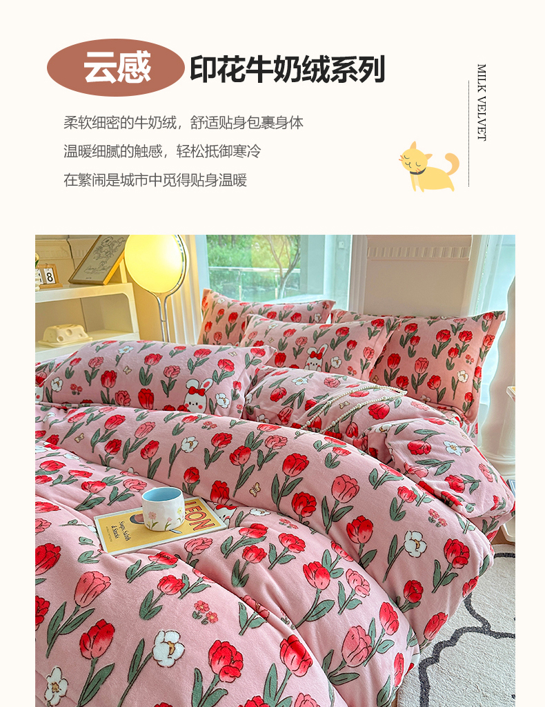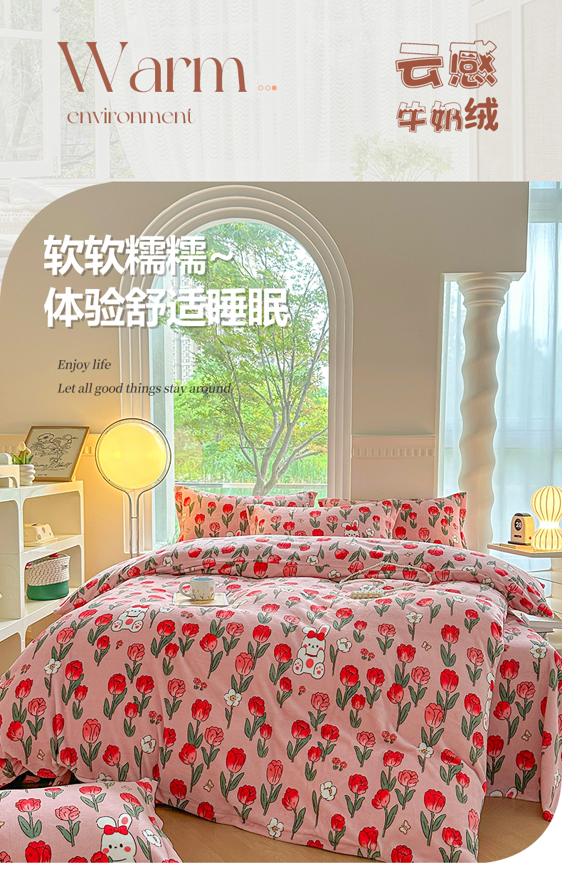 2024秋冬新款牛奶绒单被套 玫瑰乐园