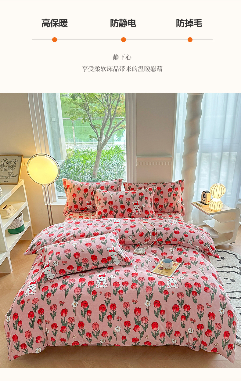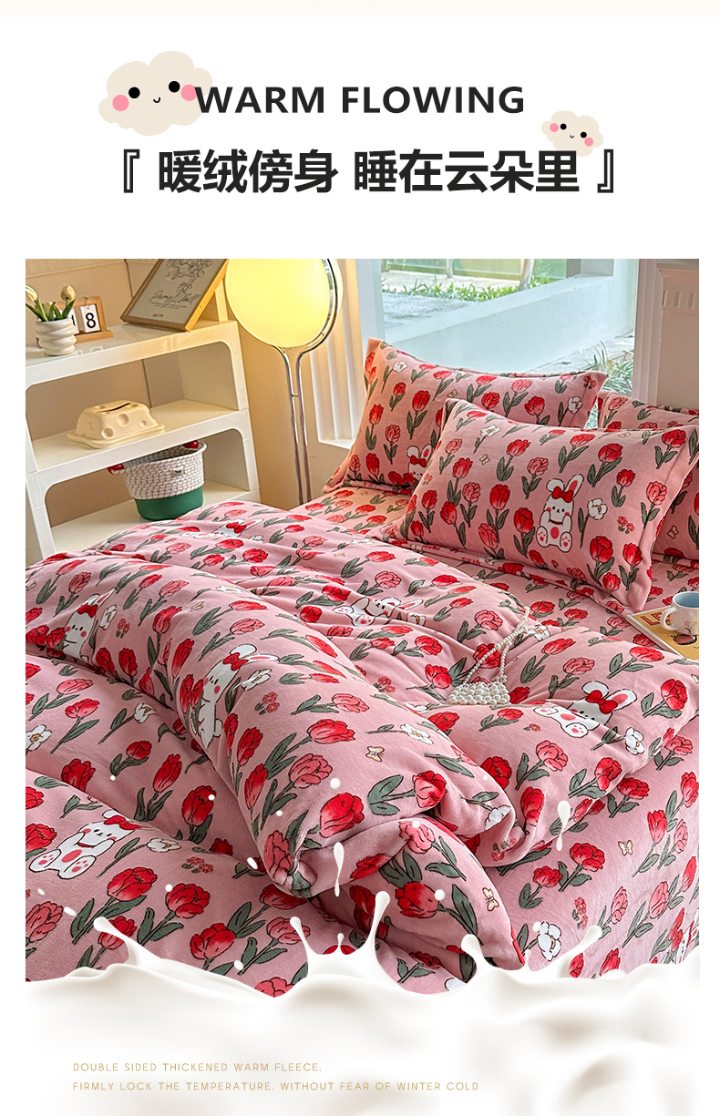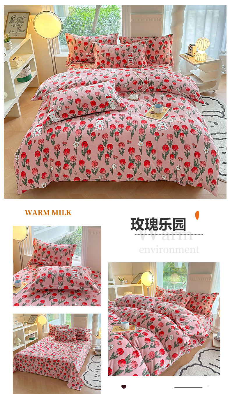 商品名称:2024秋冬新款牛奶绒单被套 玫瑰乐园