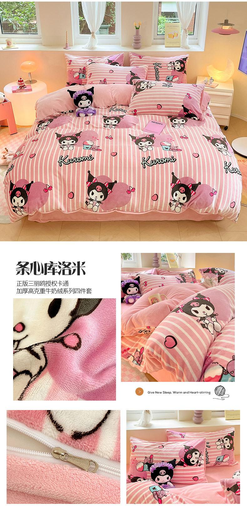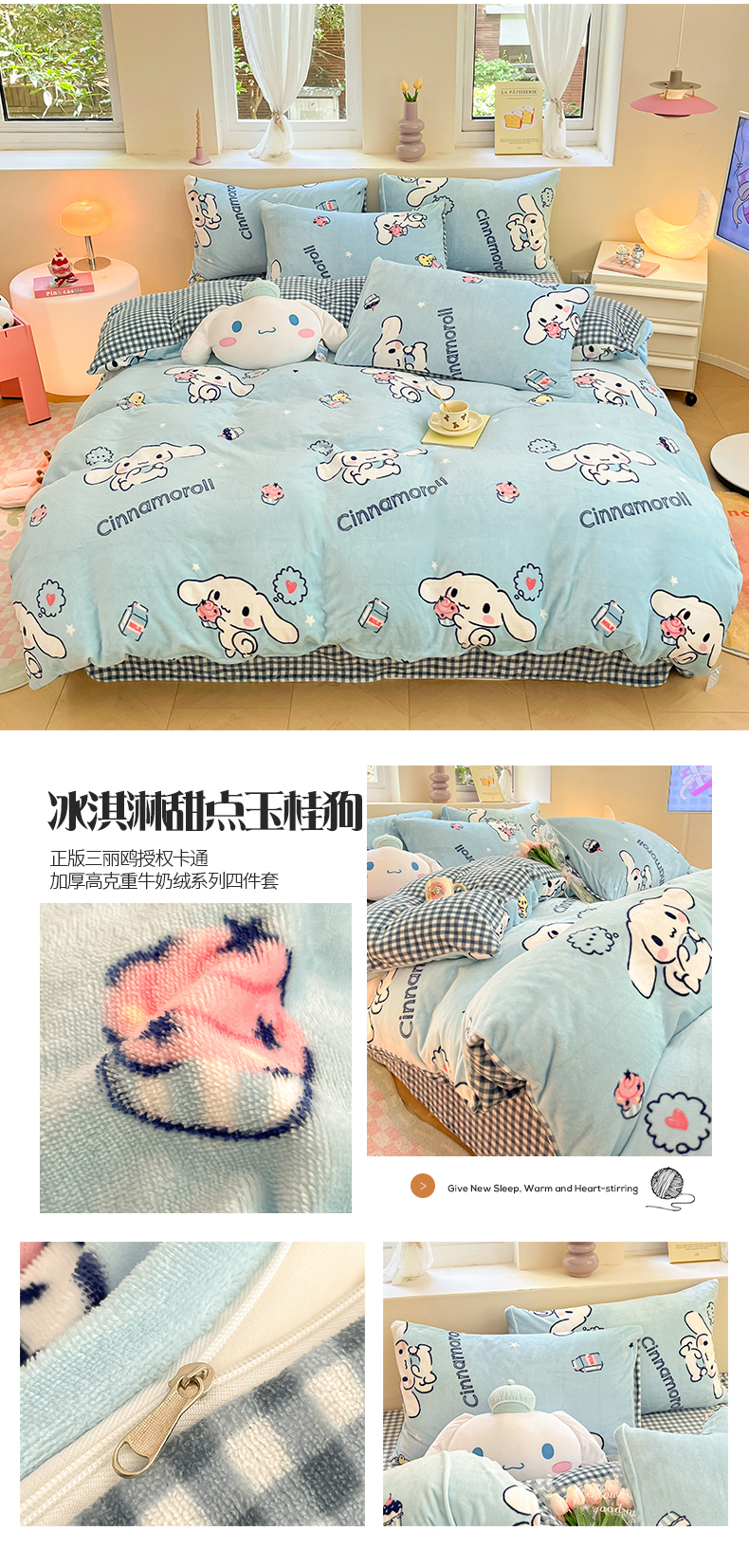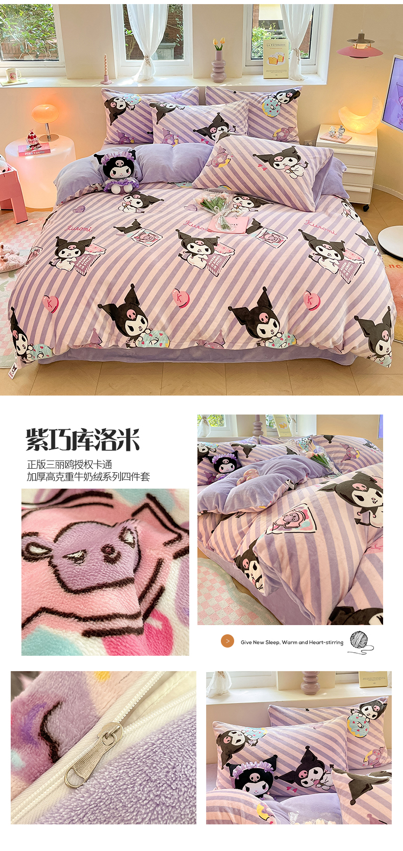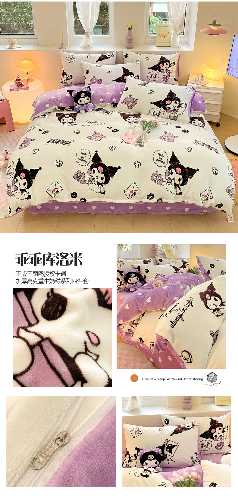 (总)桃子 2023新款正版三丽鸥授权卡通加厚高克重牛奶绒系列四件套