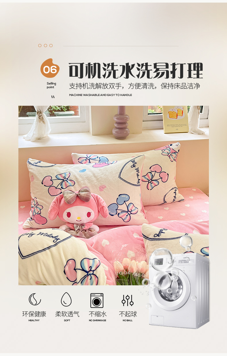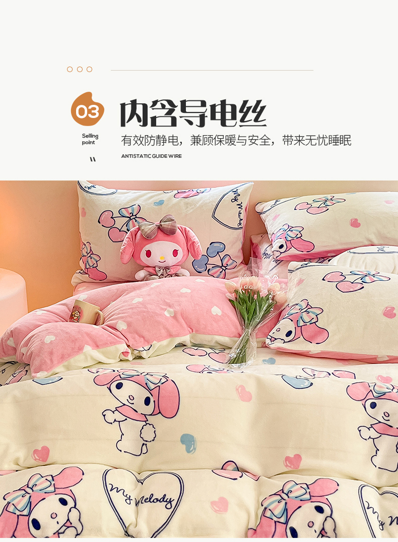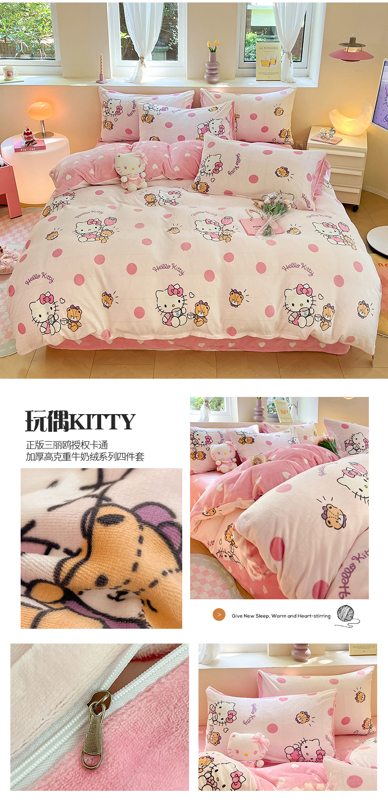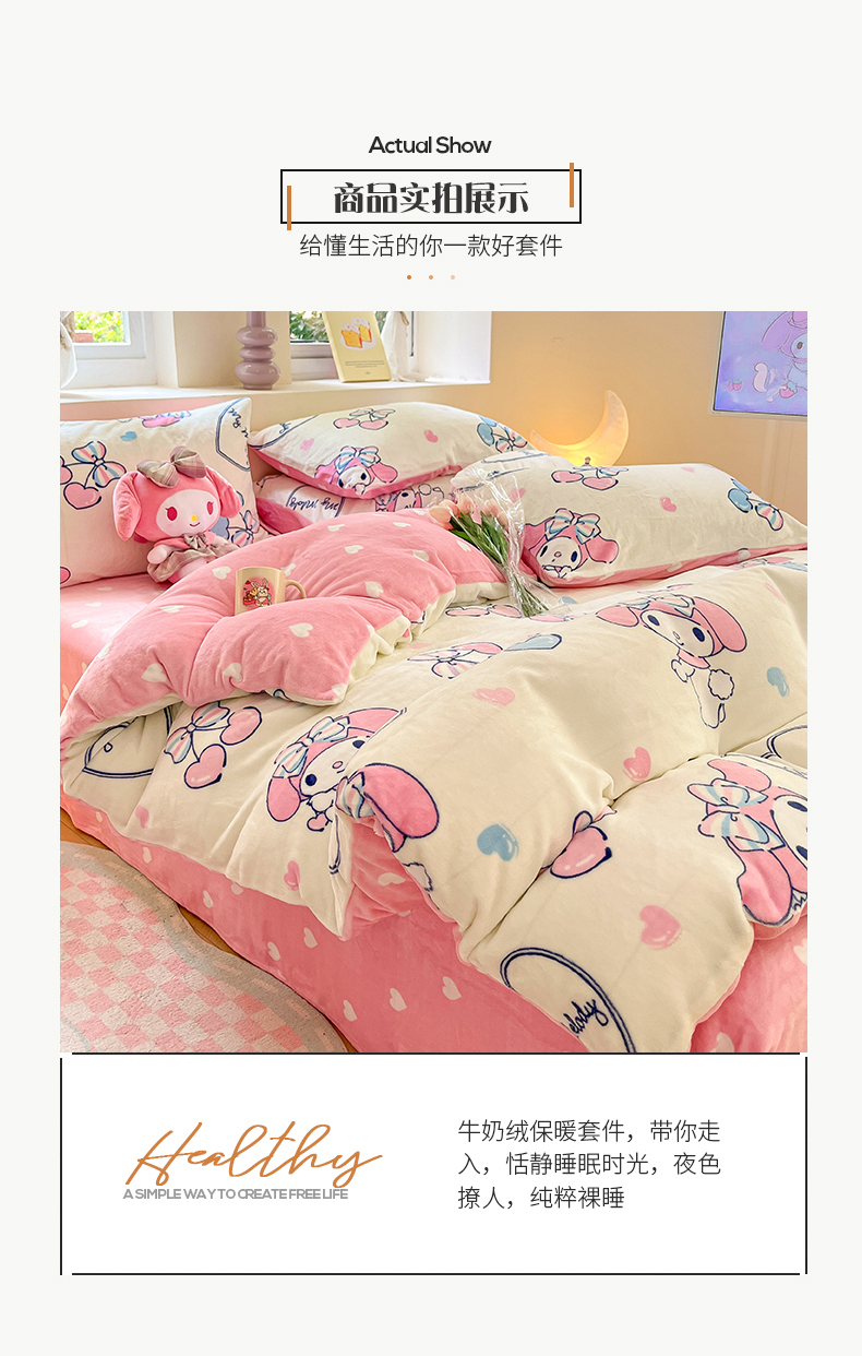 (总)桃子 2023新款正版三丽鸥授权卡通加厚高克重牛奶绒系列四件套