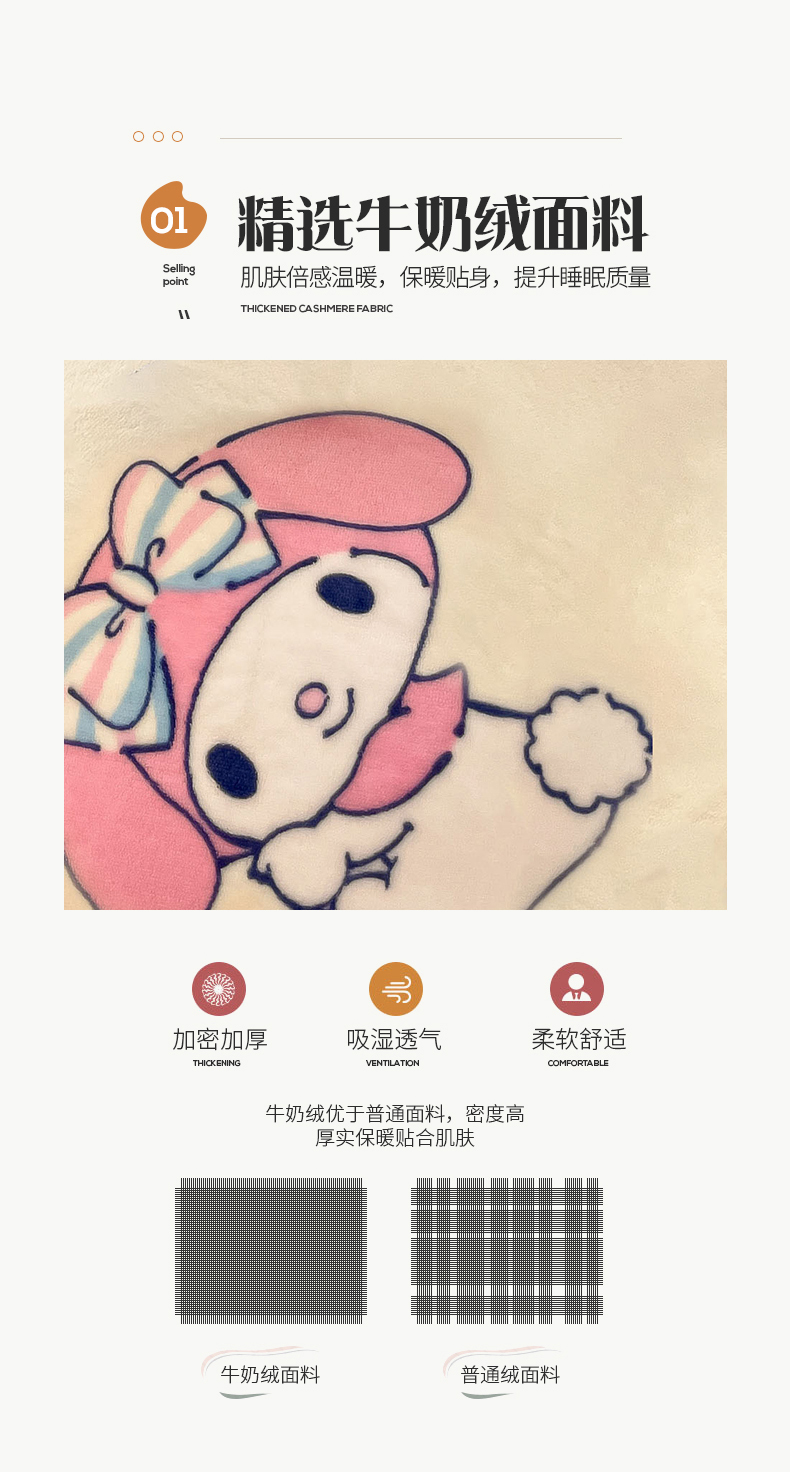 商品名称:(总)桃子 2023新款正版三丽鸥授权卡通加厚高克重牛奶绒系列四件套