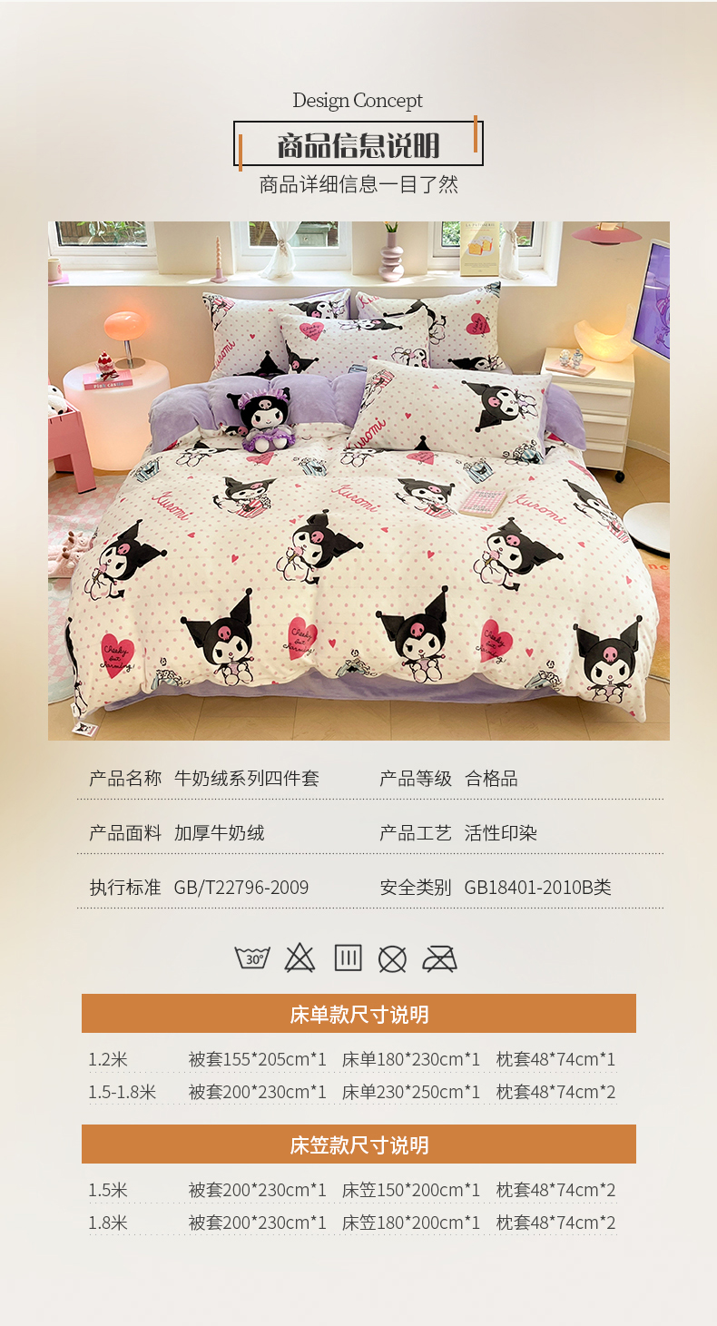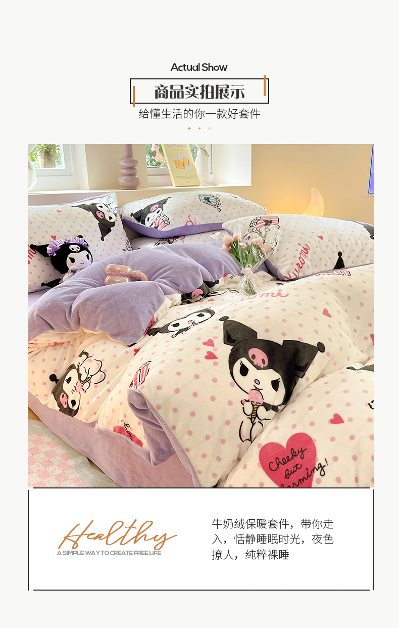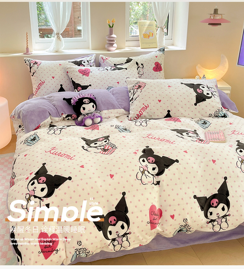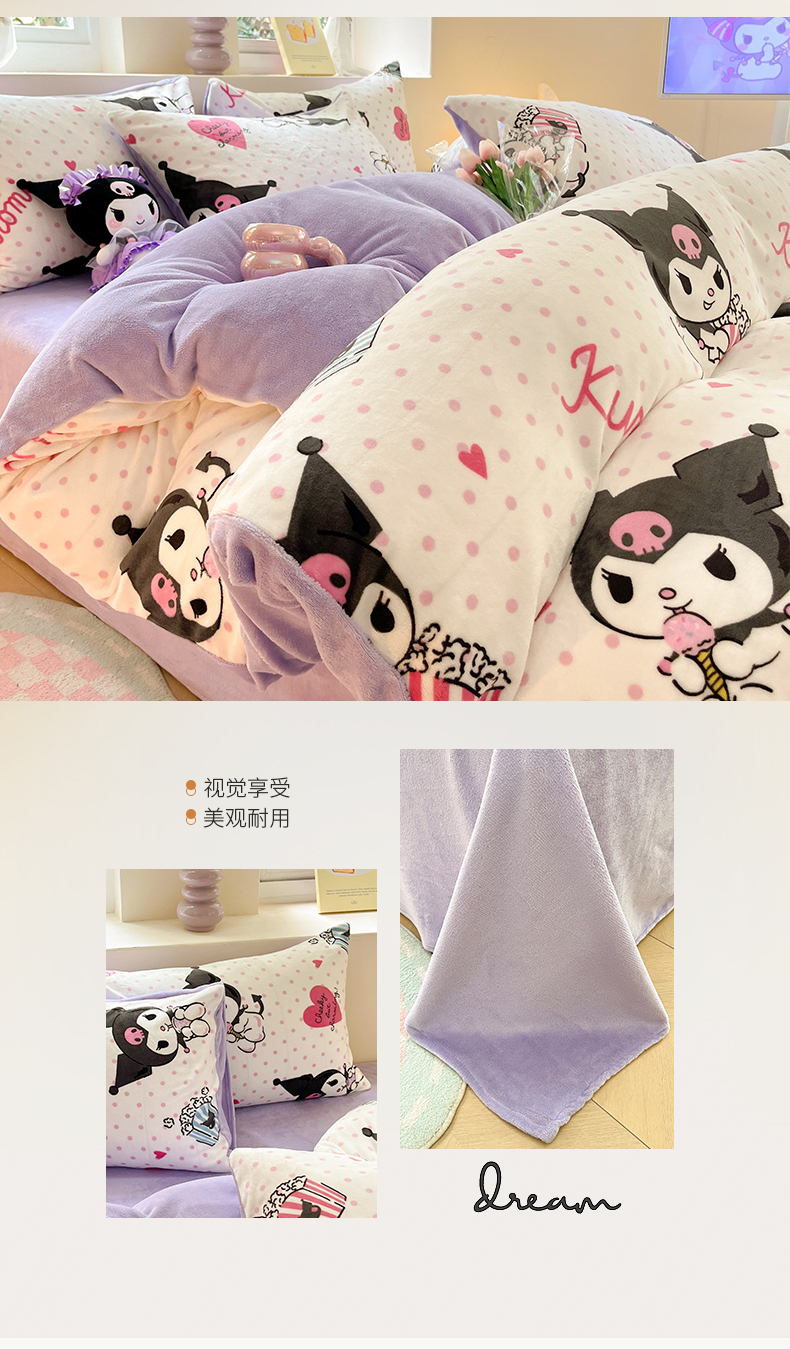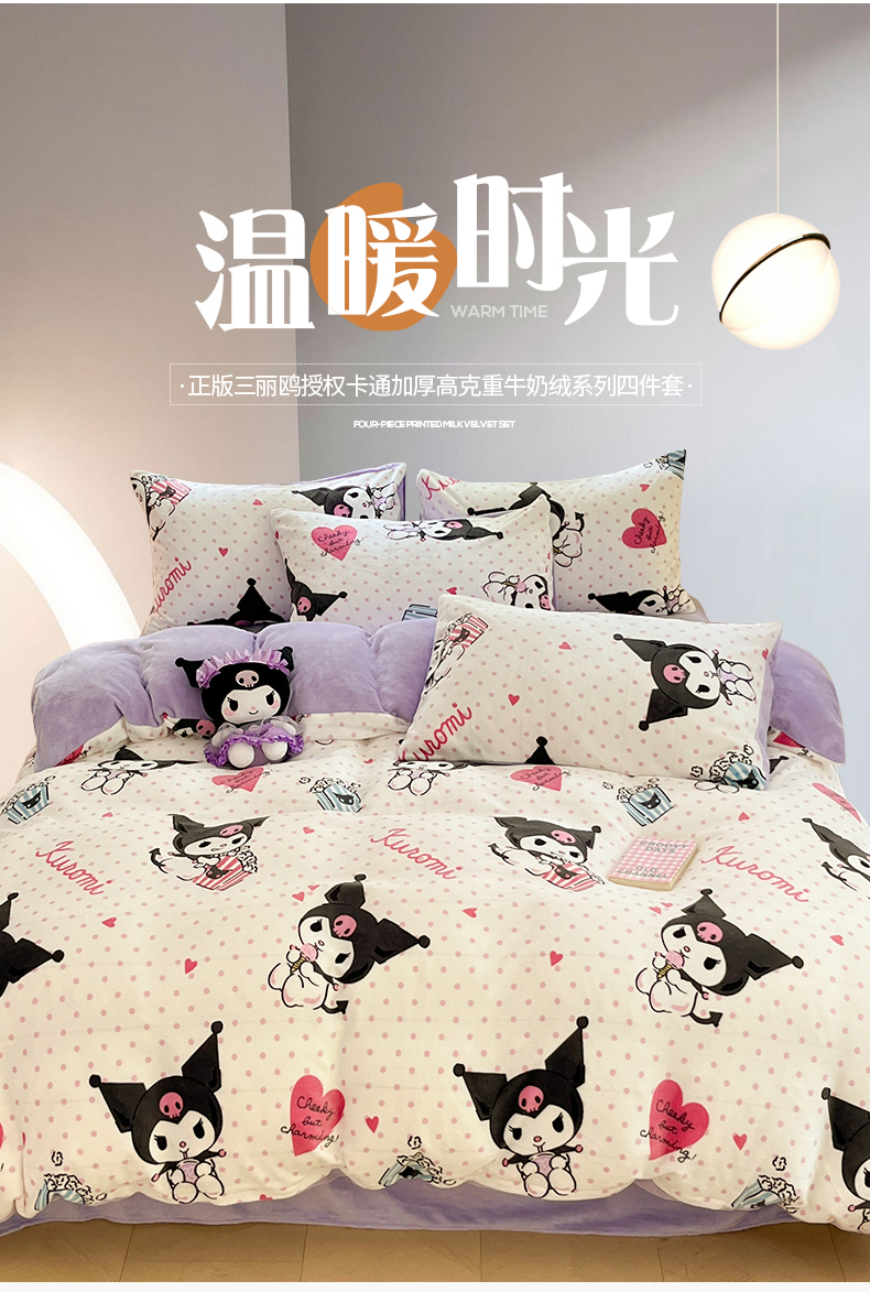 当前位置: 91家纺网 > 商品网购 > 床品套件 > 四件套 > 牛奶绒四件套 > 桃子 2023新款正版三丽鸥授权卡通加厚高克重牛奶绒系列四件套 绒三丽鸥-奶油库洛米