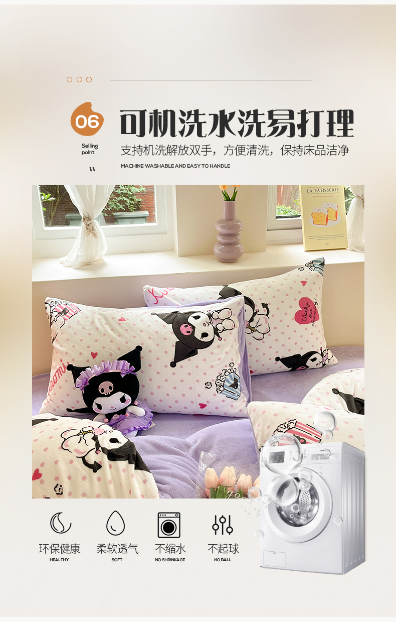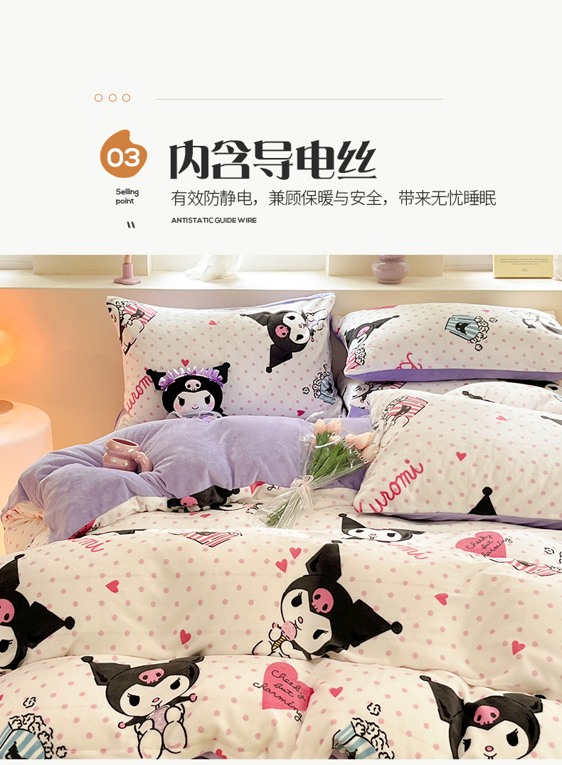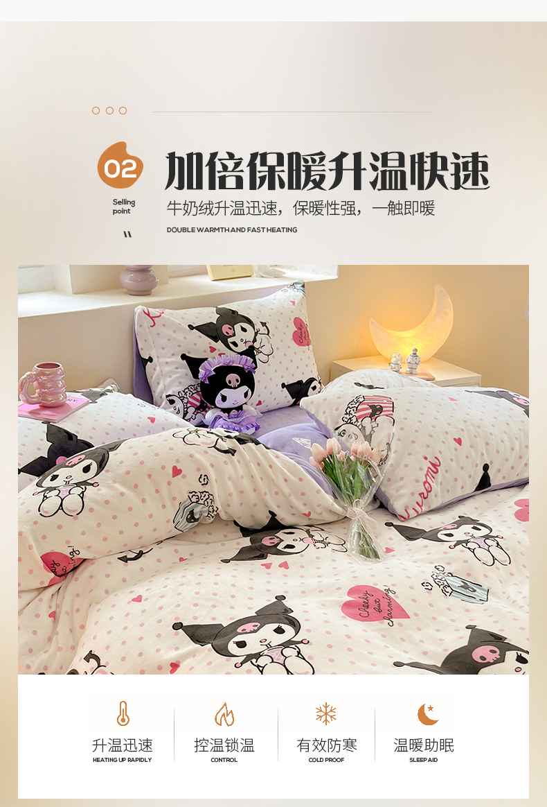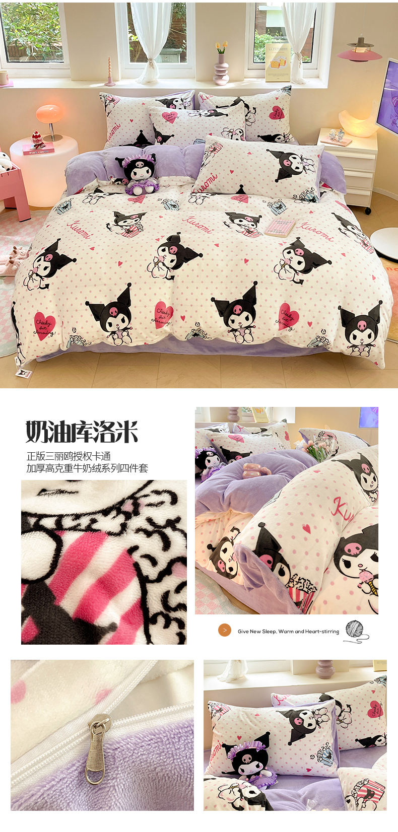 当前位置: 91家纺网 > 商品网购 > 床品套件 > 四件套 > 牛奶绒四件套 > 桃子 2023新款正版三丽鸥授权卡通加厚高克重牛奶绒系列四件套 绒三丽鸥-奶油库洛米