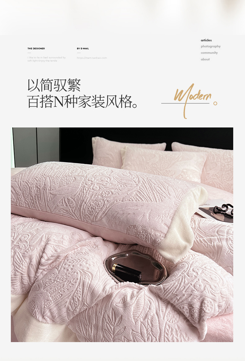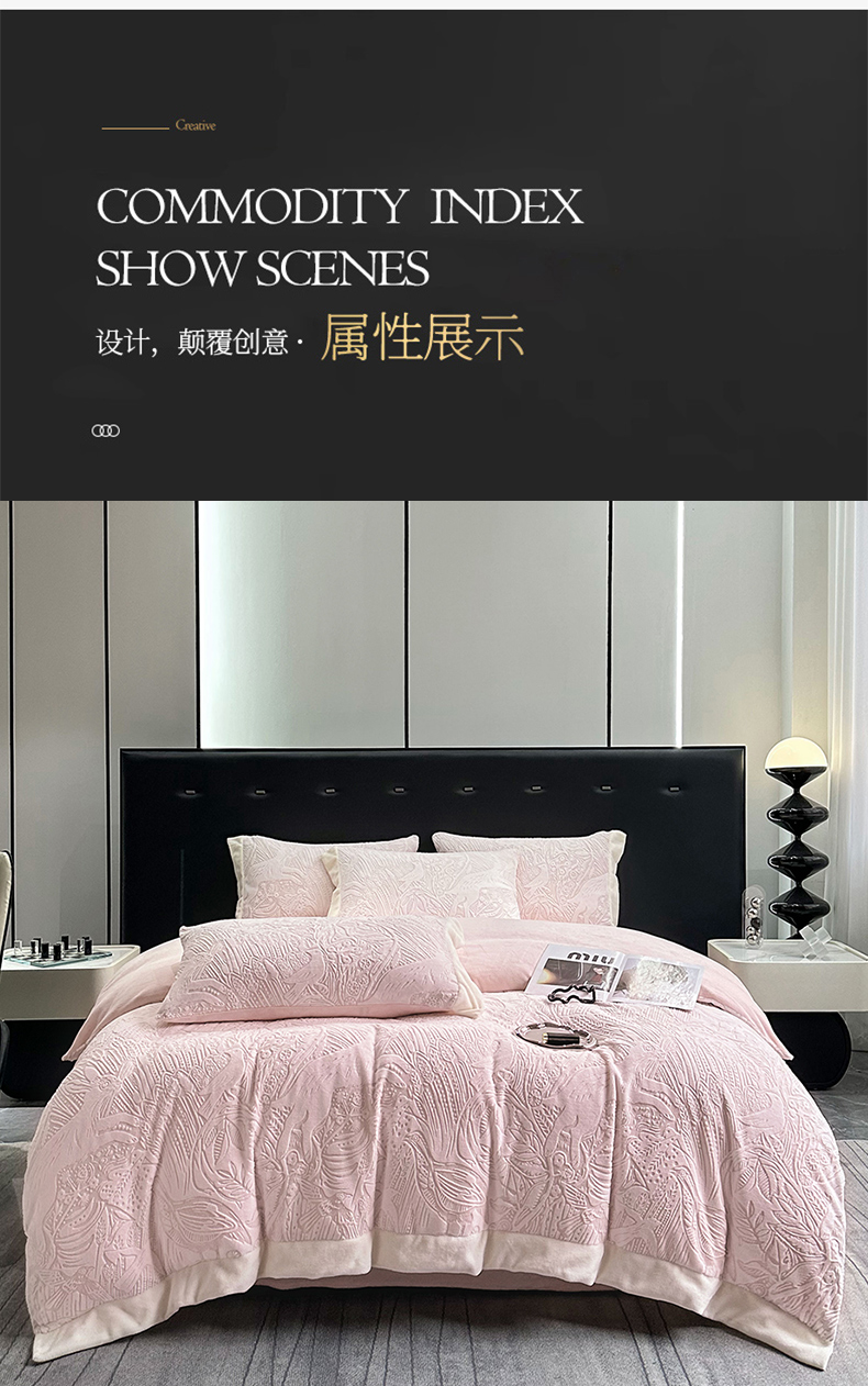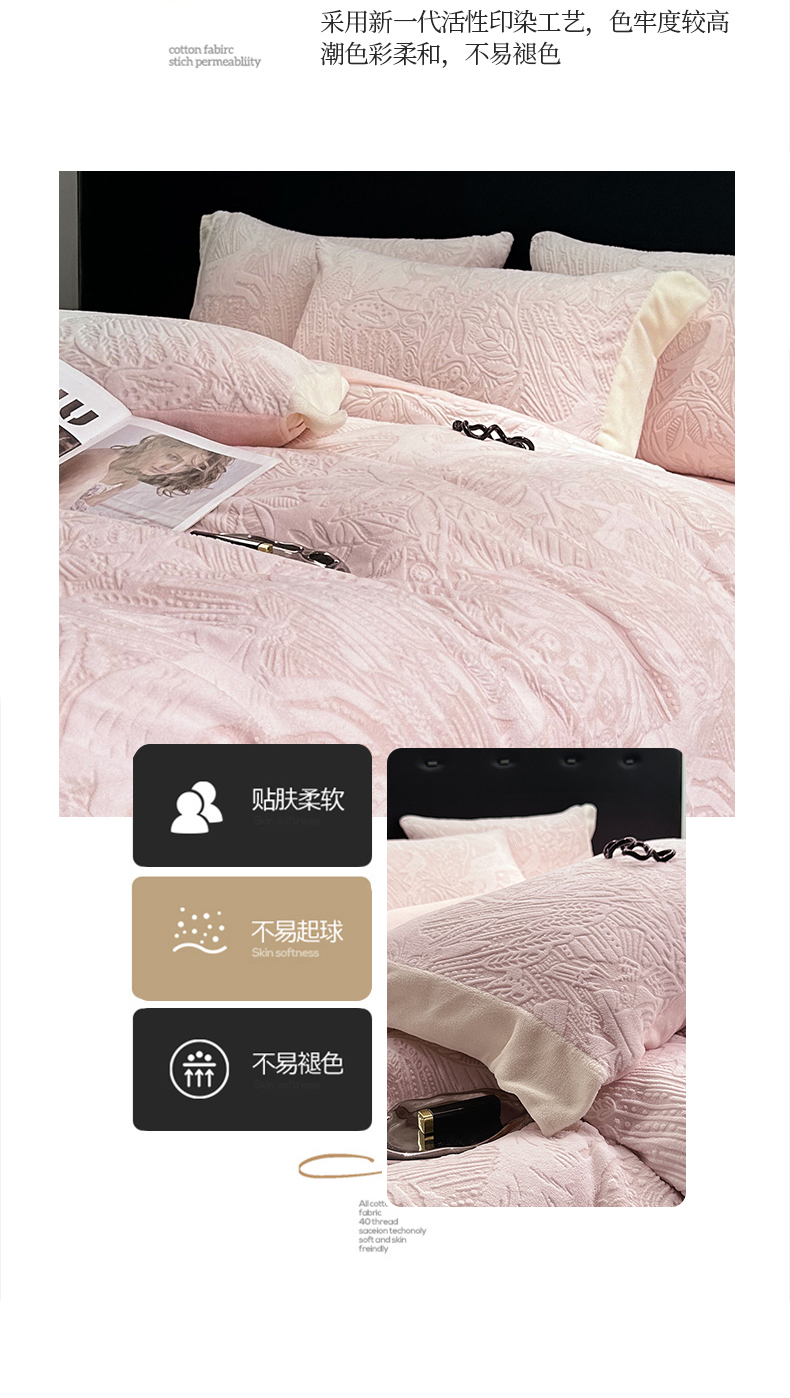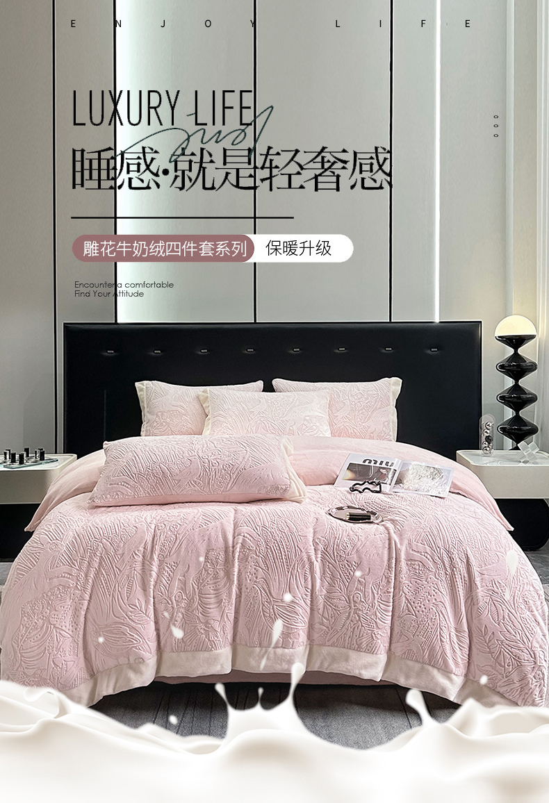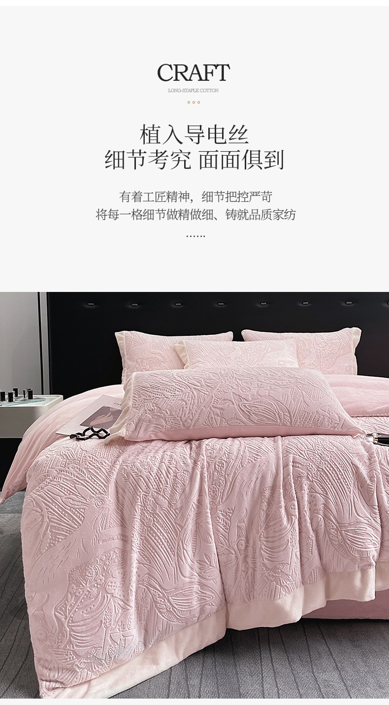 (总)宅家居 2025新款230克全消光雕花绒轻奢风立体烂花牛奶绒提花加厚保暖四件套-苏蜜绒,苏蜜绒-高贵灰,苏蜜绒-莫松绿,苏蜜绒-雪桃粉