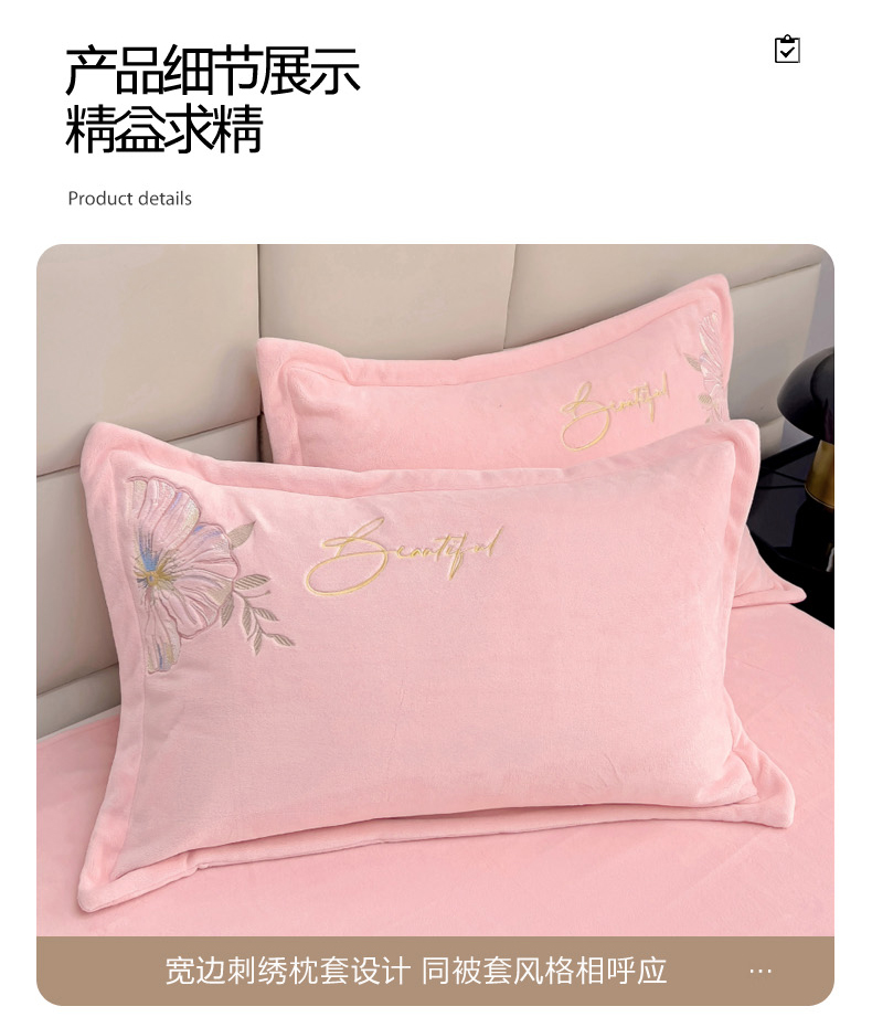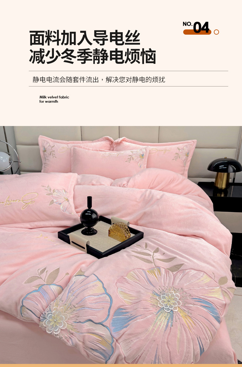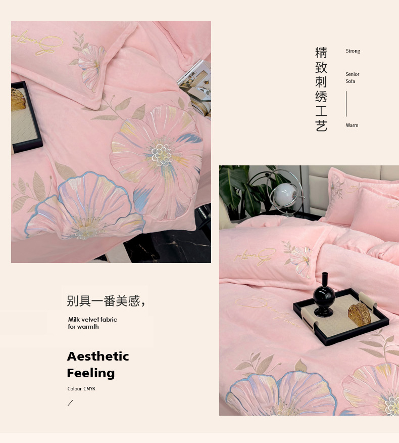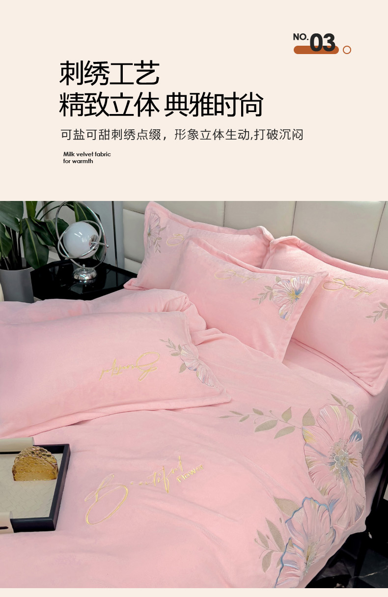 (总)星尚家纺 2024新款全消光230g牛奶绒刺绣保暖四件套-花漾,晨雾绿,豆沙粉,樱花粉