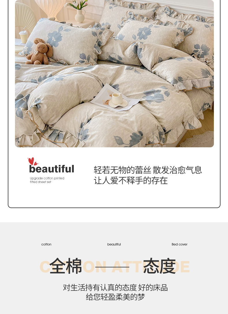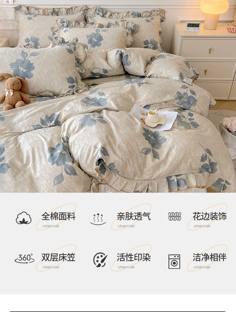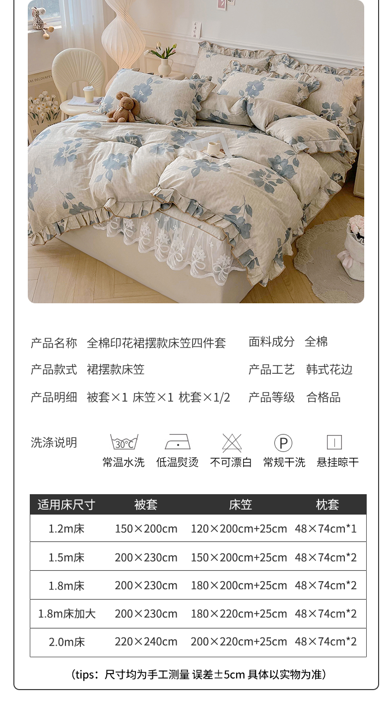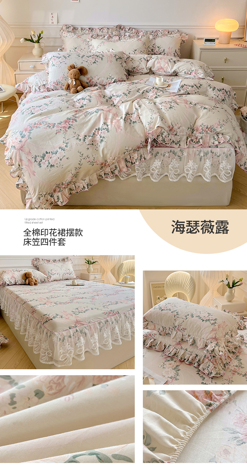 商品名称:(总)宜凡家纺 2023款全棉花边裙摆款床笠四件套