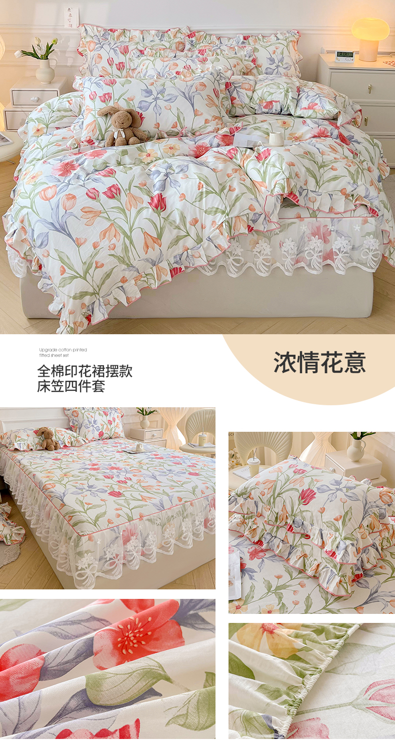 (总)宜凡家纺 2025新款全棉数码印花床裙四件套系列一,静若幽兰,浮云织梦,梦幻花园,陌上花开