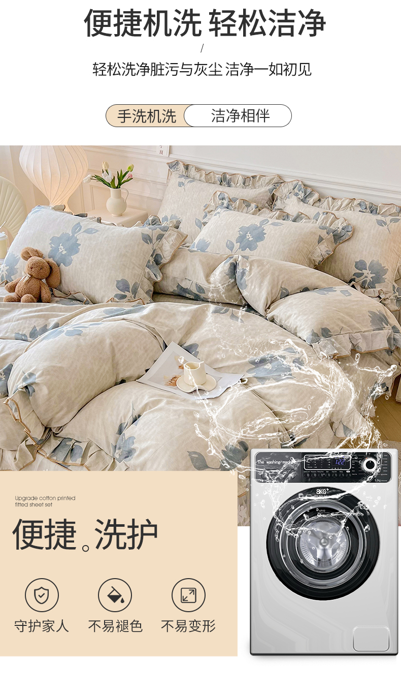 (总)宜凡家纺 2025新款全棉数码印花床裙三件套系列一,静若幽兰,浮云织梦,梦幻花园,陌上花开