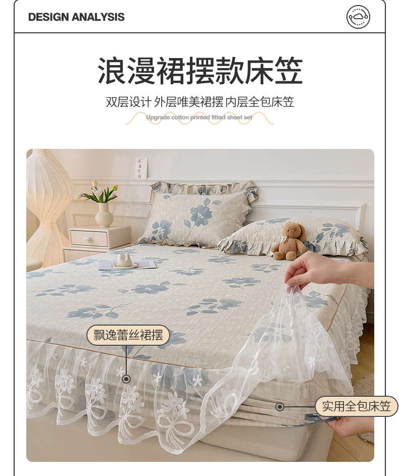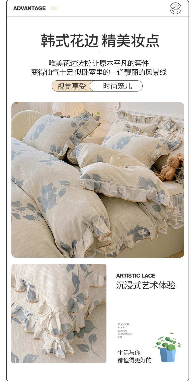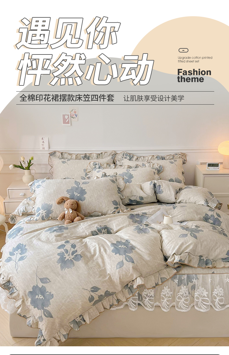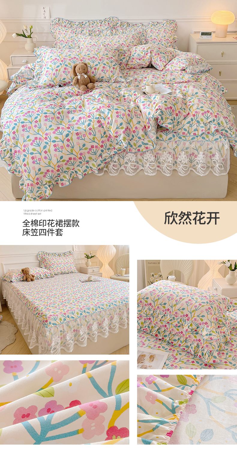 (总)宜凡家纺 2023款全棉花边裙摆款床笠四件套