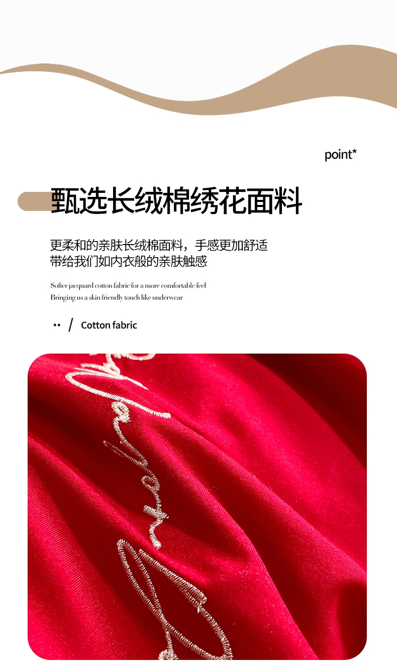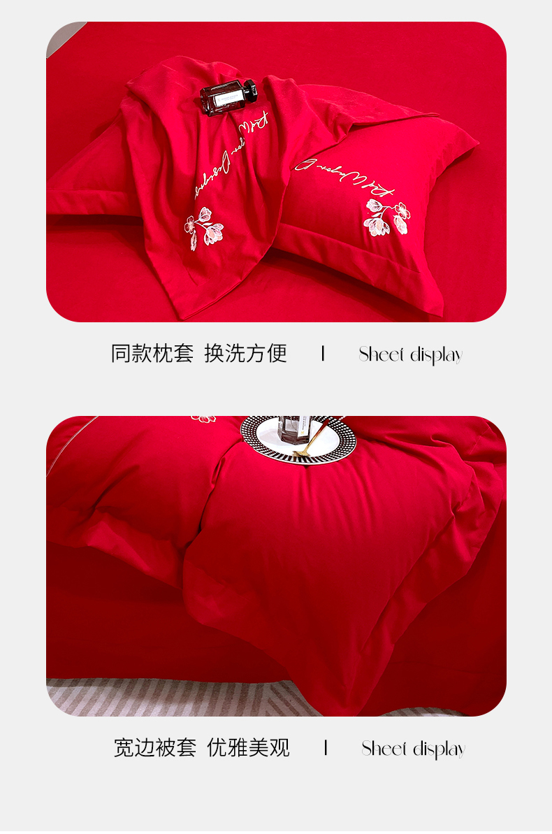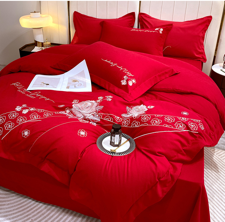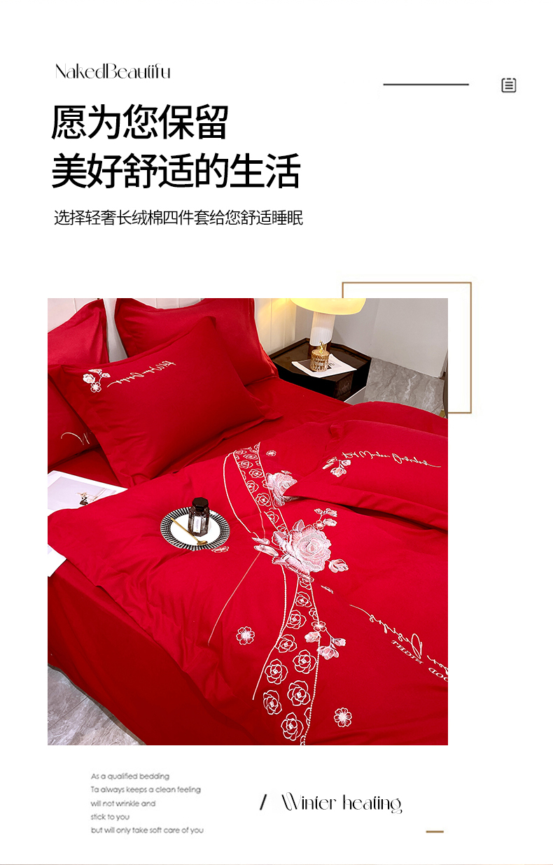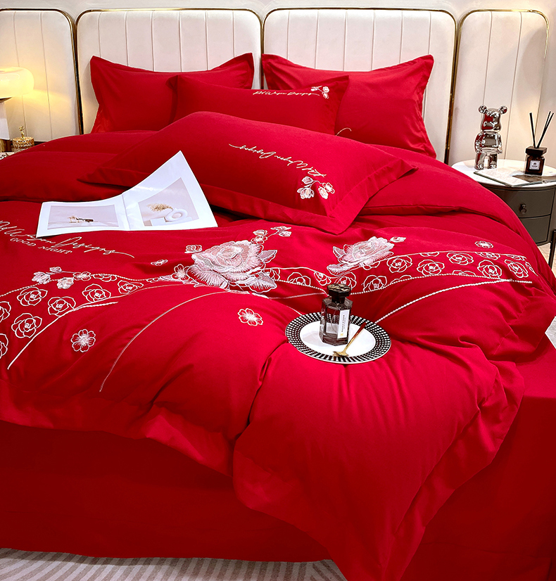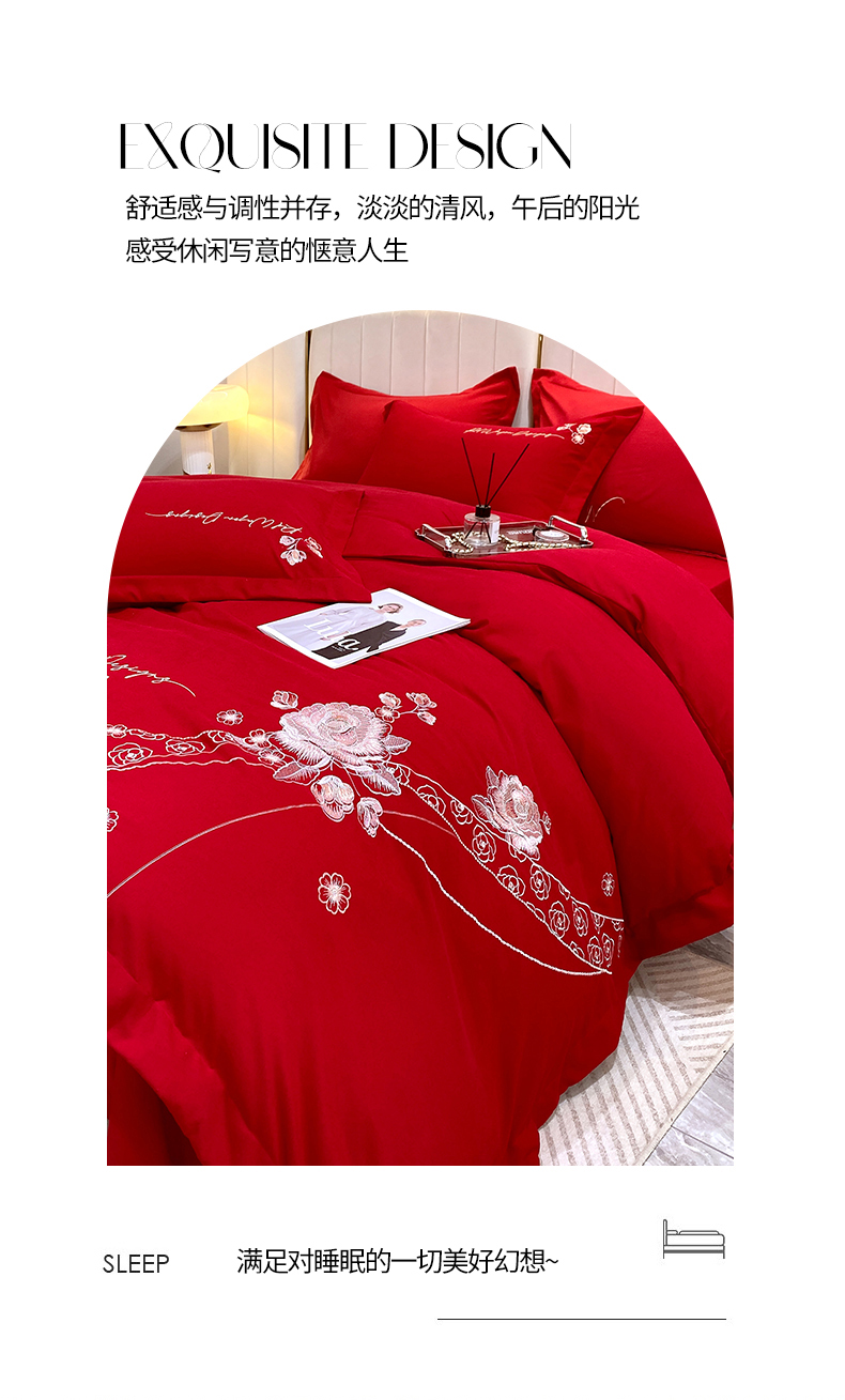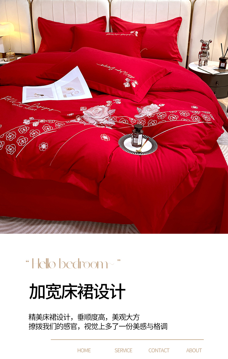 商品名称:帛缔思 2023新款轻奢长绒棉宽边绣花四件套-苏菲花园 苏菲花园-中国红