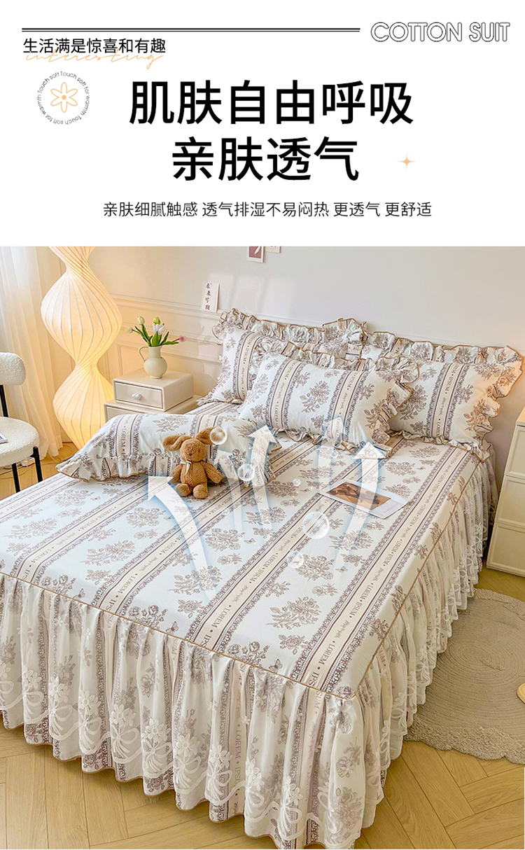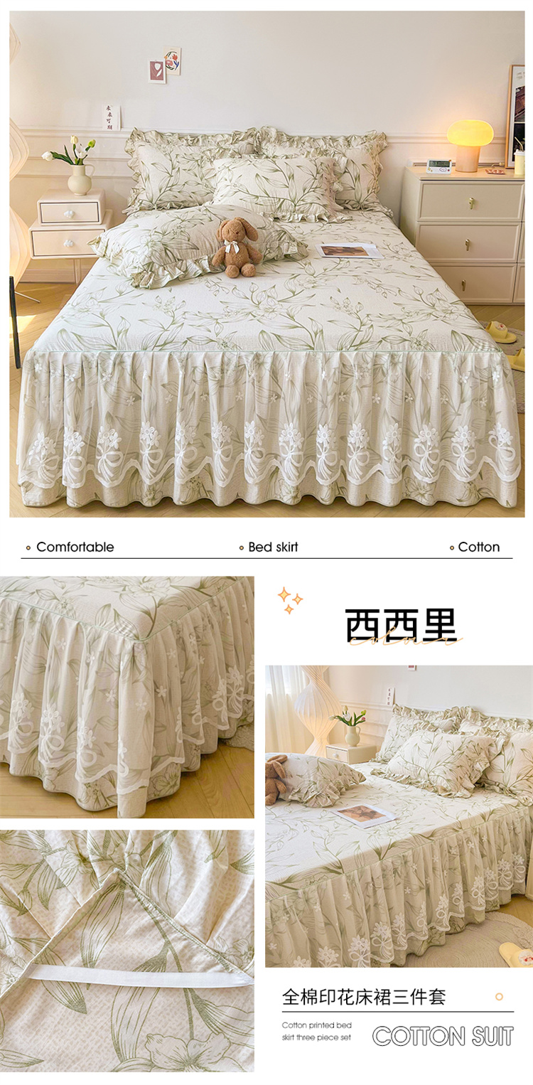 (总)宜凡家纺 2023新款全棉印花单层床裙三件套