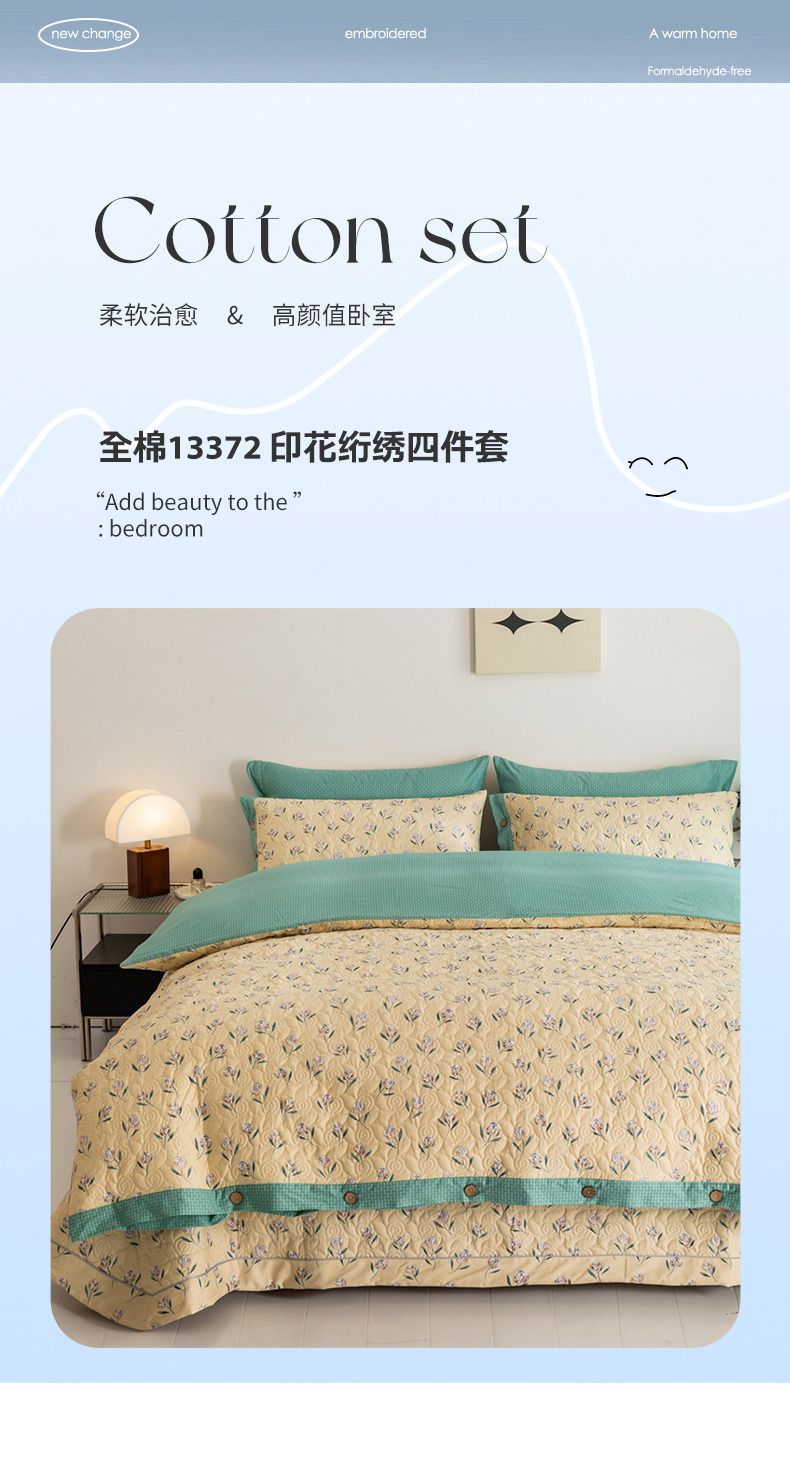 当前位置: 91家纺网 > 商品网购 > 床品套件 > 四件套 > 全棉普通四件套 > 优乐家纺 2023新款夹棉绗缝套件及单品系列-四件套 清风摇曳