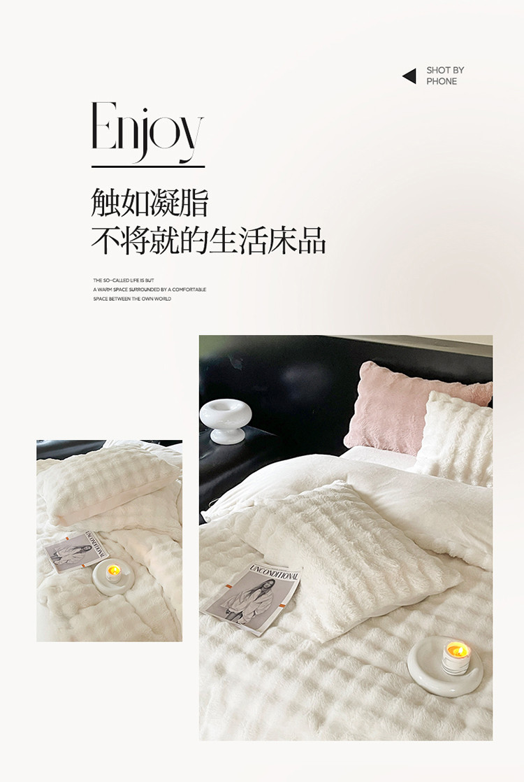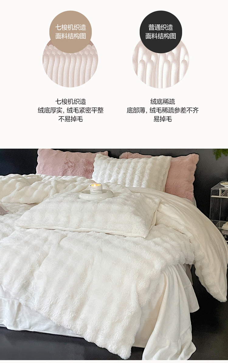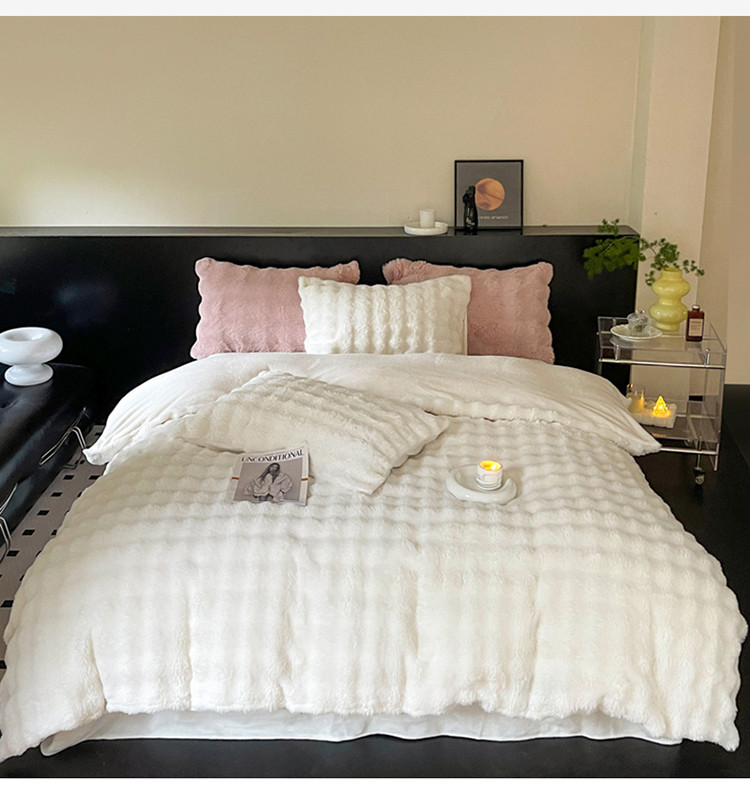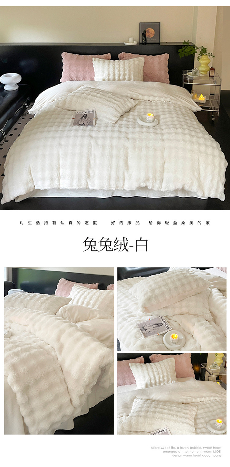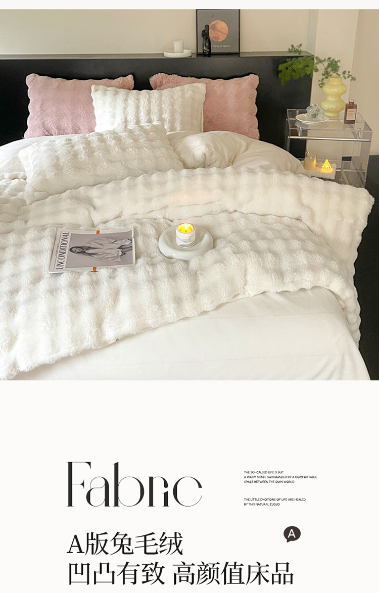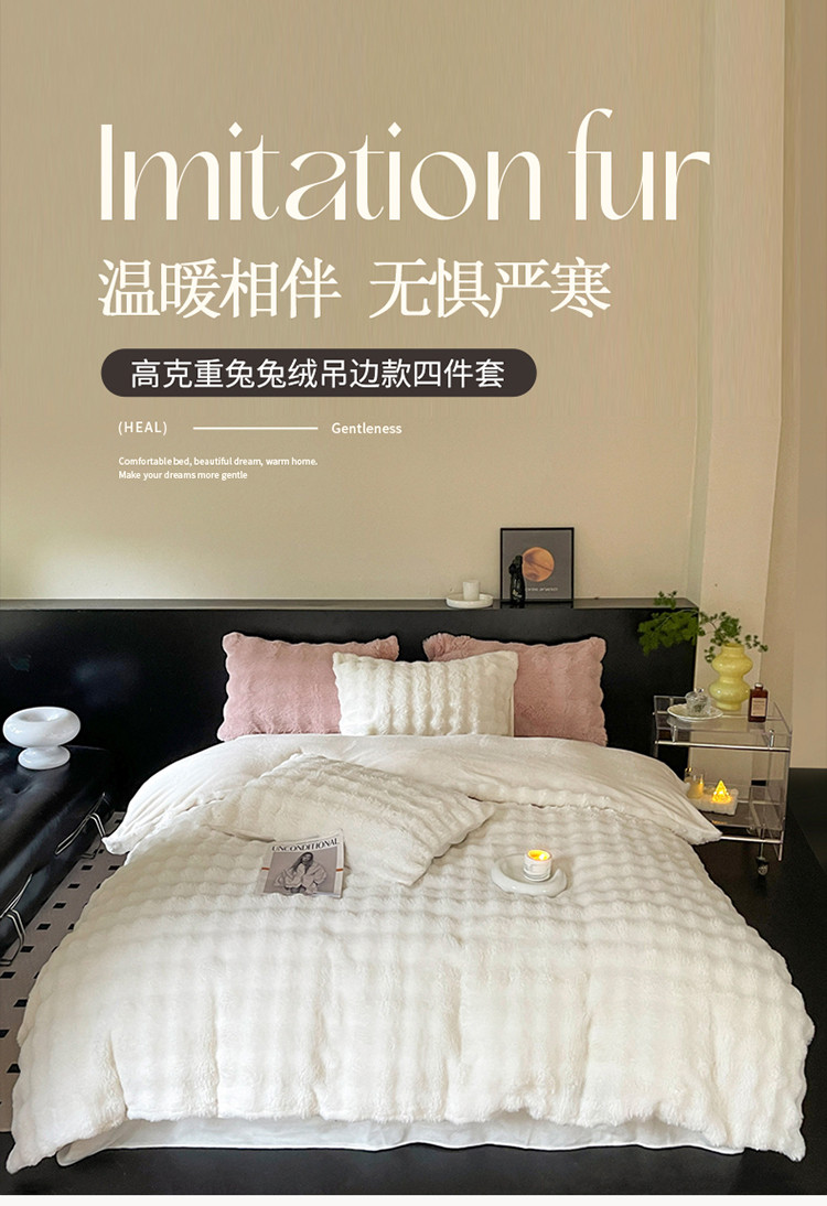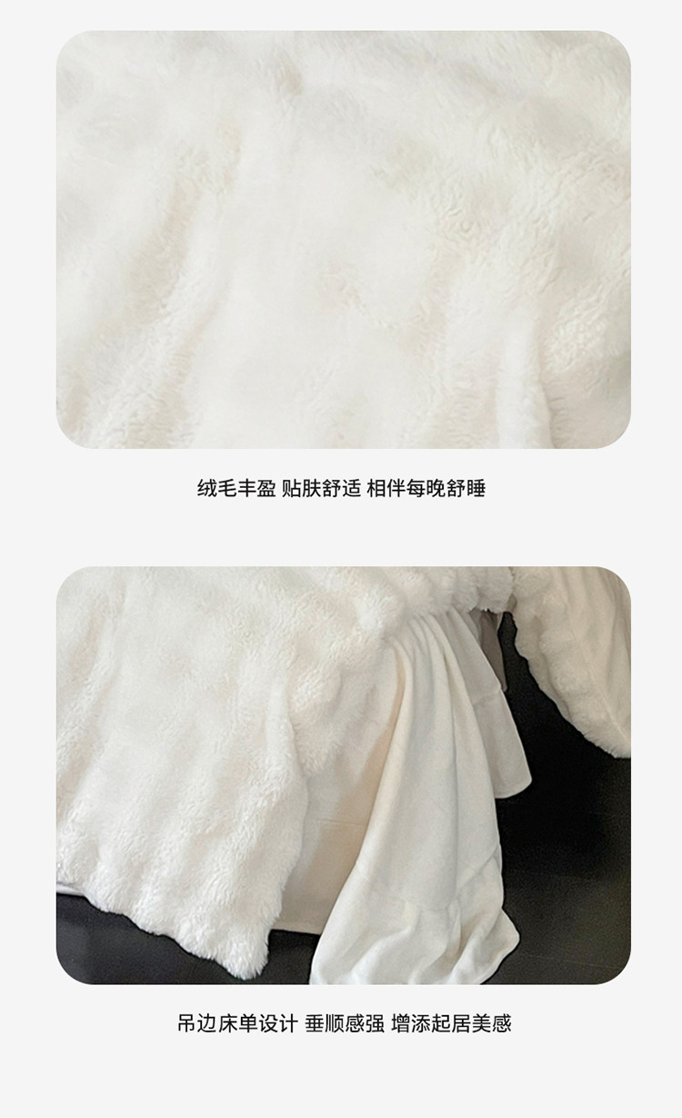 商品名称:乐童-2024新款高克重兔兔绒吊边款四件套 兔兔绒-白