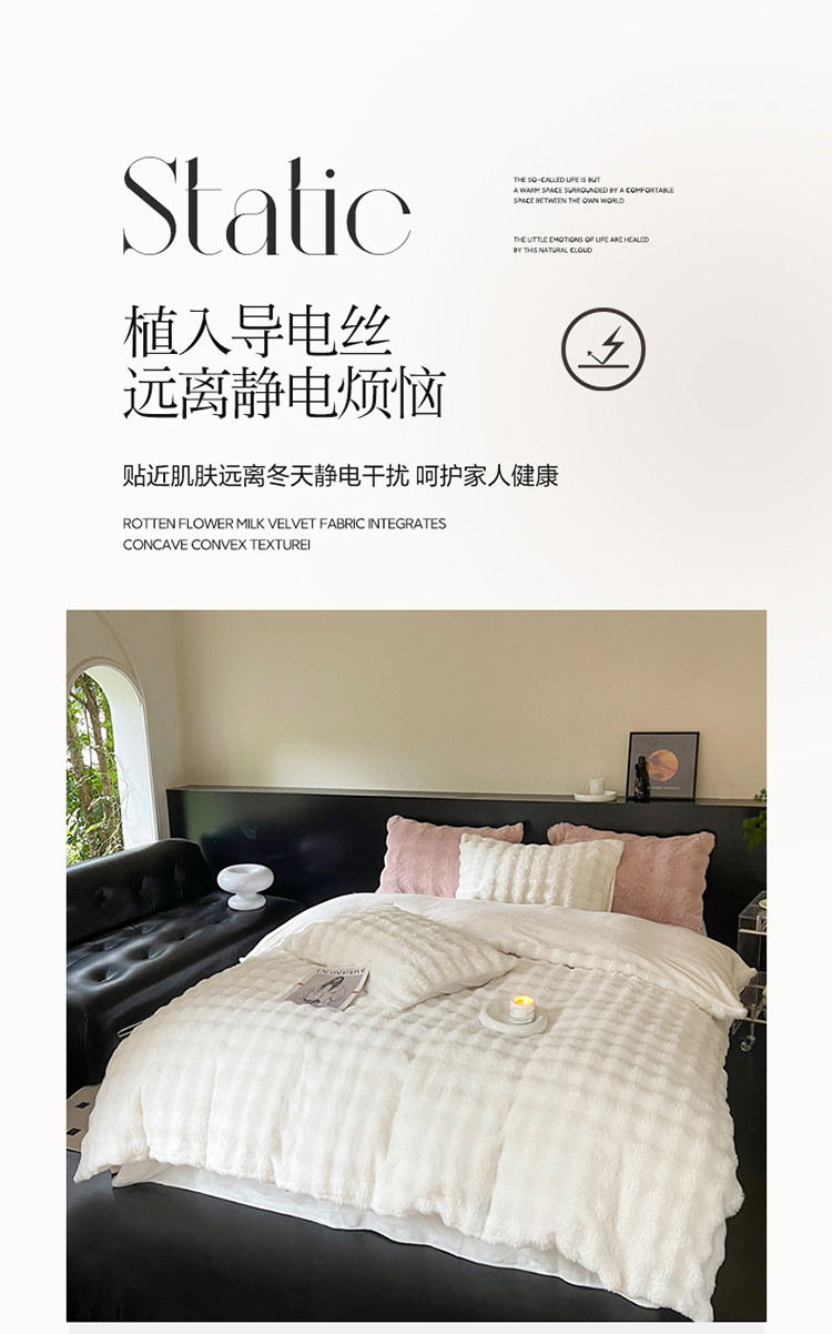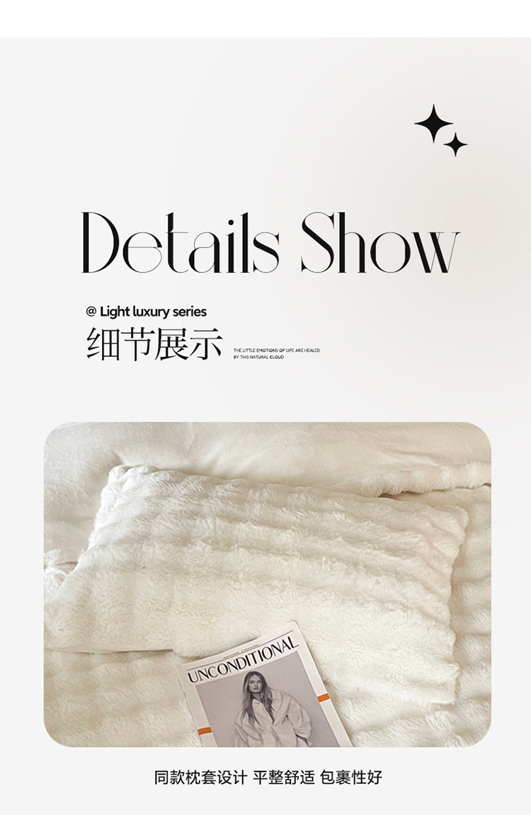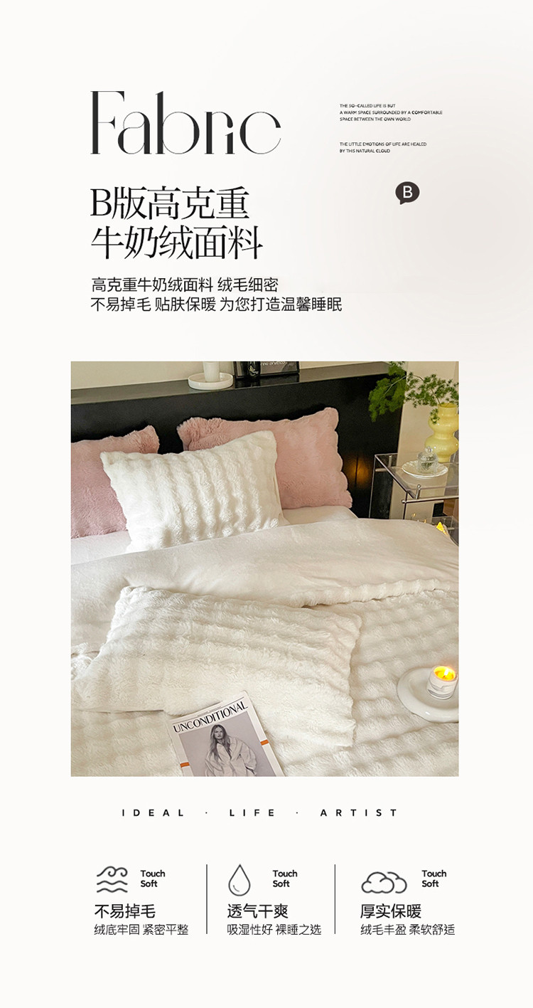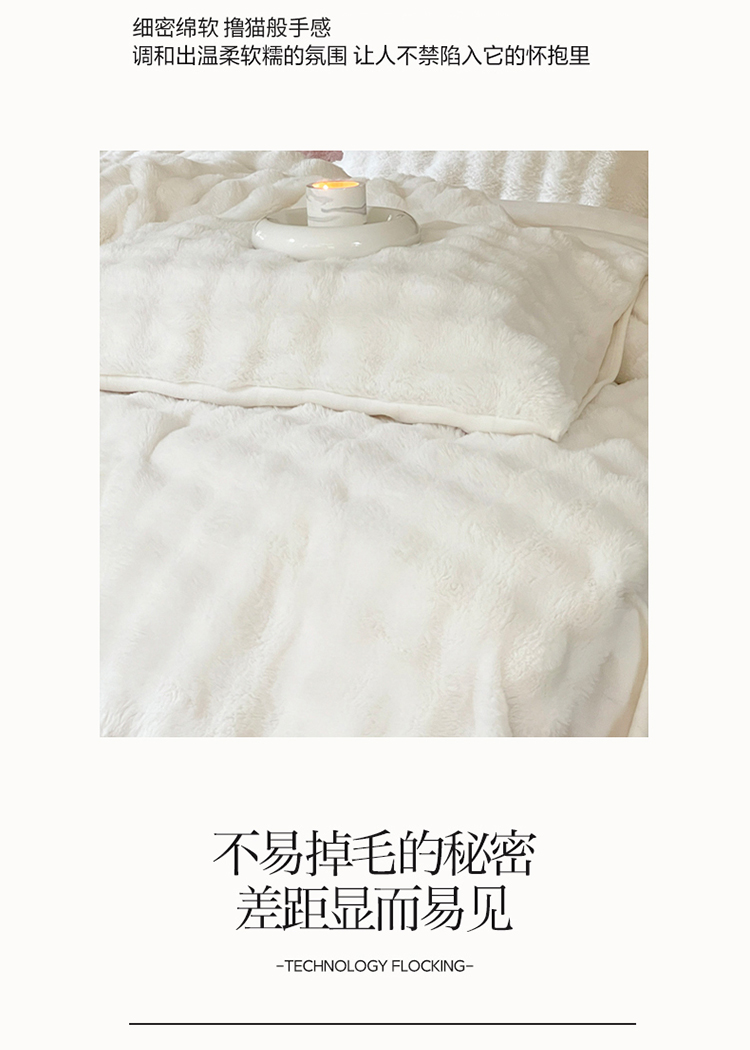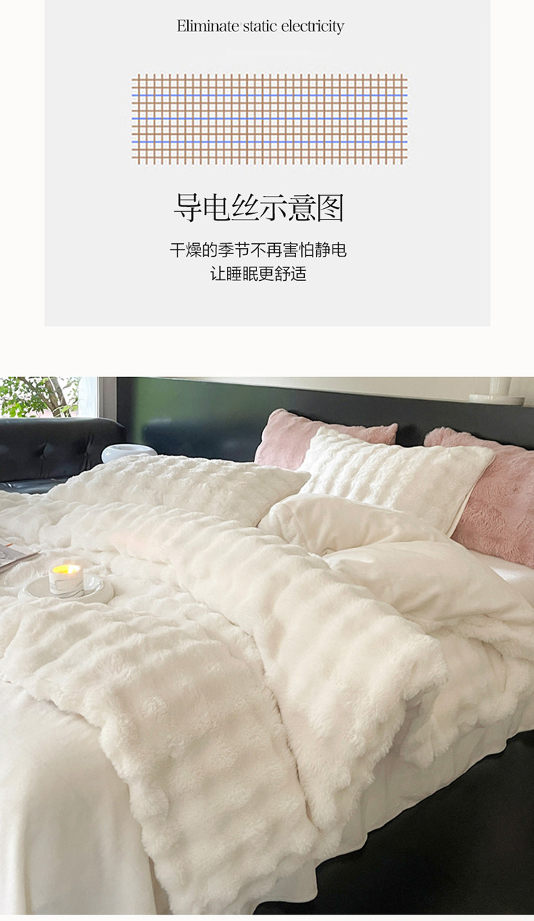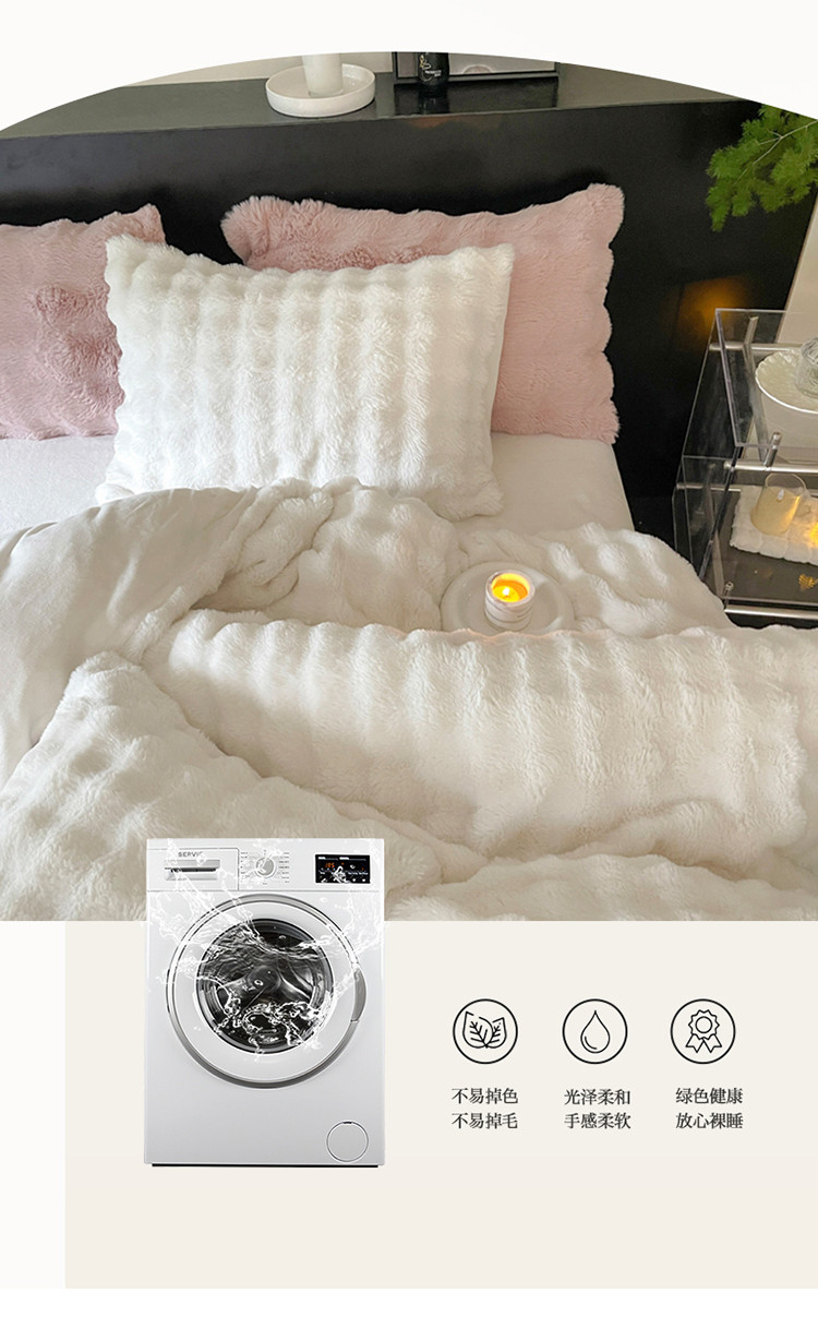 商品名称:乐童-2024新款高克重兔兔绒吊边款四件套 兔兔绒-白