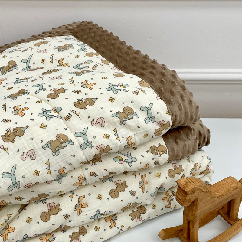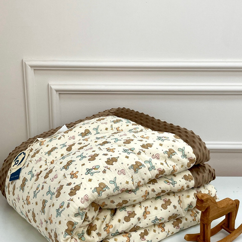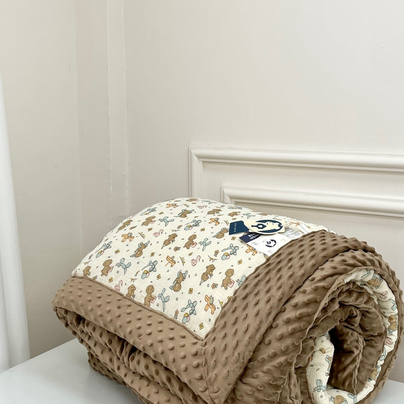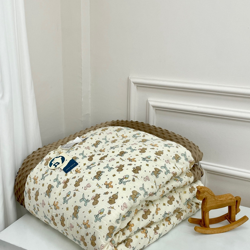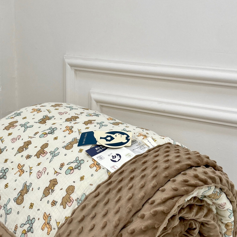 源启生活 2023新款双人全棉皱纱手工包边豆豆四季被 开心狗