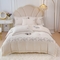 宜家坊2023新款A类牛奶绒雕花拼接刺绣款四件套-维多利亚(含买家秀) 奶芋白