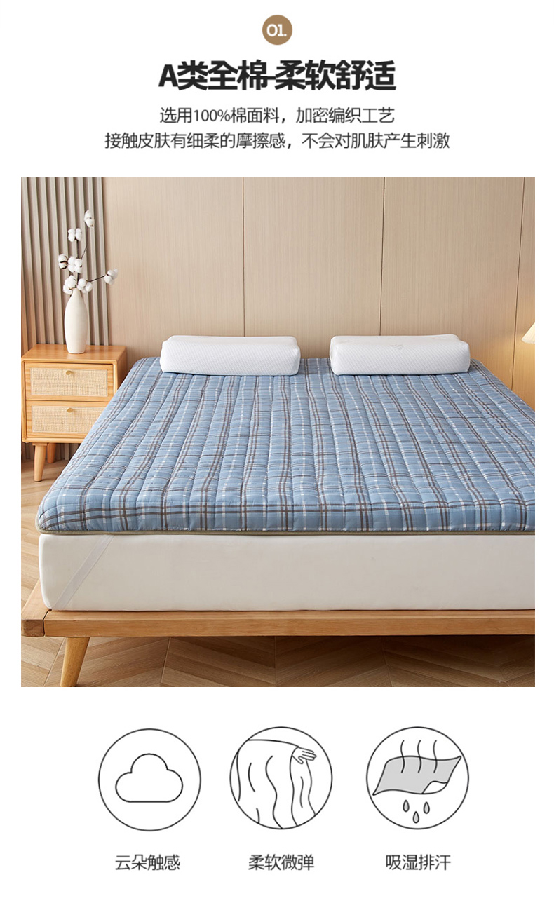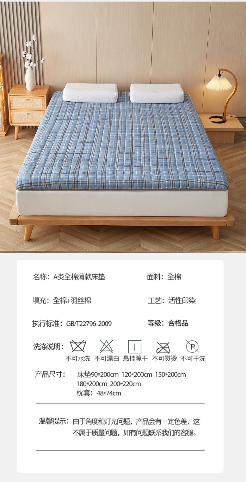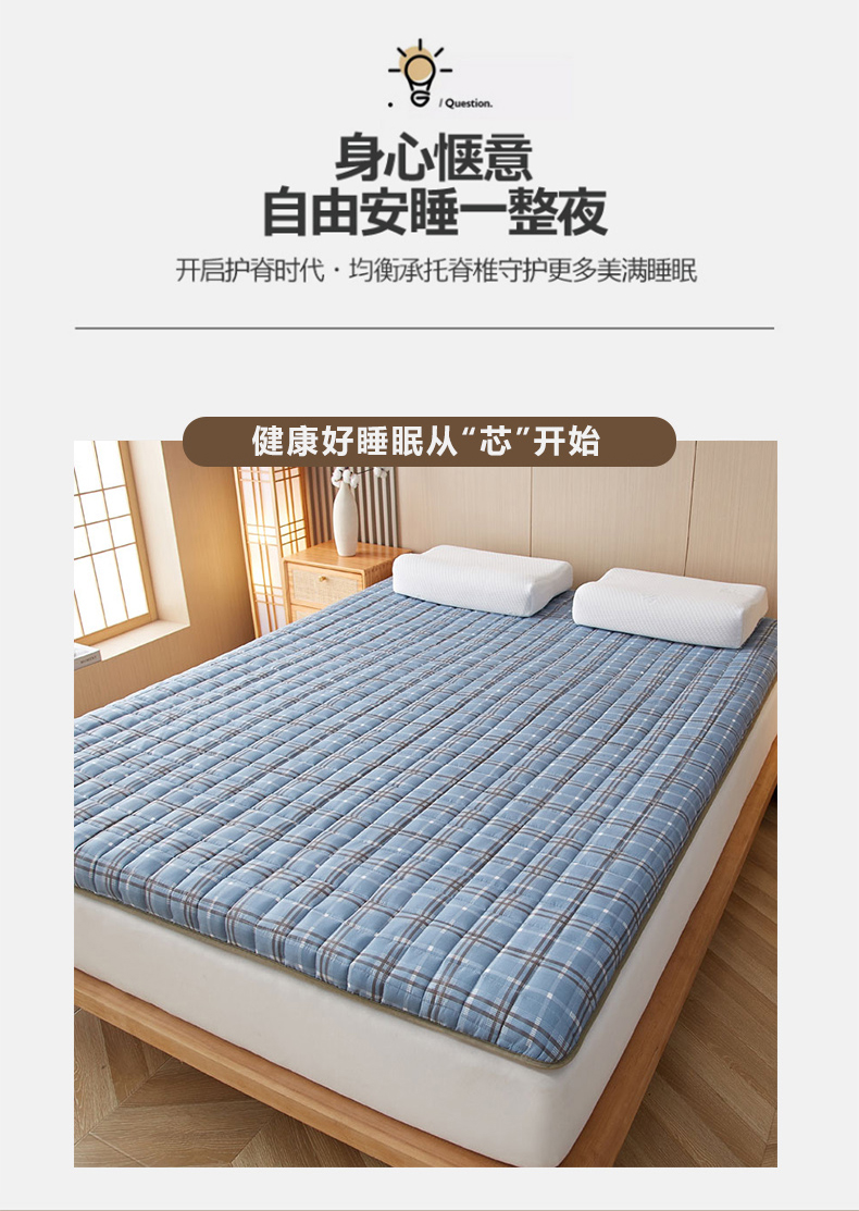 商品名称:暖季家纺 2025新款无印风棉花款成人床垫 简兮蓝