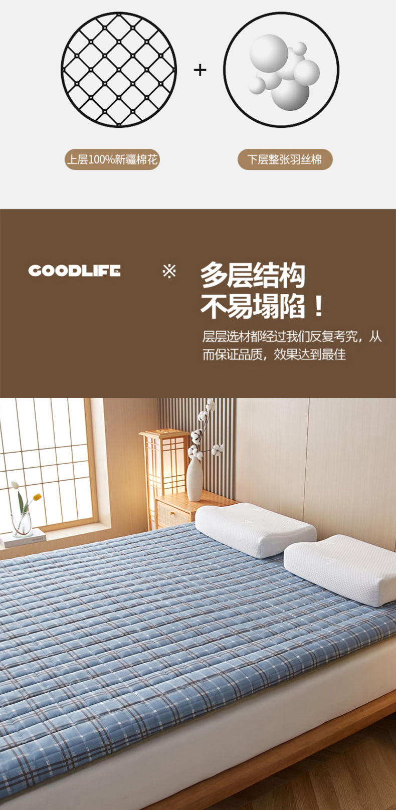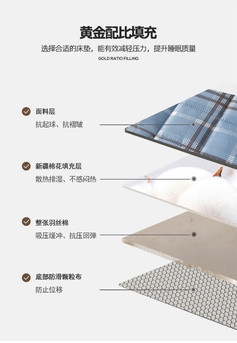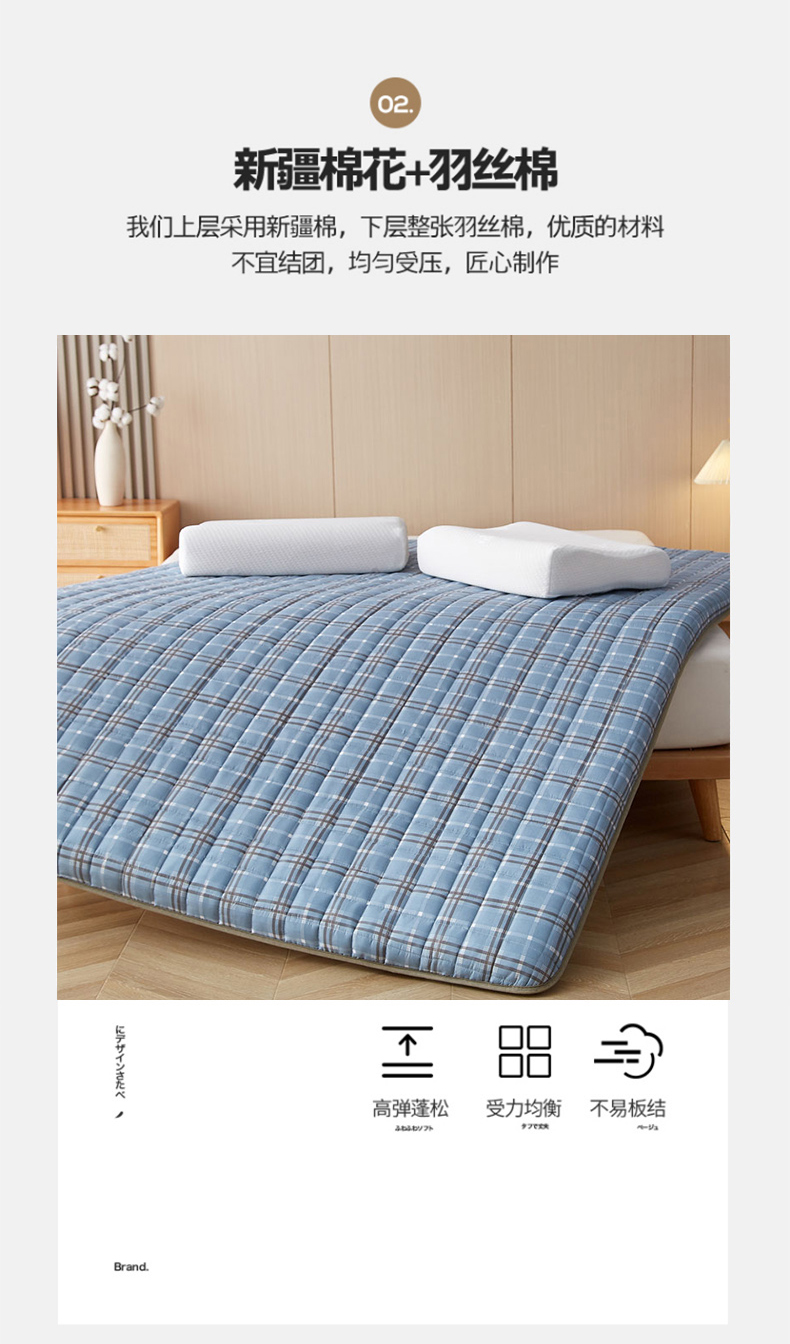 商品名称:暖季家纺 2025新款无印风棉花款成人床垫 简兮蓝