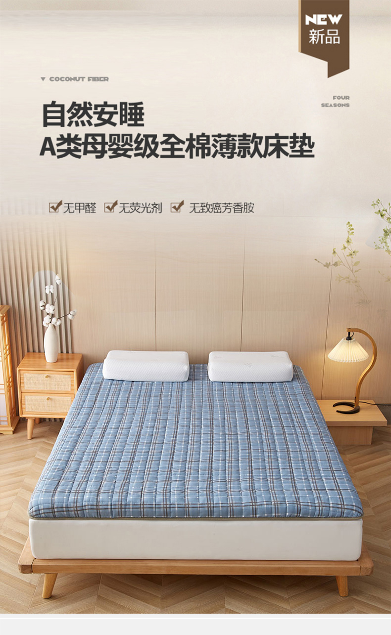 暖季家纺 2025新款无印风棉花款成人床垫 简兮蓝