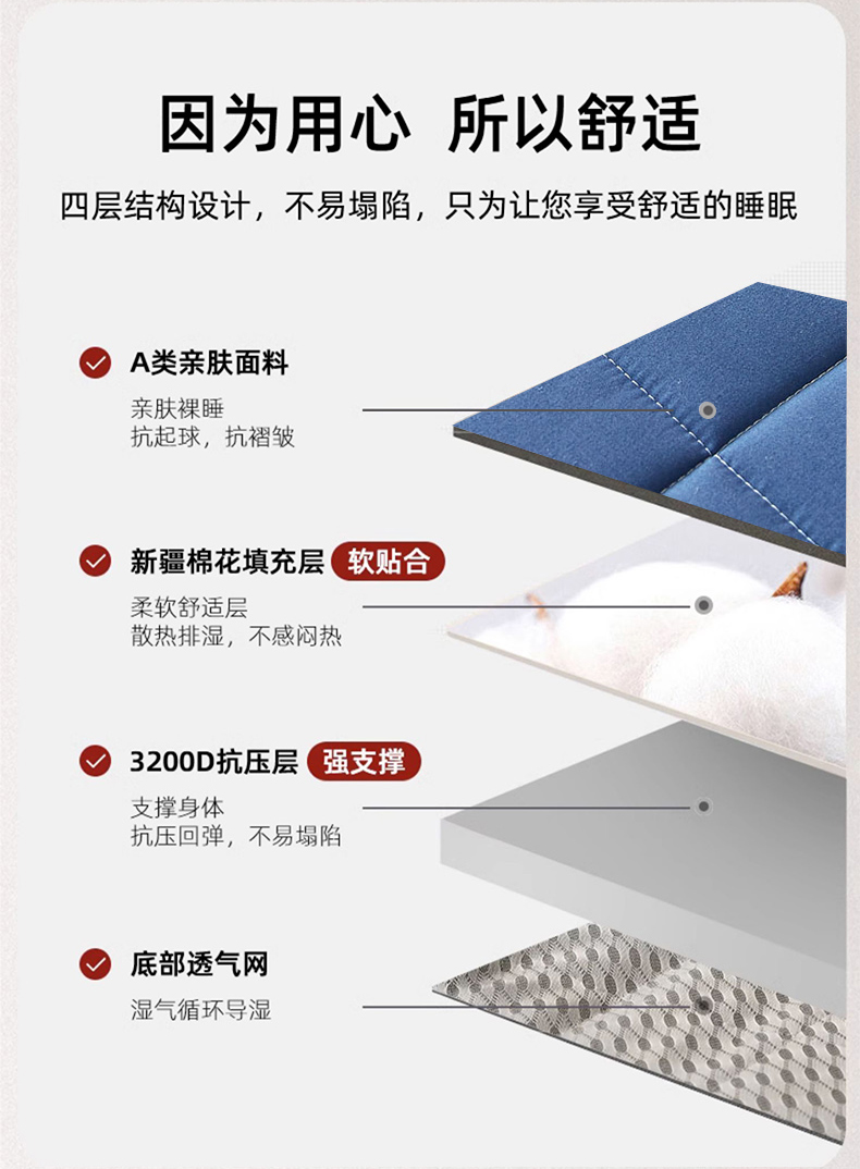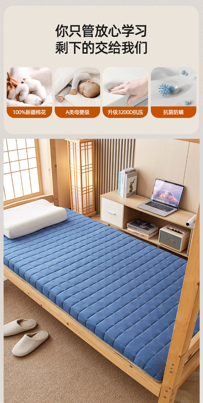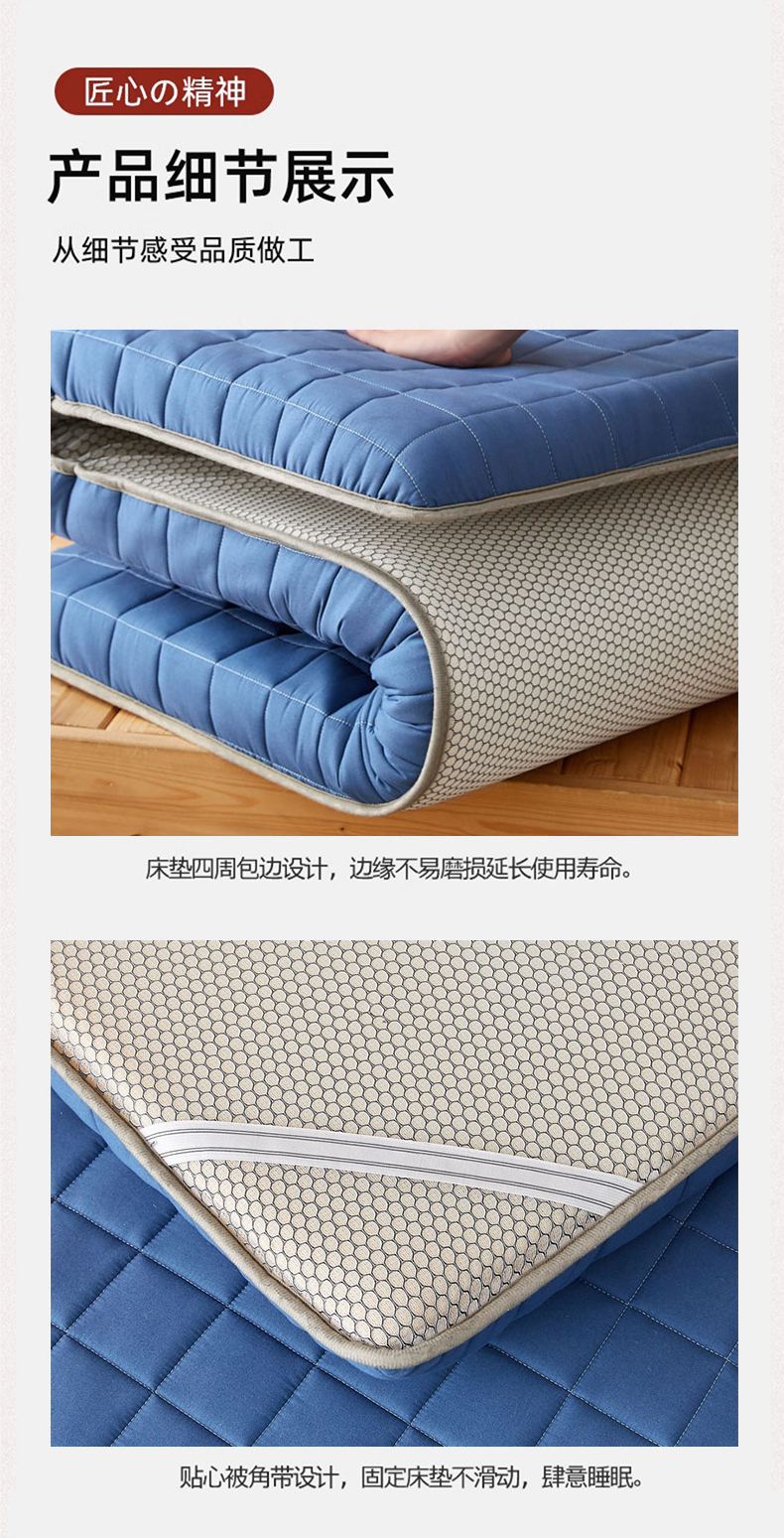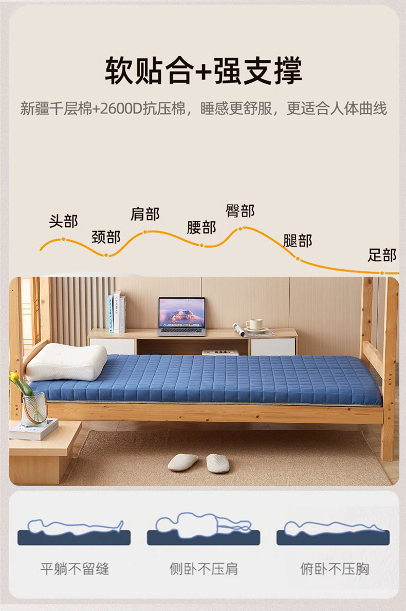 商品名称:暖季家纺 2025新款无印风棉花款学生床垫 深蓝