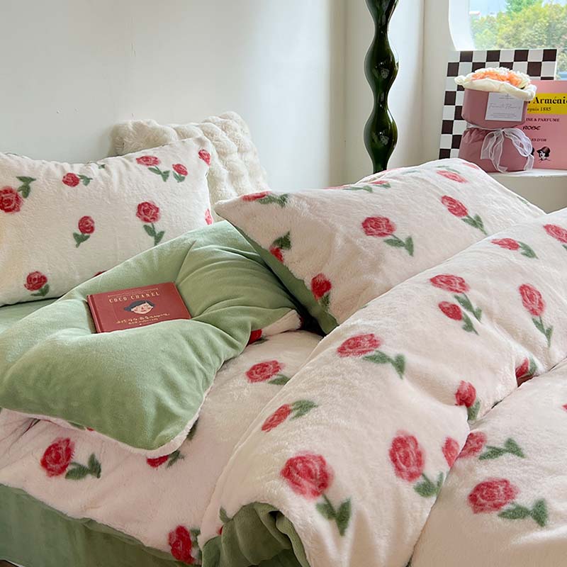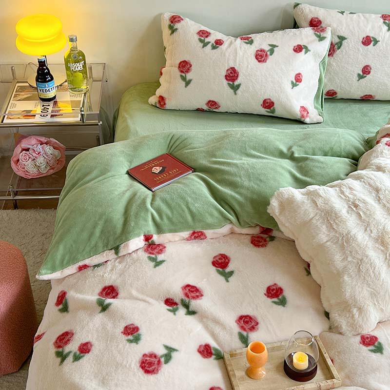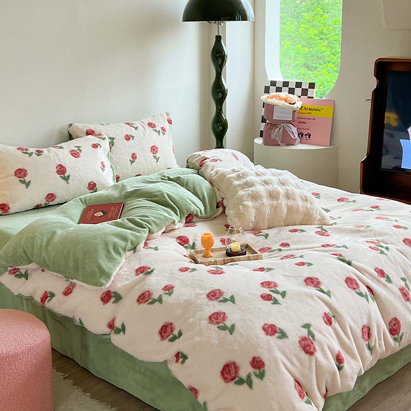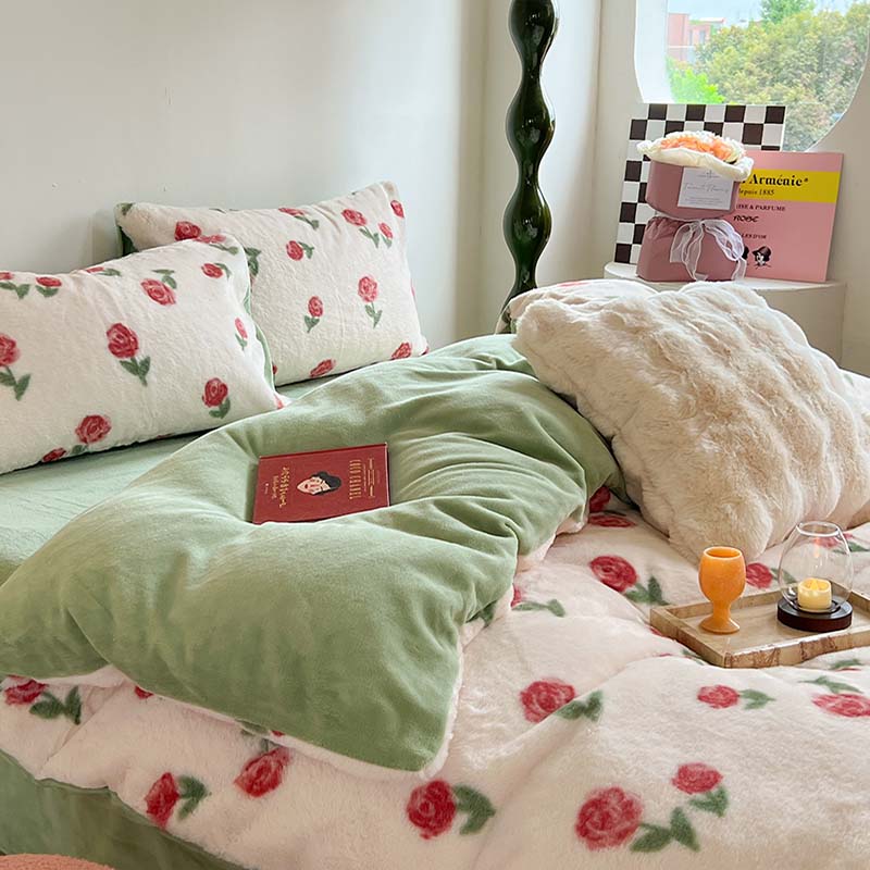柚子家纺 2023新款高克重舒适保暖兔绒印花四件套 繁花
