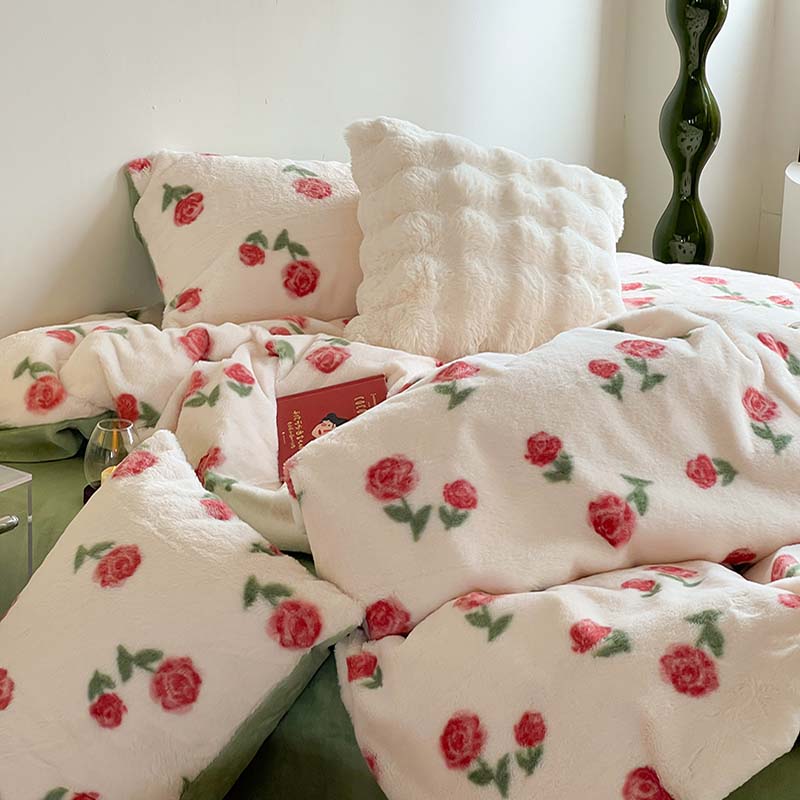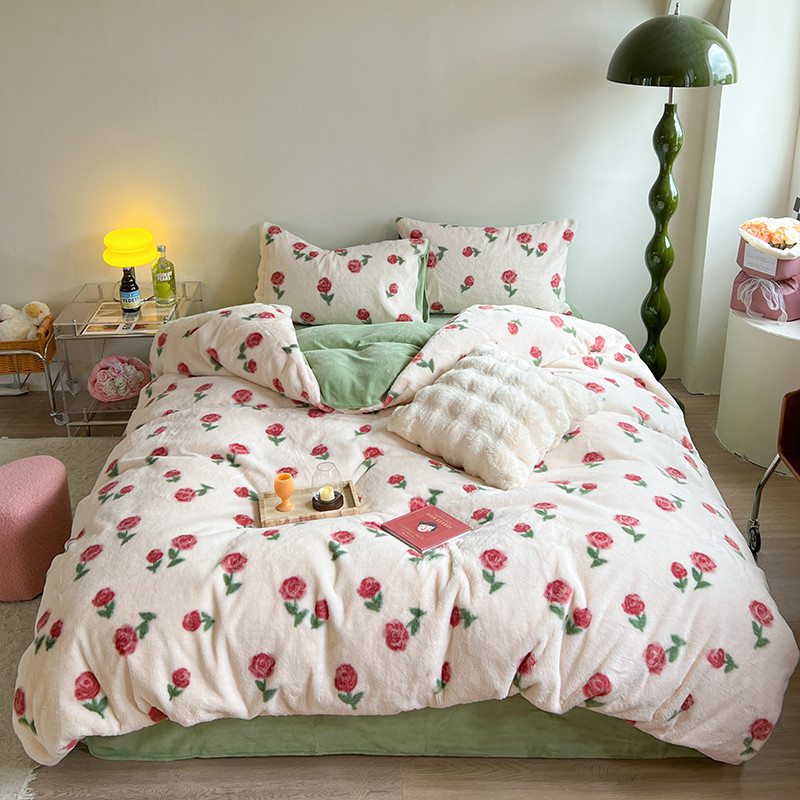 商品名称:柚子家纺 2023新款高克重舒适保暖兔绒印花四件套 繁花