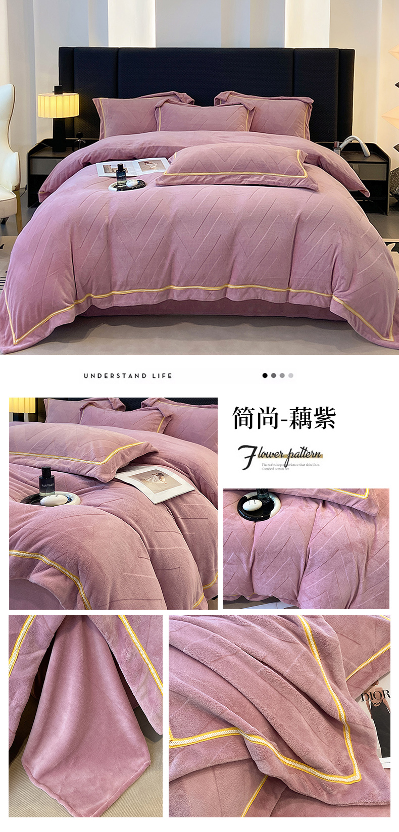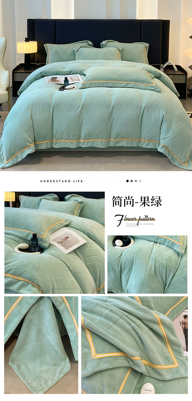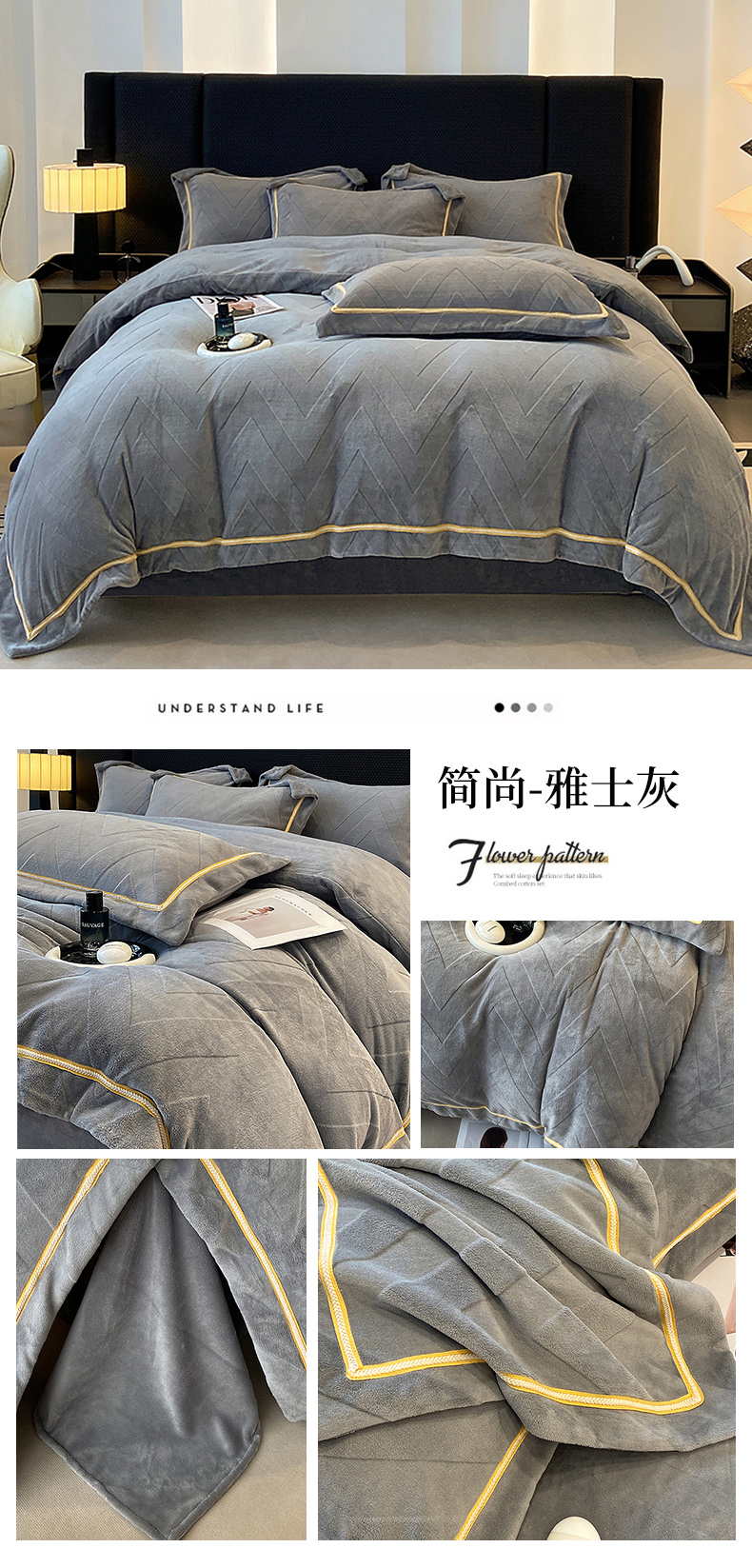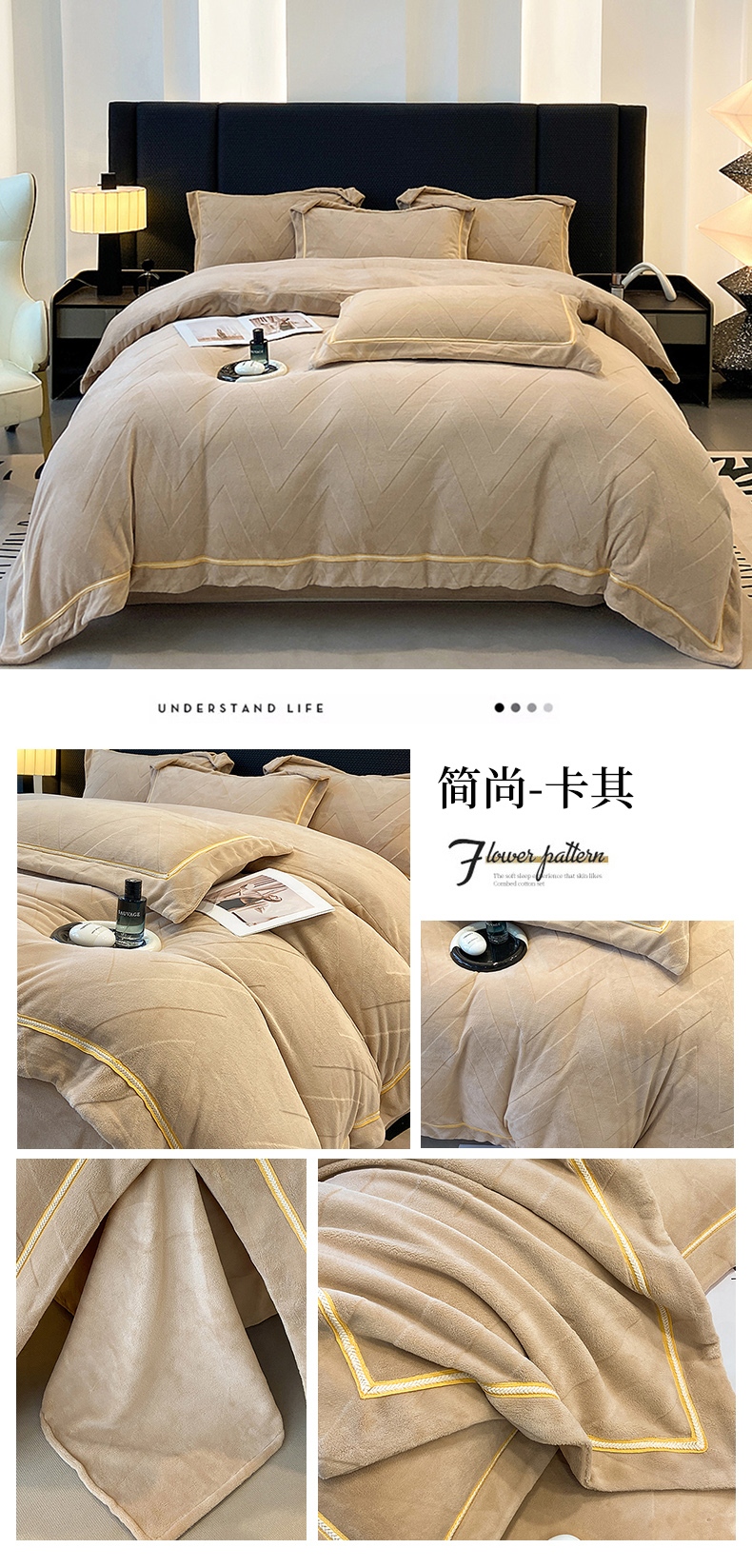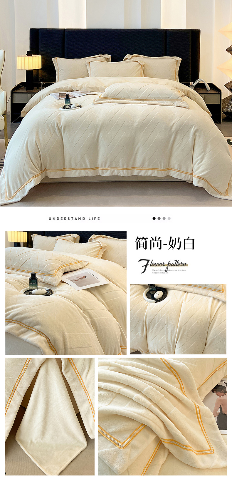 商品名称:(总)家居1号 2024新款冬季高端剪花230克全消光工艺牛奶绒宝宝绒珊瑚绒婴儿绒刺绣轻奢四件套床单被套-简尚