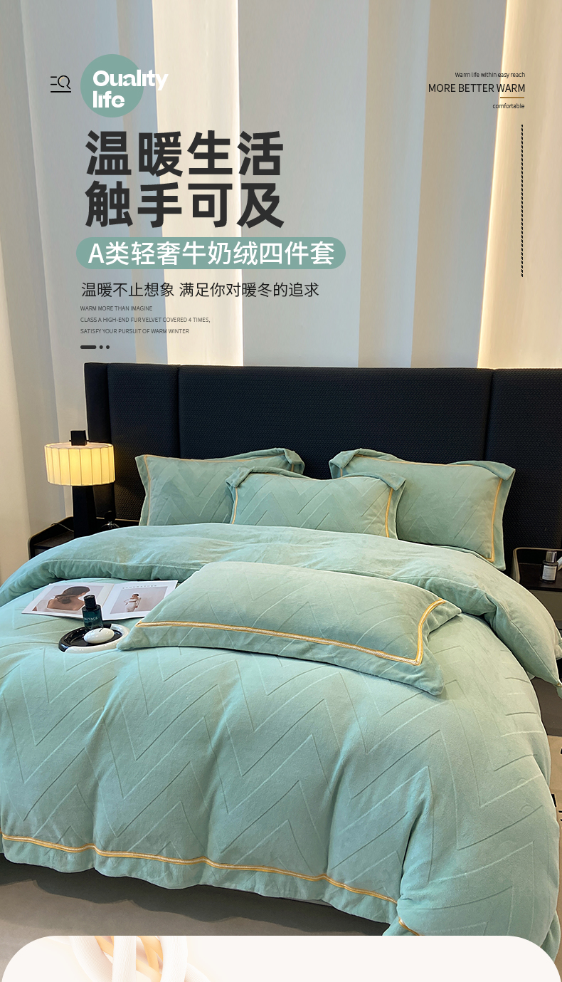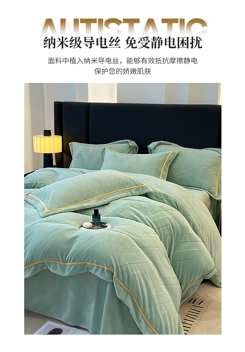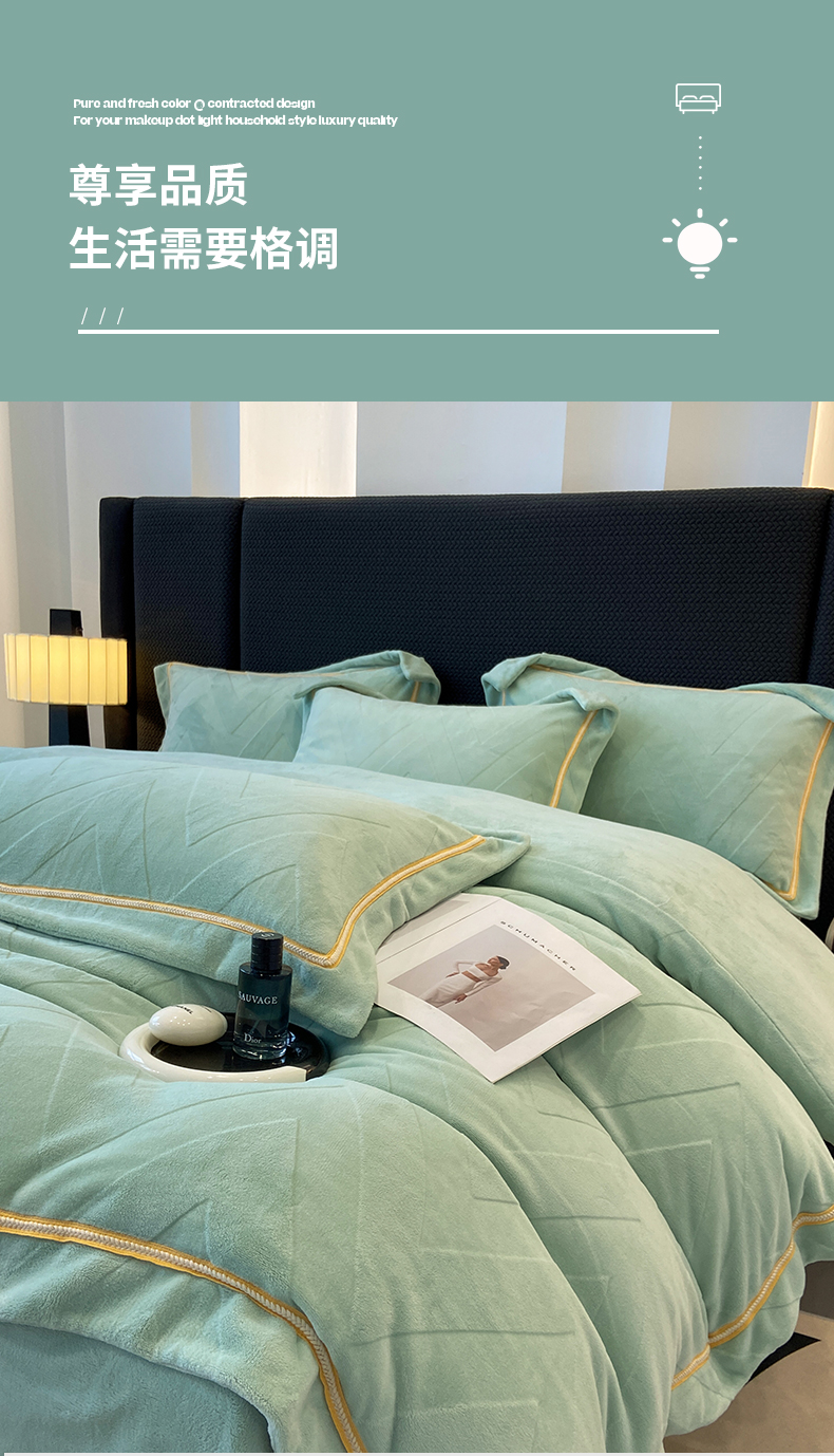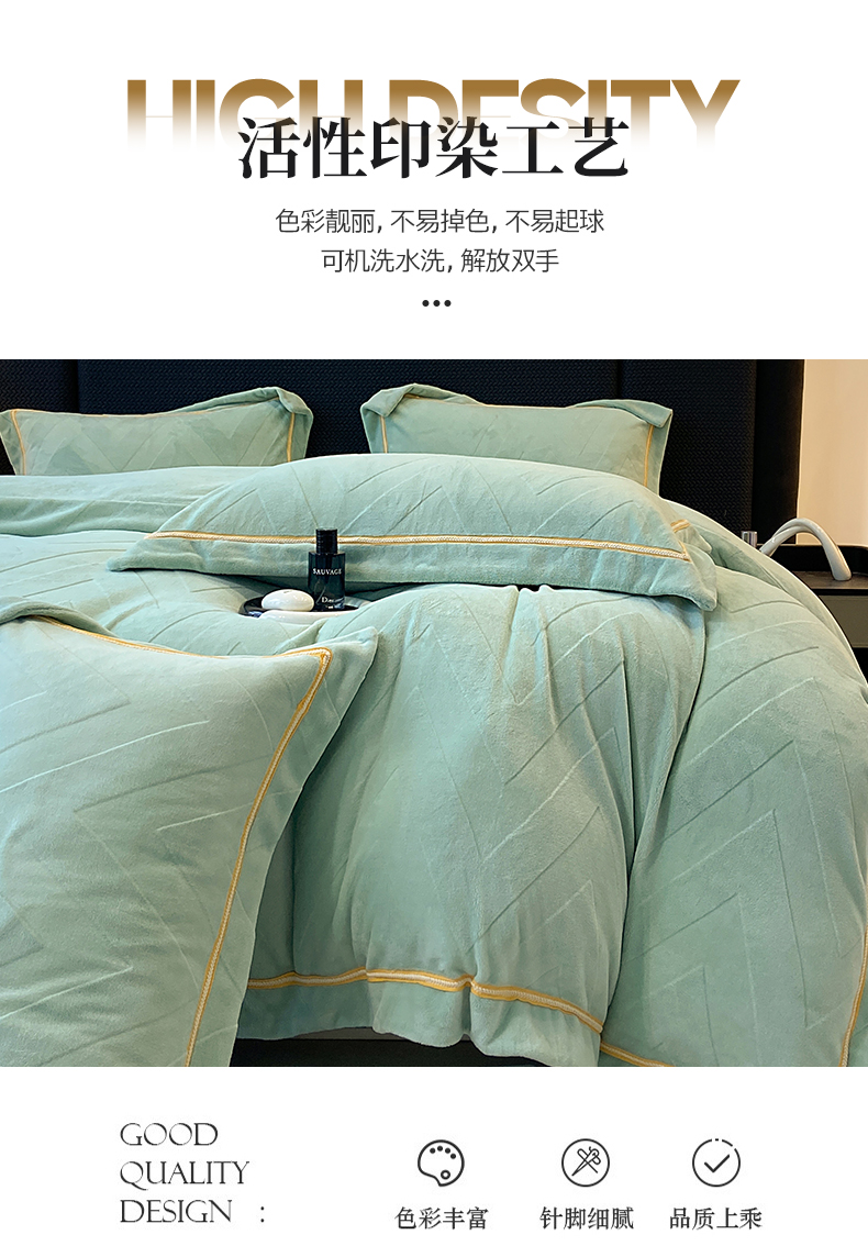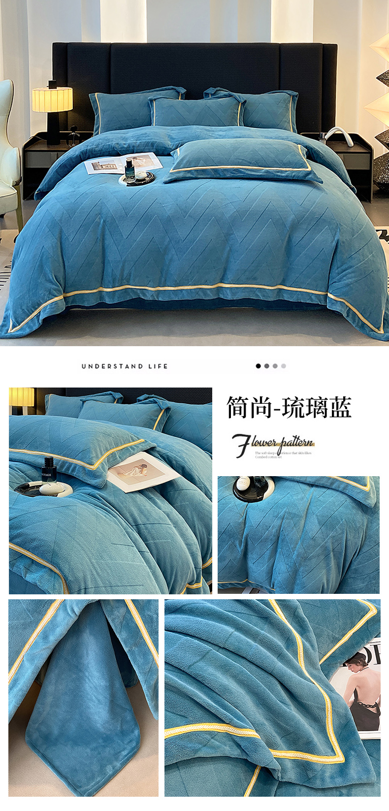 商品名称:(总)家居1号 2024新款冬季高端剪花230克全消光工艺牛奶绒宝宝绒珊瑚绒婴儿绒刺绣轻奢四件套床单被套-简尚