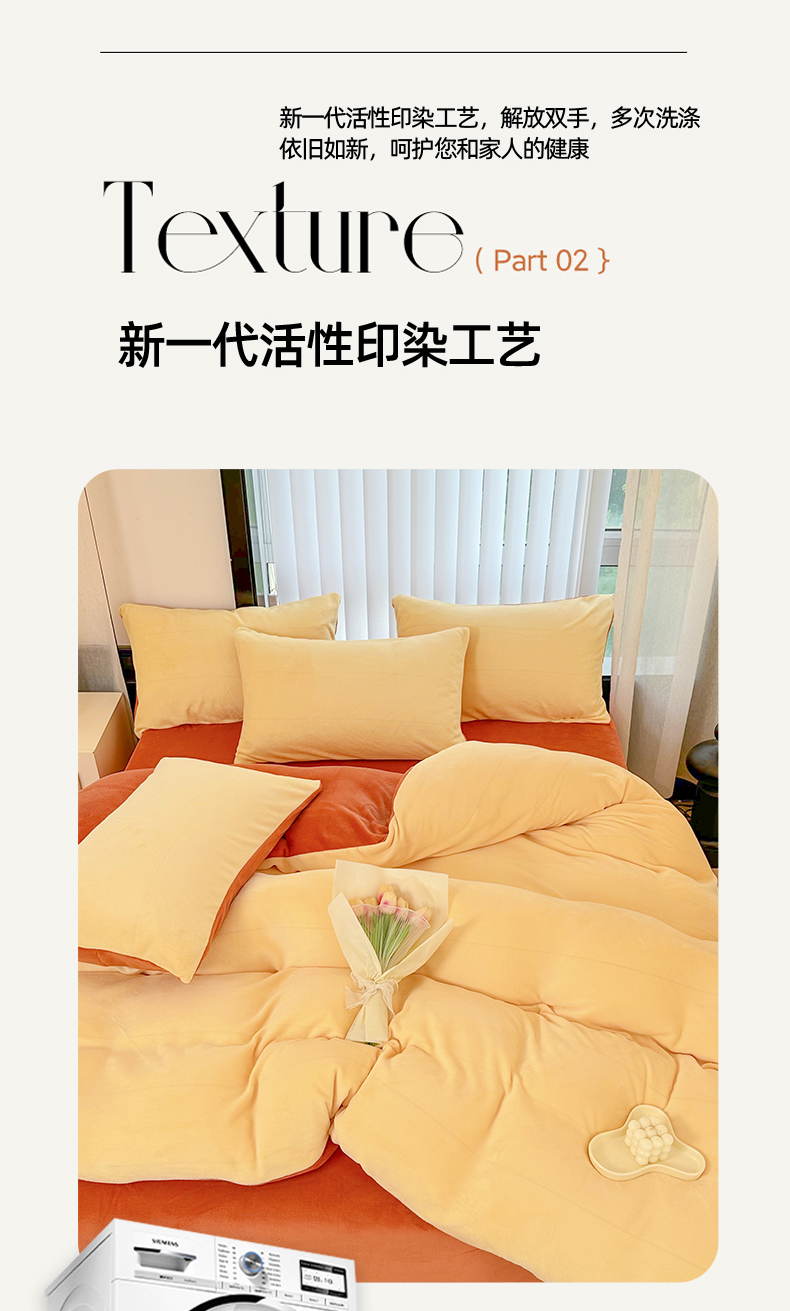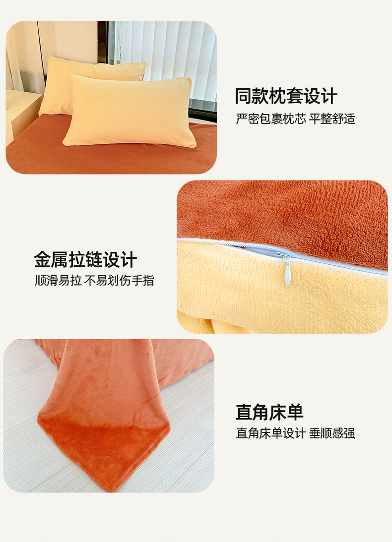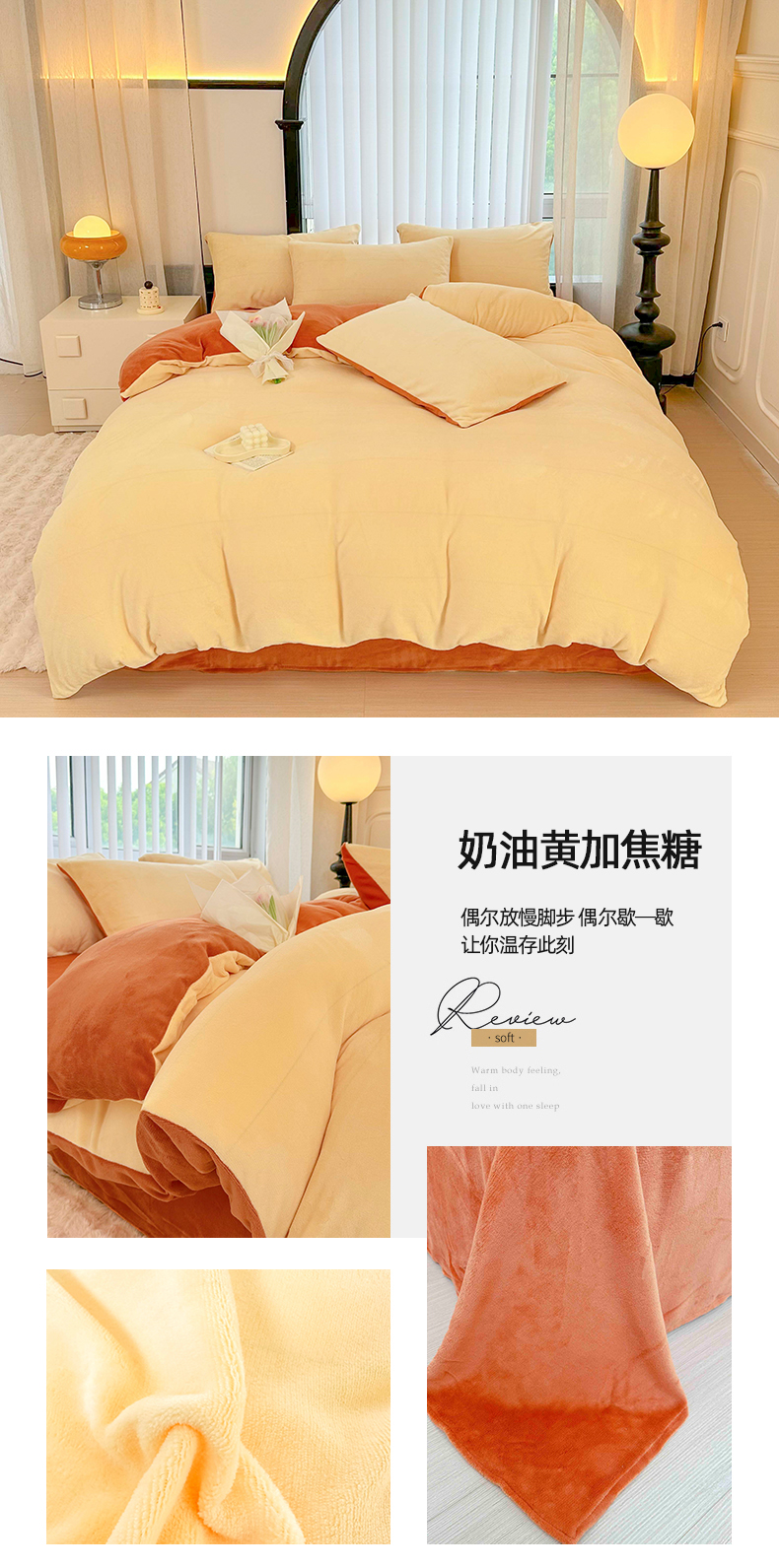 商品名称:迷仙巢家纺 2023新款双拼牛奶绒四件套 奶油黄加焦糖