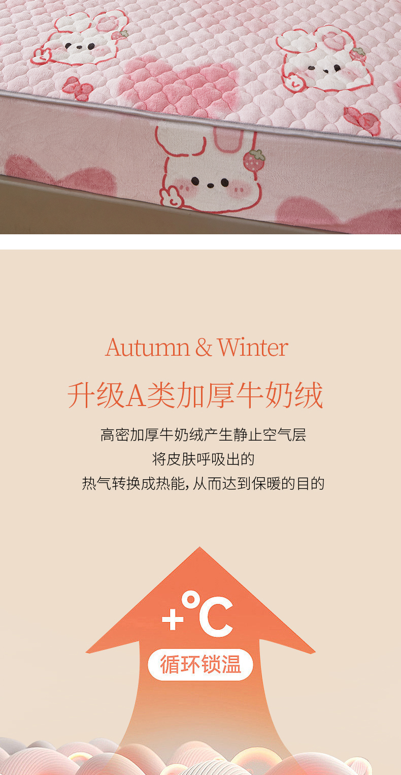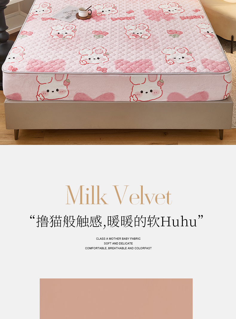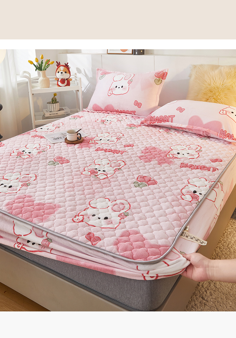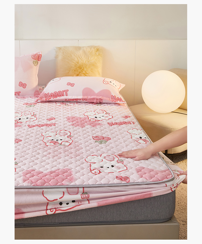 商品名称:米柳家纺 2023直播爆款牛奶绒夹棉床笠 可爱兔