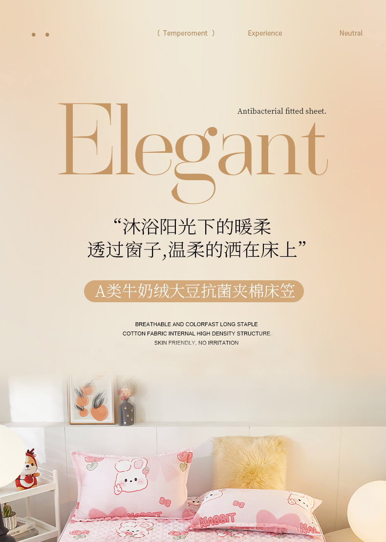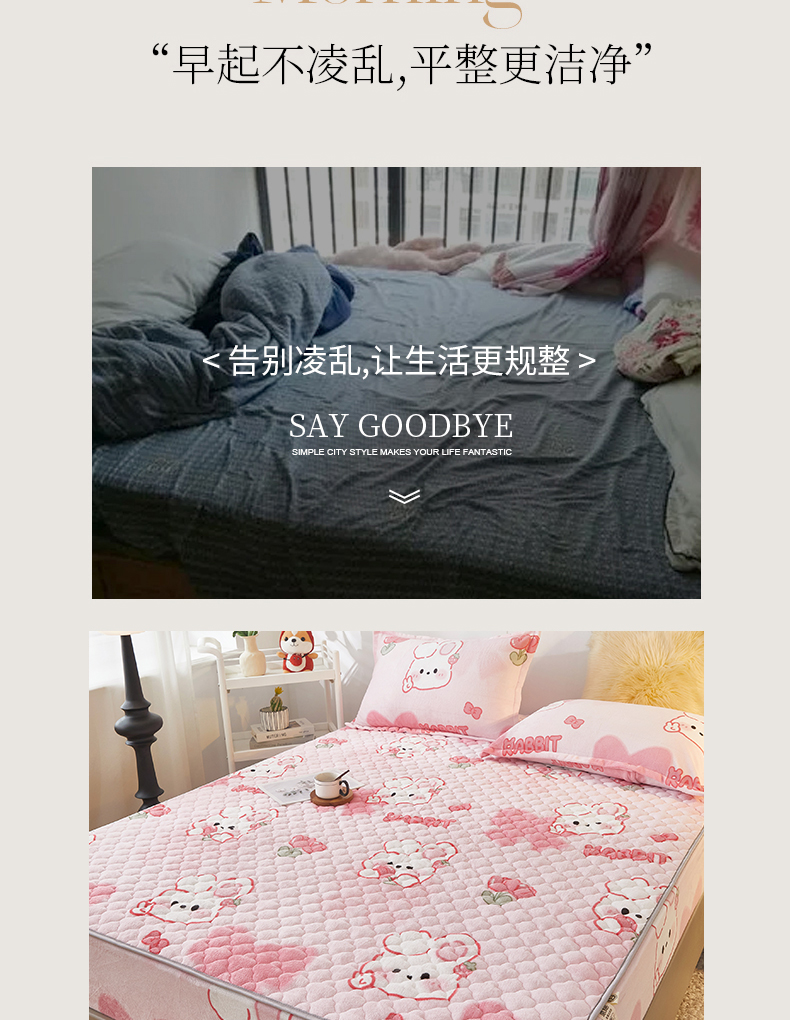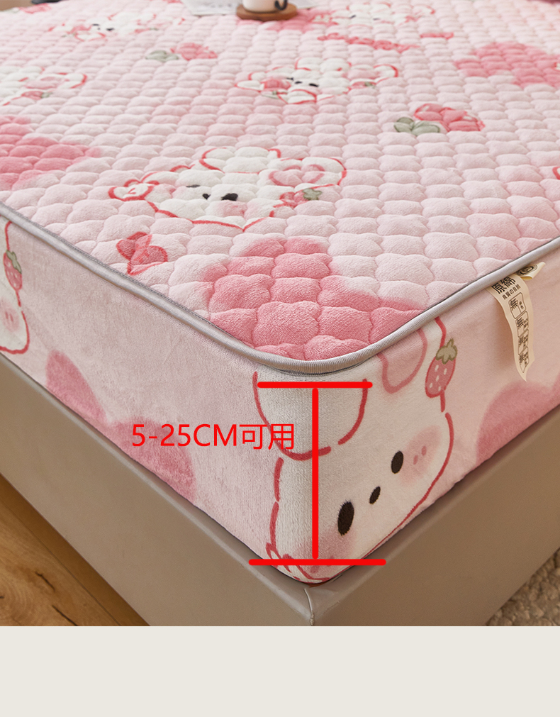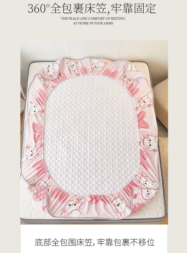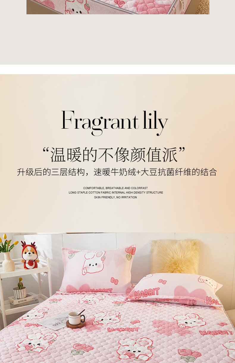 商品名称:米柳家纺 2023直播爆款牛奶绒夹棉床笠 可爱兔