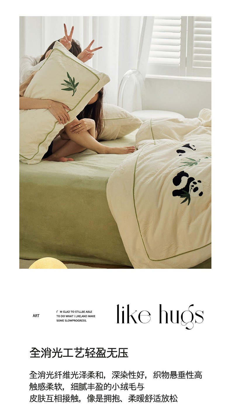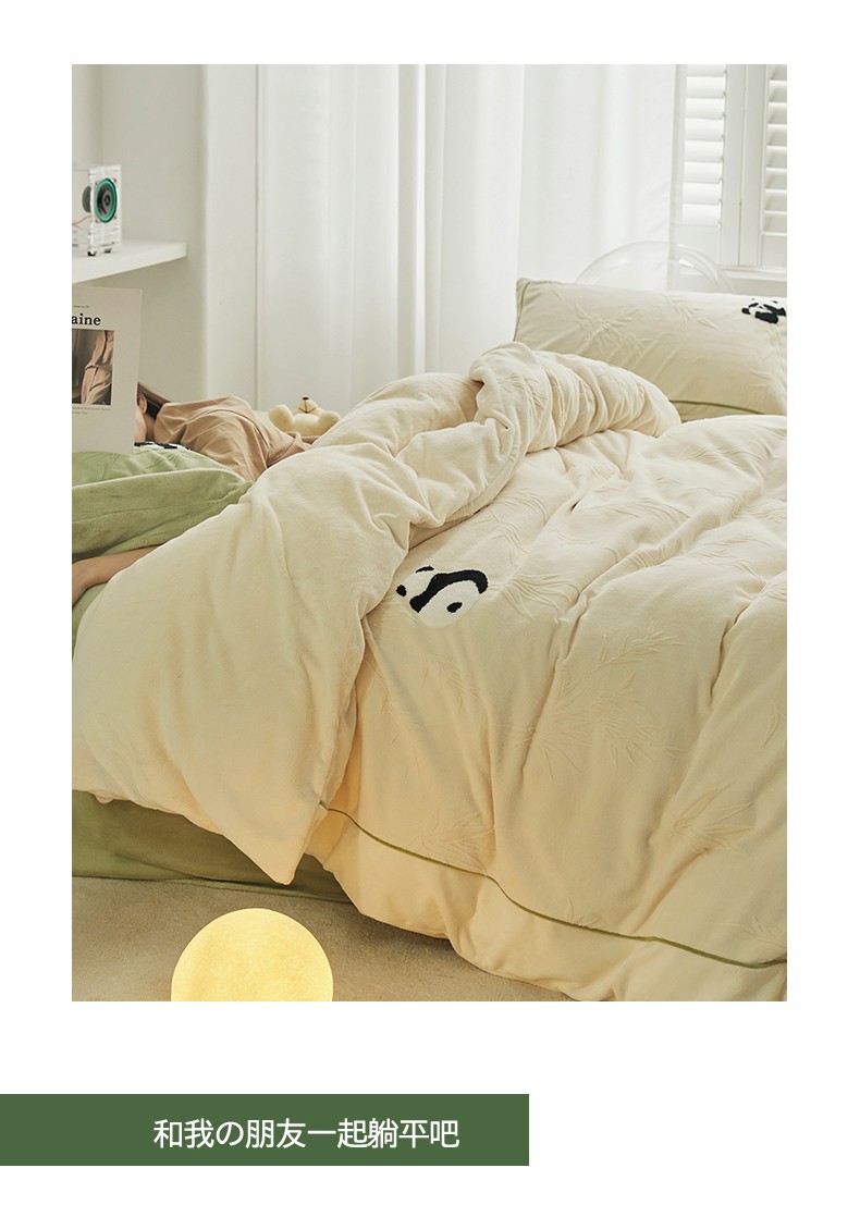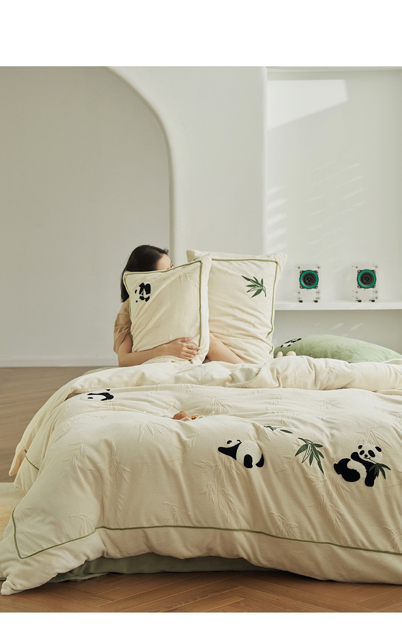 当前位置: 91家纺网 > 商品网购 > 床品套件 > 四件套 > 牛奶绒四件套 > 安莱生活2023专版锦芙牛奶绒毛巾绣四件套-情绪熊猫款-清新自然光风格 情绪熊猫-白竹