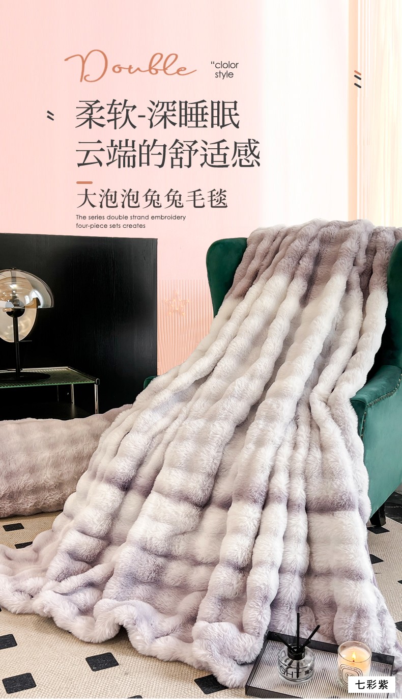 商品名称:金爱家 2023新款七彩大泡泡兔兔绒兔毛绒毛毯 七彩紫