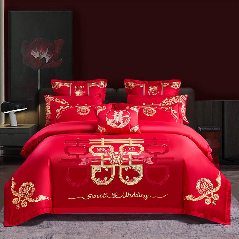 当前位置: 91家纺网 > 商品网购 > 床品套件 > 四件套 > 婚庆四件套 > 振翼 2025新款40s全棉丝光喷气婚庆四件套多件套 喜上加喜
