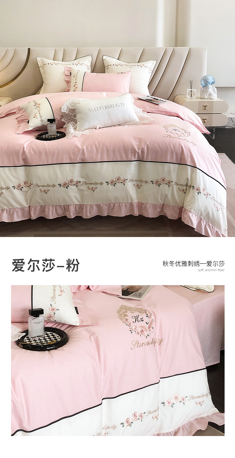 商品名称:卡姿家纺 2023新款秋冬优雅刺绣—爱尔莎 爱尔莎-粉