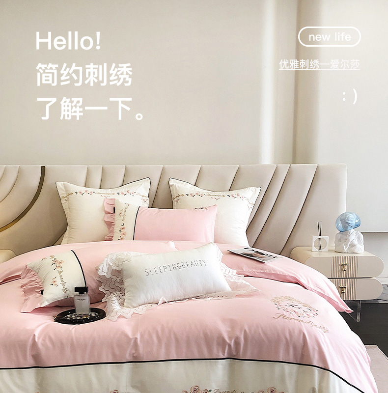卡姿家纺 2023新款秋冬优雅刺绣—爱尔莎 爱尔莎-粉