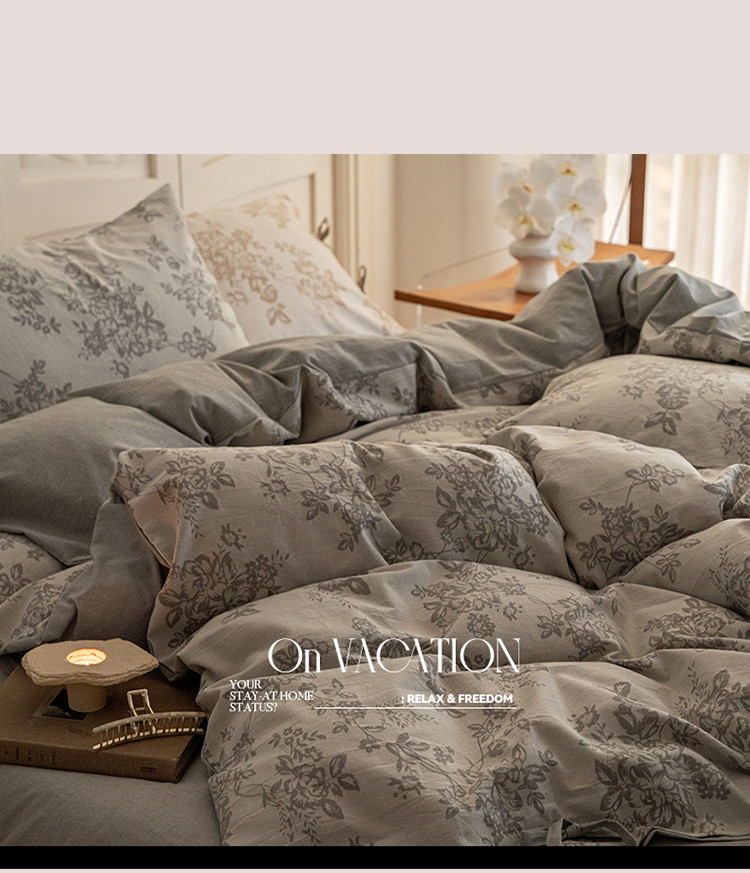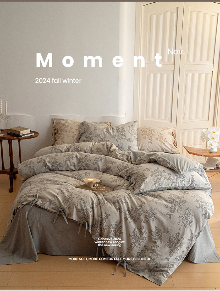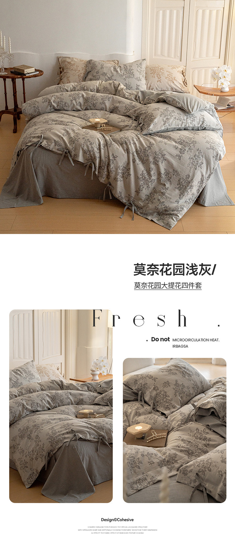 商品名称:华超针织 2024新款莫奈花园大提花四件套 莫奈花园浅灰