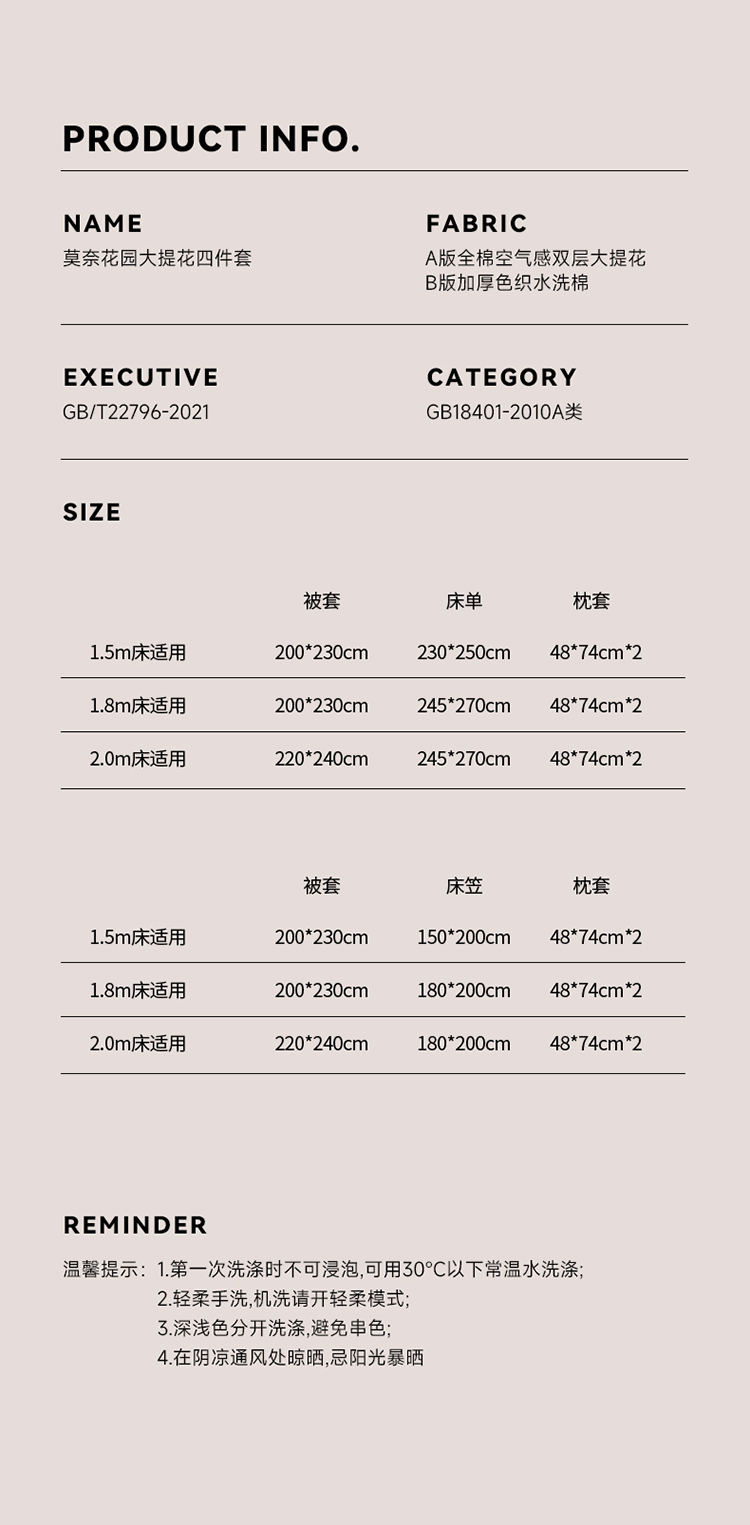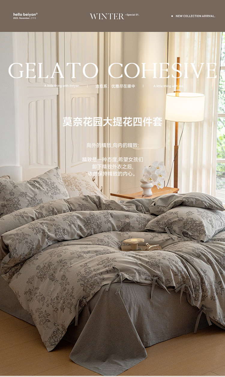 (总) 华超针织 2022新款60支肌理浮雕亲柔纱四件套,布莱垦棕绑带款,可可淡奶绑带款,摩洛哥灰绑带款,塞纳河咖绑带款,布莱垦棕纽扣款,可可淡奶纽扣款,摩洛哥灰纽扣款,塞纳河咖纽扣款