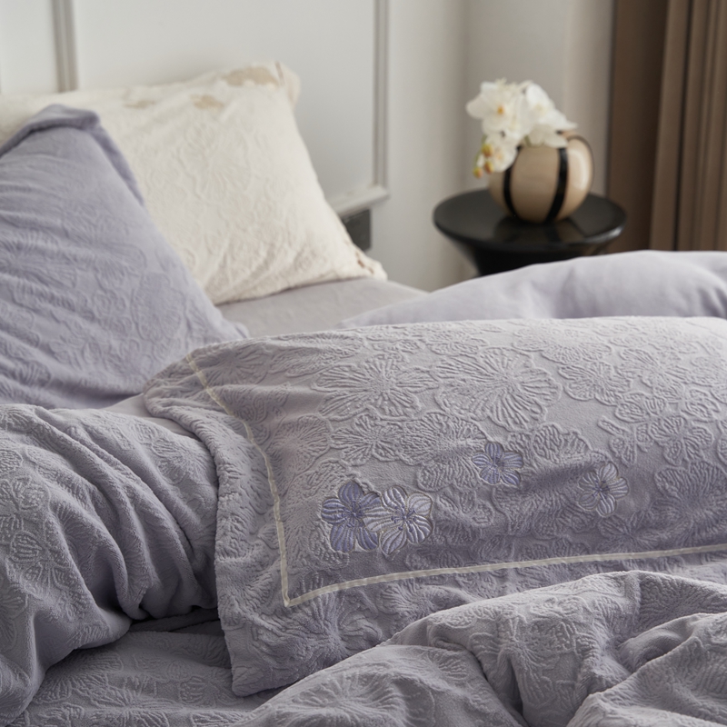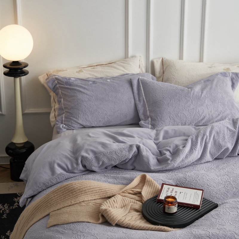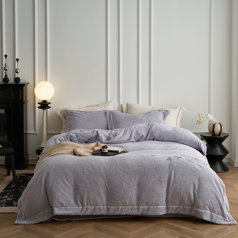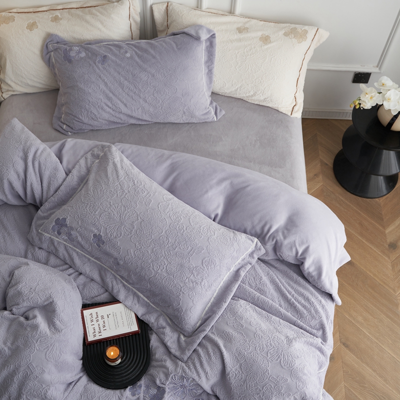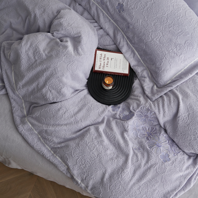 云胡 2023新款230克雕花牛奶绒绣花贴线宽边工艺款四件套馥郁紫