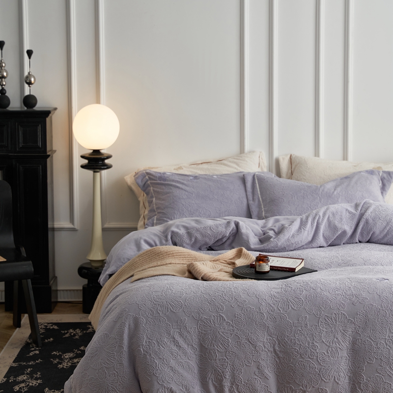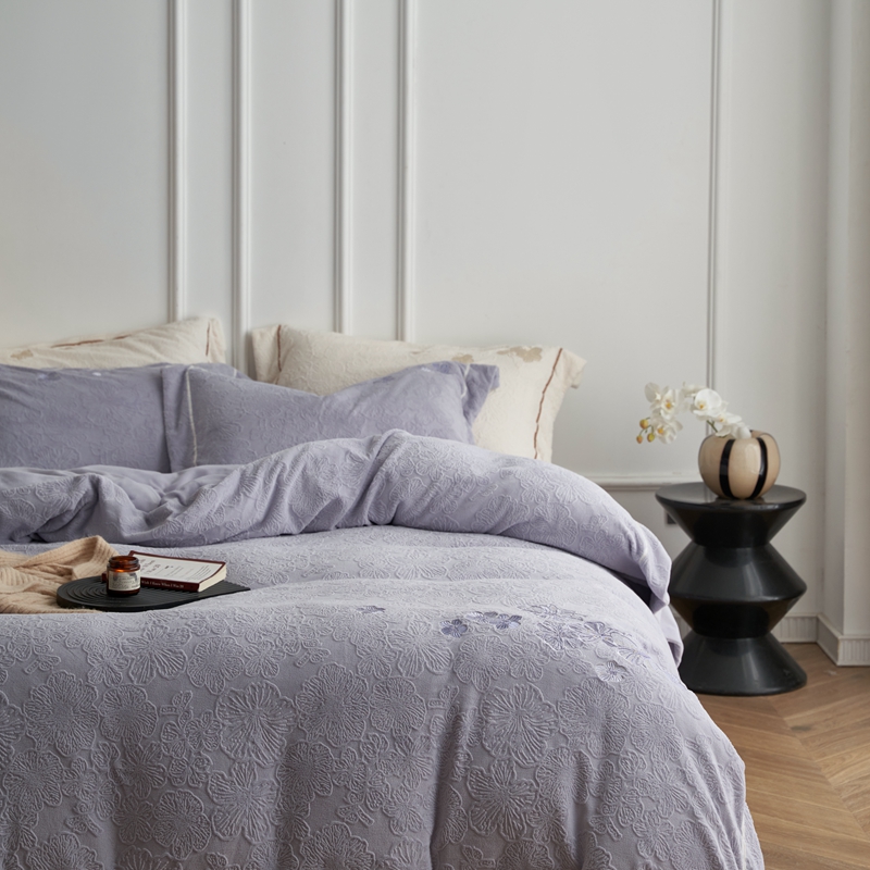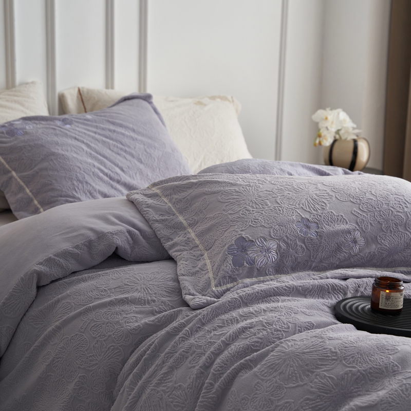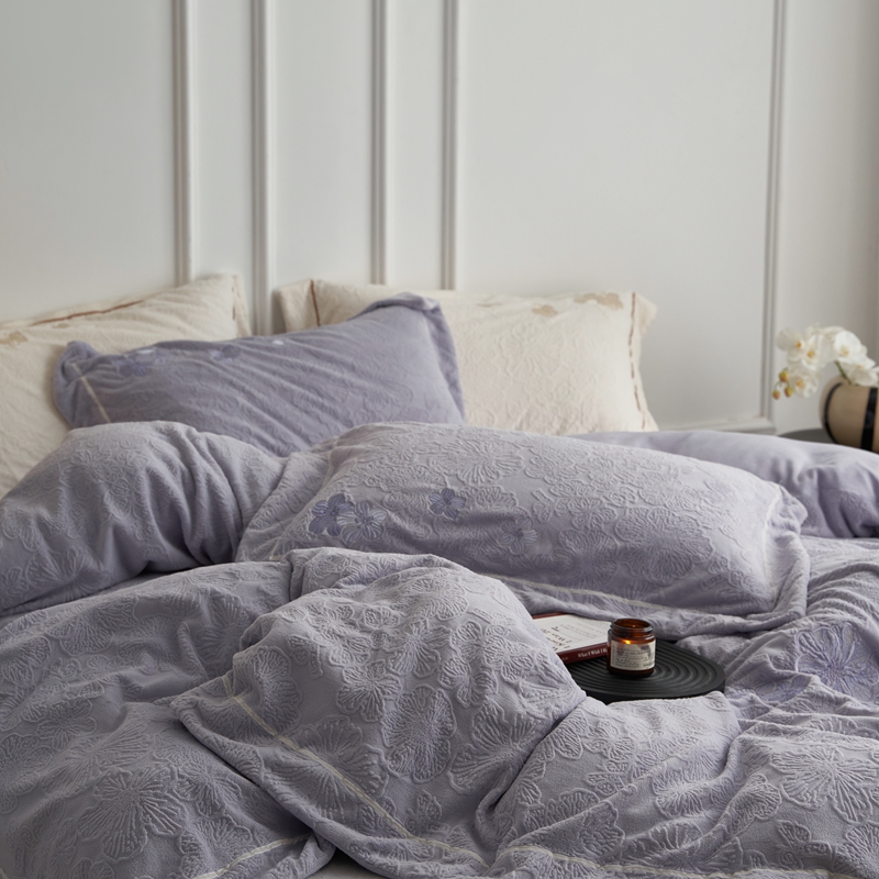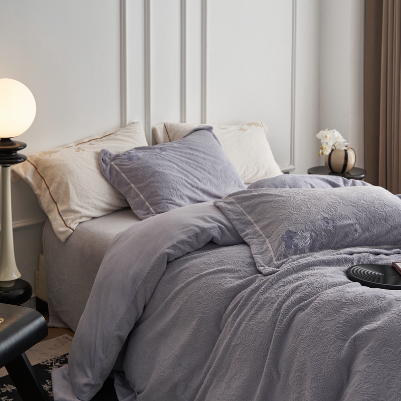 云胡 2023新款230克雕花牛奶绒绣花贴线宽边工艺款四件套馥郁紫