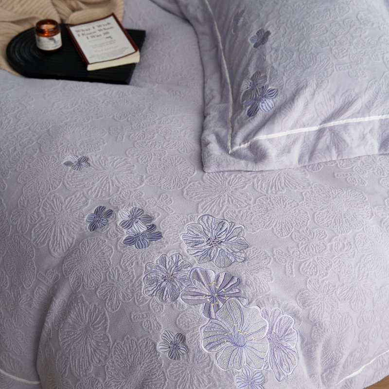 (总)云胡 2025新款A类水洗工艺纯棉四件套-若曦-棠梨紫,若曦-棠梨紫