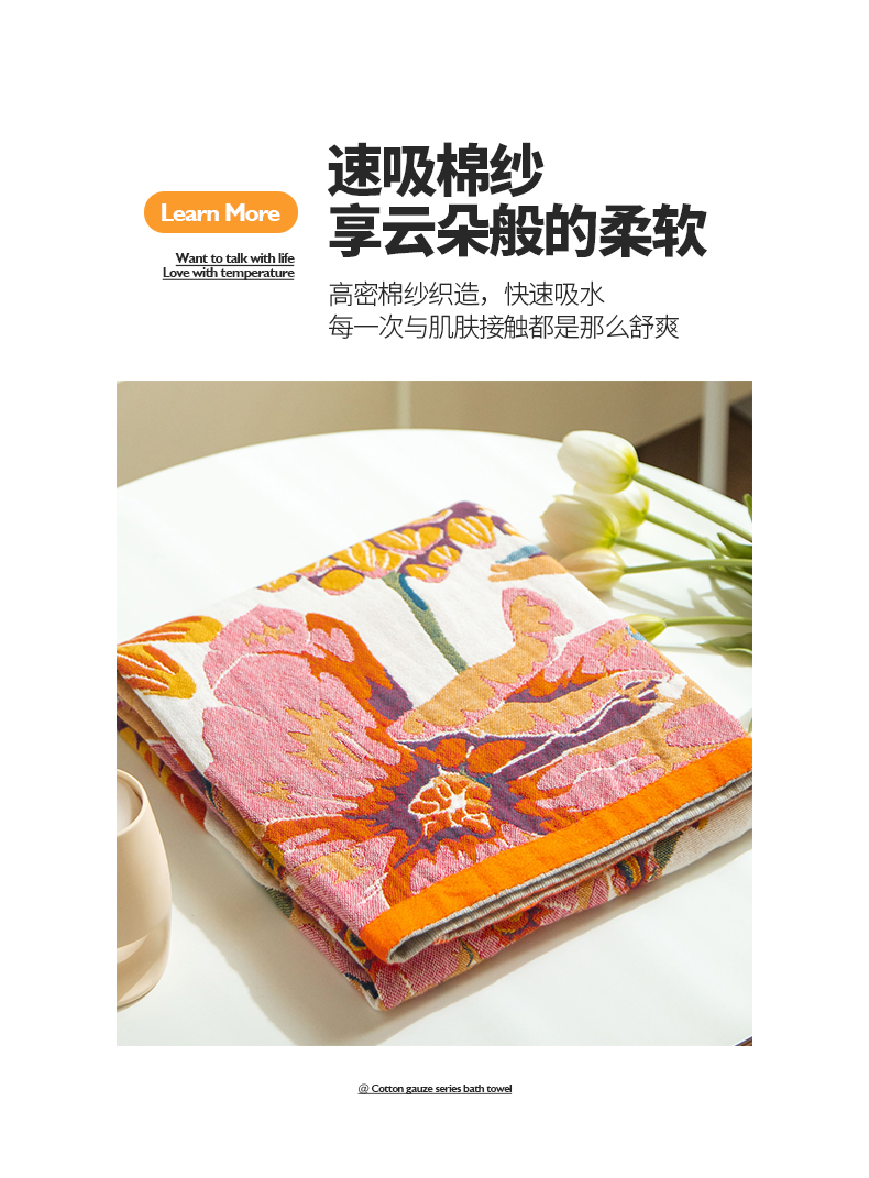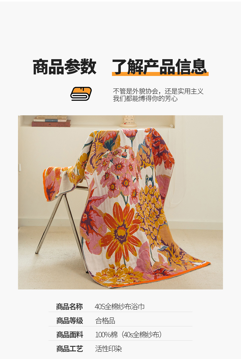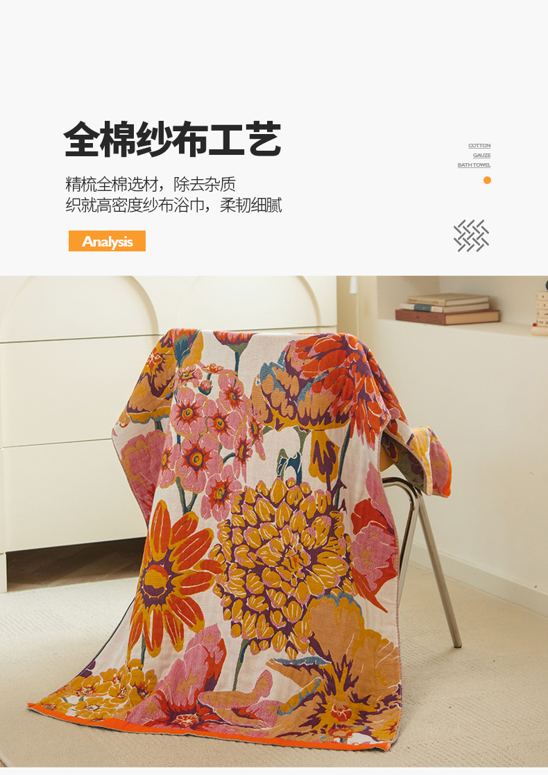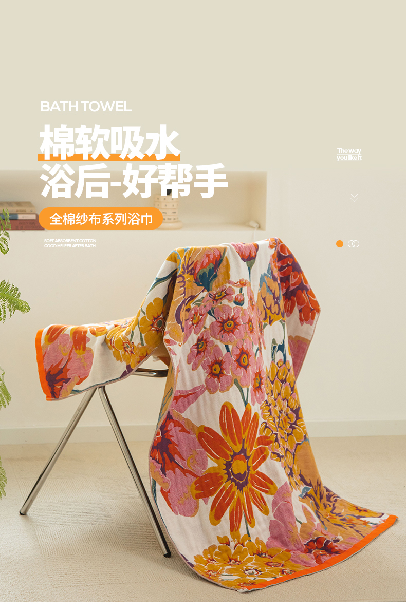 当前位置: 91家纺网 > 商品网购 > 居家日用 > 毛巾/浴巾/浴袍 > 浴巾 > 雯雨家纺 2023新款全棉卡通系列纱布浴巾 郁郁花丛